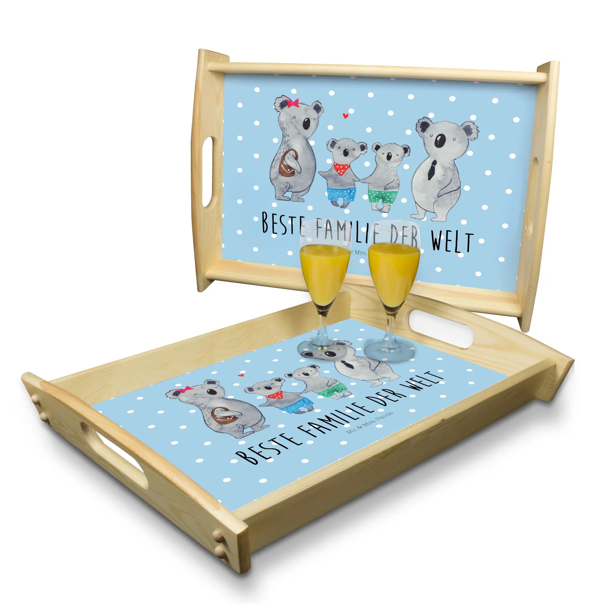 Serving tray Koala family with two kids - with saying - White