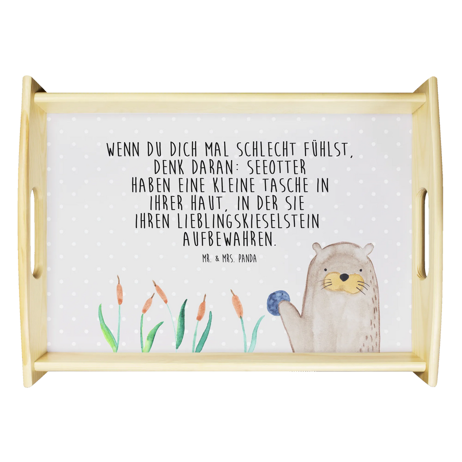 Ein ideales Geschenk: Suchst du ein Otter Geschenk, ein hübsches Holztablett oder ein Frühstückstablett als Präsent zum Einzug, Geburtstag oder einfach so? Dieses Tablett zaubert ein Lächeln und passt perfekt zu Otter Deko und Tierliebhabern. Es ist nicht personalisierbar, dafür aber einzigartig gestaltet von Mr. & Mrs. Panda.