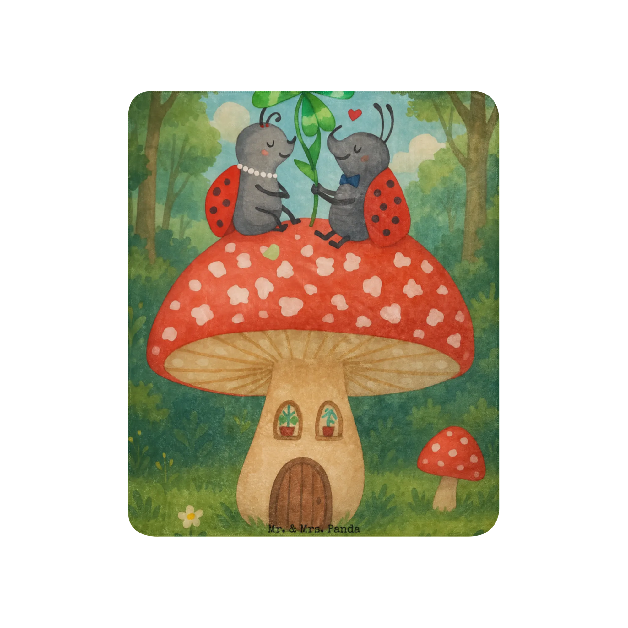 Sherpa cuddly blanket ladybug toadstool Design - 100 x 150 cm - with saying