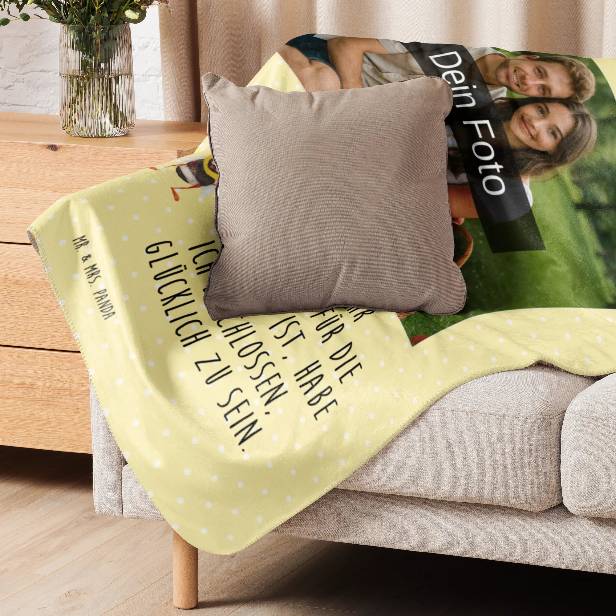 Erfreue dich an der exquisiten Sherpa Foto Kuscheldecke von Mr. & Mrs. Panda! Sie misst 1300 mm x 1550 mm und ist der Inbegriff von Komfort und Stil. Hergestellt aus 100 % ultrweichen Polyesterfasern, vereint sie 51,5 % glattes Obermaterial mit 48,5 % weichem Sherpa. Die Decke hat ein Gewicht von 220 g/m² für den glatten Stoff und 240 g/m² für das kuschelweiche Sherpa. Damit ist sie nicht nur eine tolle Wärmequelle, sondern auch ein dekoratives Element für deinen Raum. Die strahlenden Farben und das kreative Design mit Sprüche von Mr. & Mrs. Panda bringen Freude und Gemütlichkeit in dein Zuhause. Perfekt für den nächsten Filmabend oder einfach zum Entspannen am Abend. Bitte lege Wert darauf, die Decke vor der ersten Nutzung zu waschen!