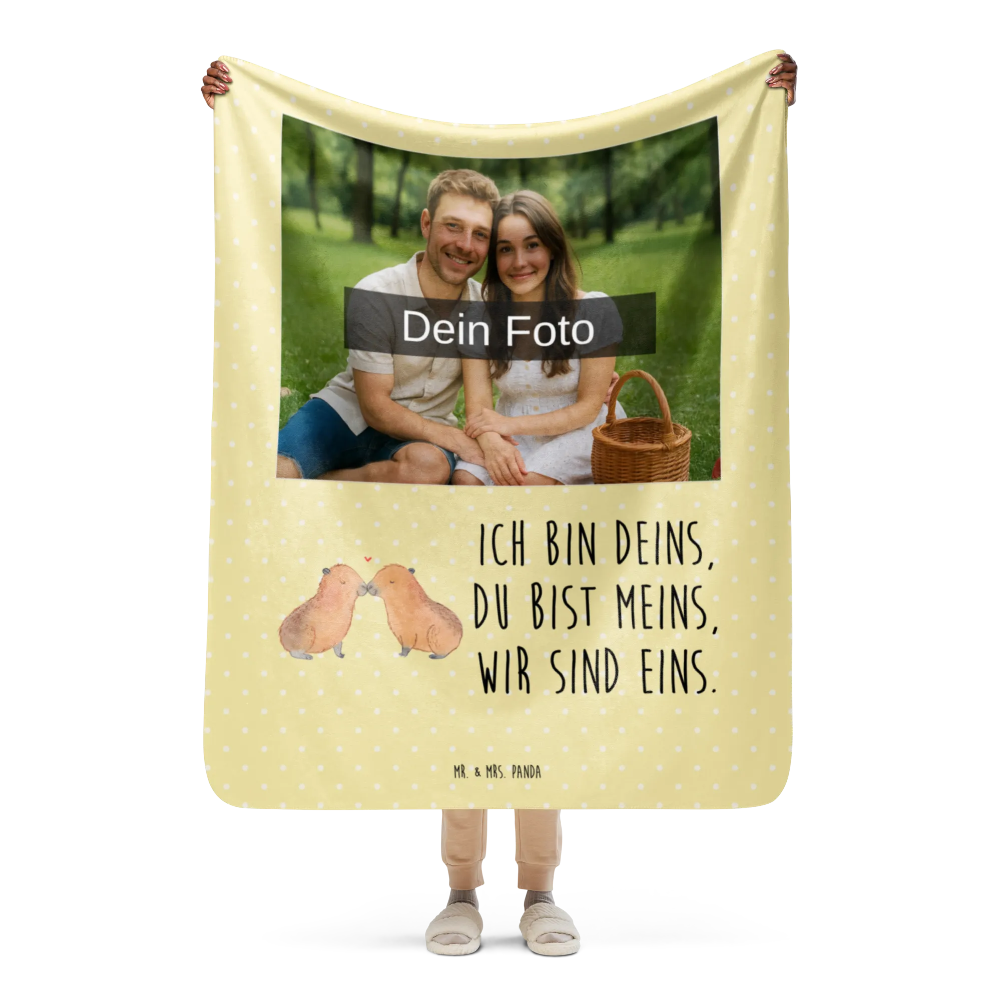 Sherpa Photo Cuddle Blanket Capybara love - 130 x 155 cm