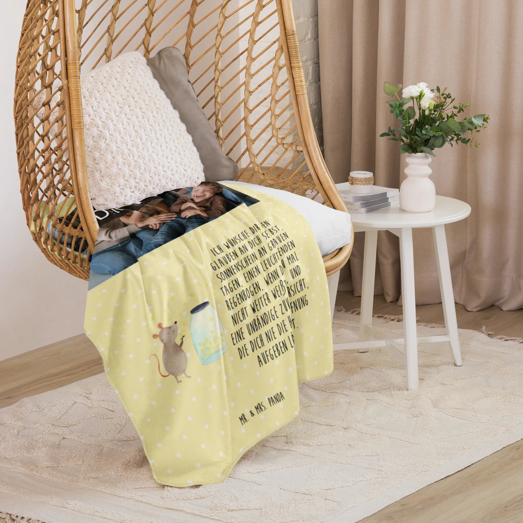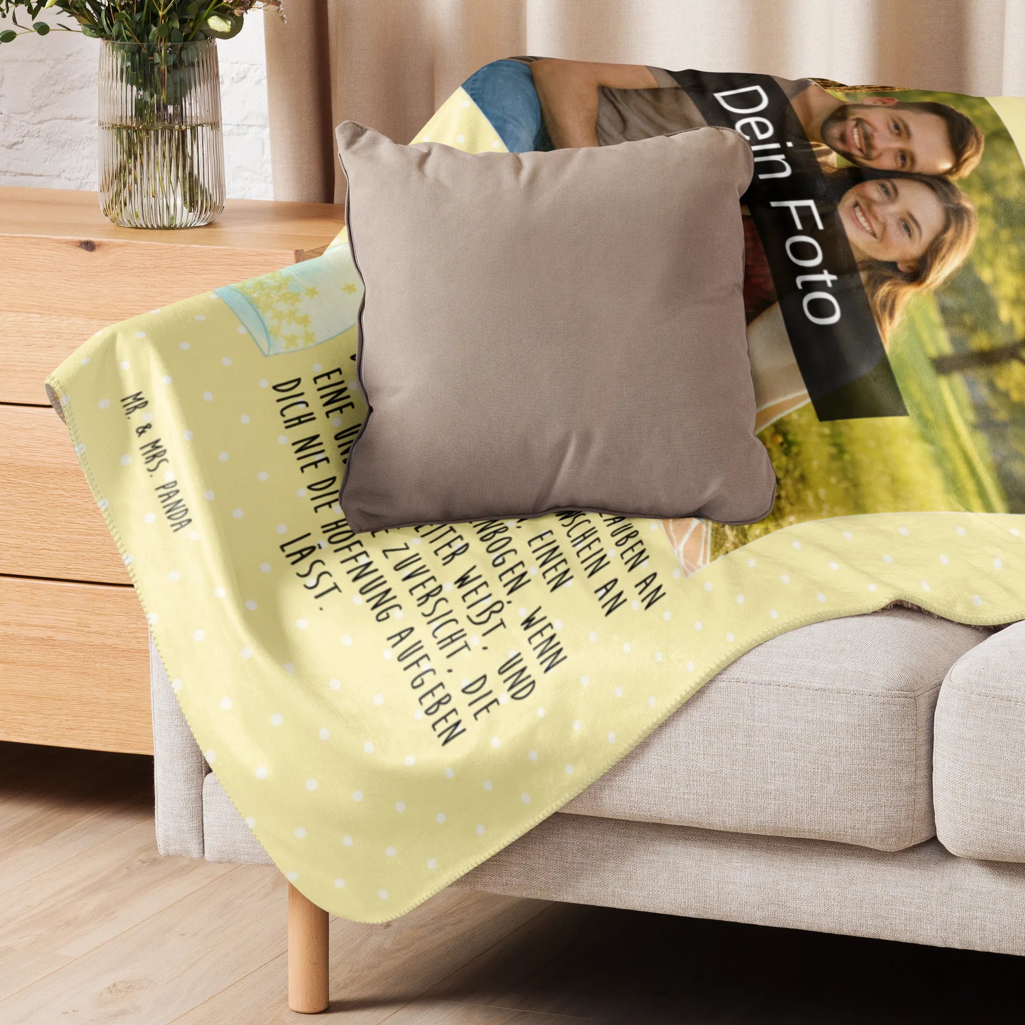 Kuschelige Momente erleben mit der Sherpa Foto Kuscheldecke von Mr. & Mrs. Panda! Mit einer Größe von 1500 mm x 1000 mm ist sie perfekt ausgestattet für gemütliche Abende oder einfach zum Dekorieren. Die Decke besteht aus 100% ultraweichen Polyesterfasern und bietet eine angenehme Haptik durch den glatten Seitenstoff und den kuscheligen Sherpa. Sie überzeugt durch leuchtende Farben, die in jedem Raum strahlen. Zusätzlich kannst du dein Wunschfoto auf der Decke drucken lassen und so ein ganz persönliches Geschenk kreieren – ideal für jeden Anlass! Bei der ersten Nutzung solltest du die Decke waschen, um die Qualität zu gewährleisten. Pflegehinweise: benutze milde Reinigungsmittel! Diese Kuscheldecke verwandelt jedes Zuhause in eine Wohlfühloase. Lass dich von Mr. & Mrs. Panda inspirieren!