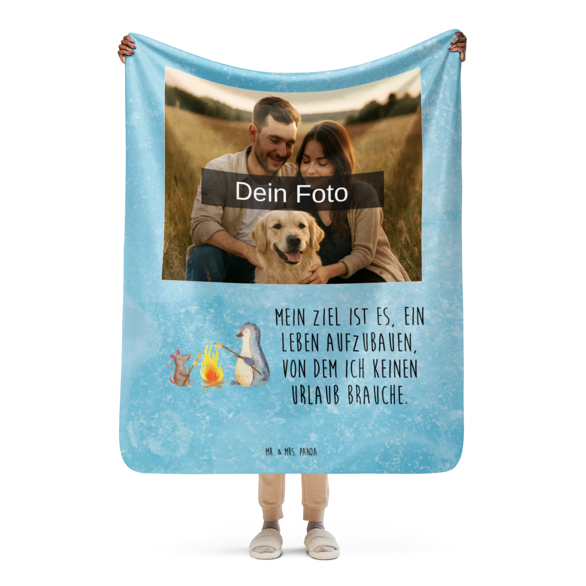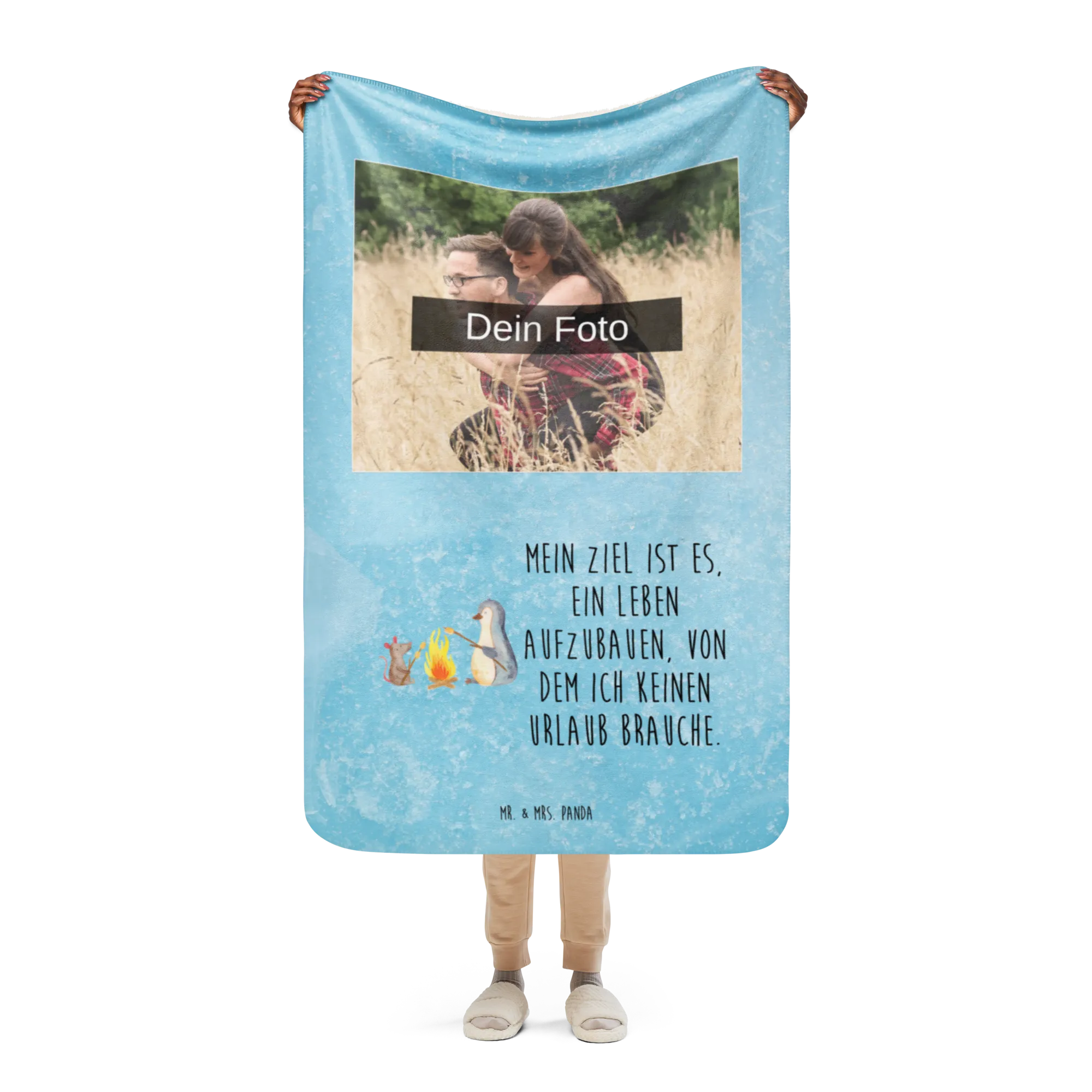 Sherpa Photo Cuddle Blanket Penguin campfire - 130 x 155 cm