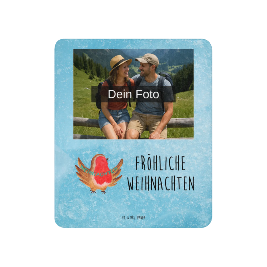 Sherpa Photo Cuddle Blanket robin Christmas - 130 x 155 cm