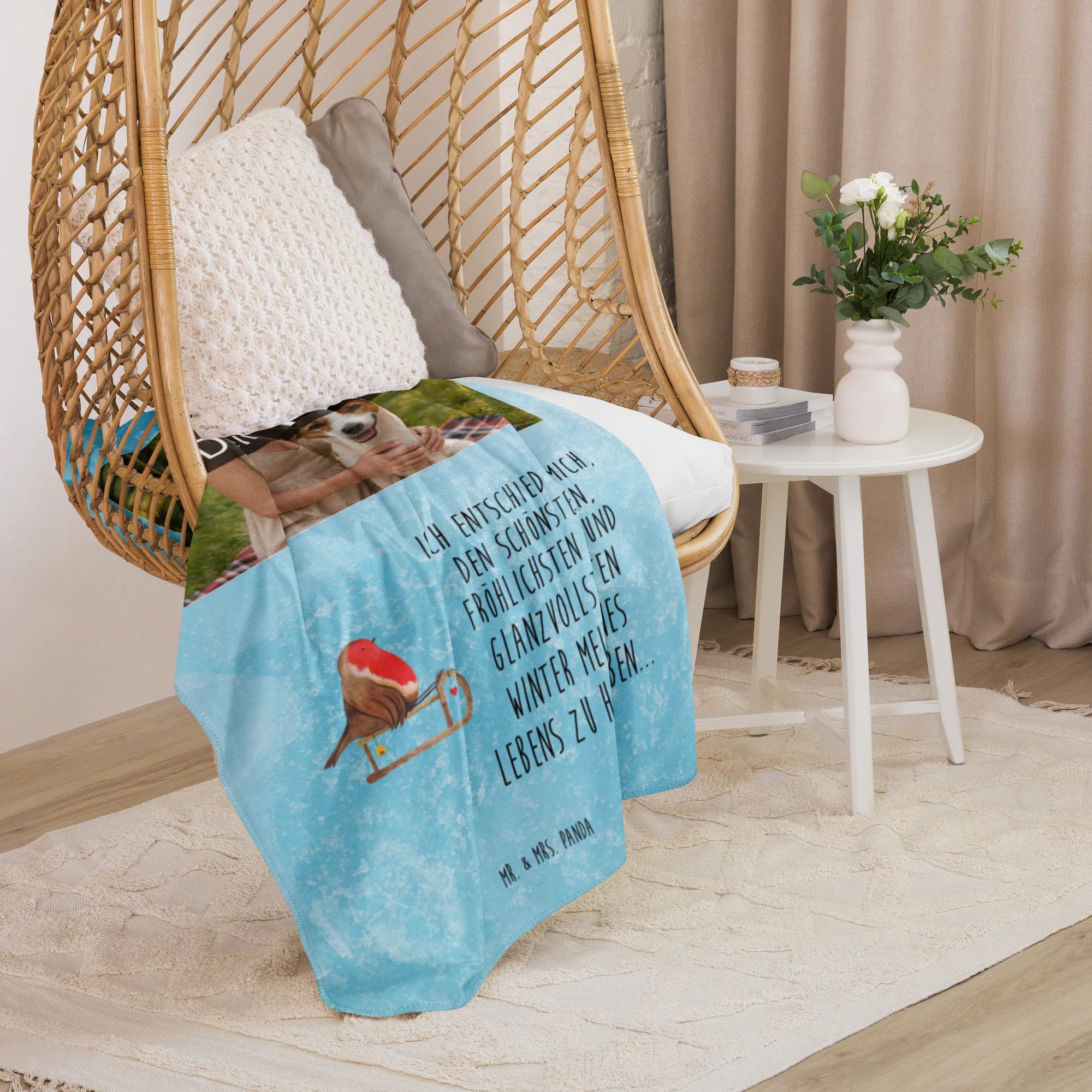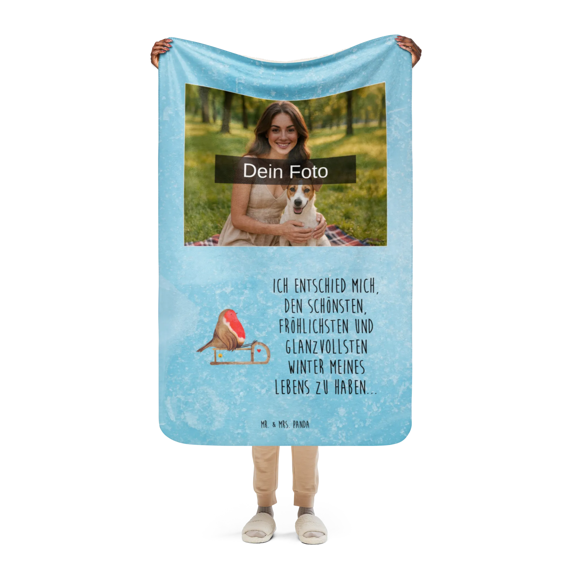 Sherpa Photo Cuddle Blanket robin Sleds - 130 x 155 cm