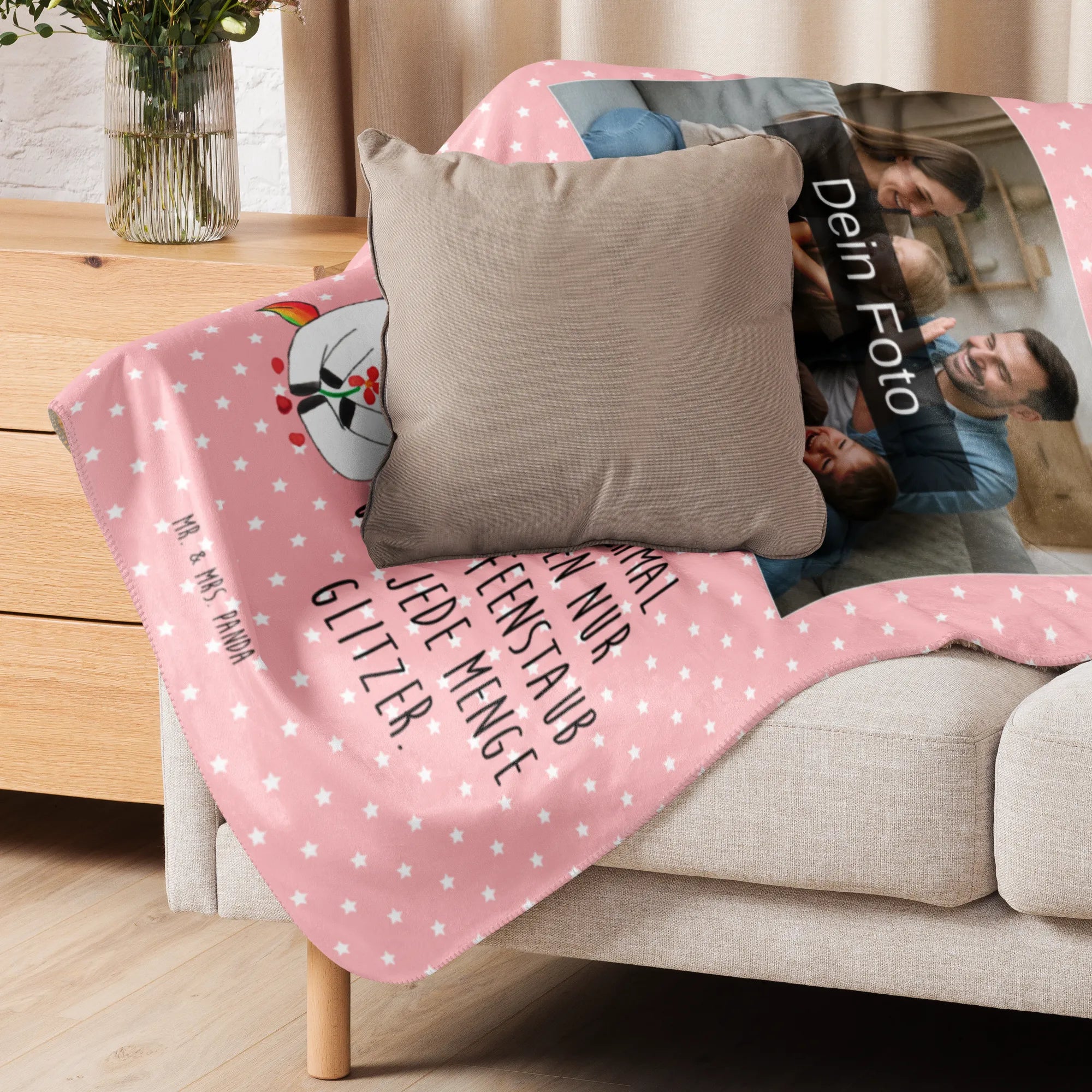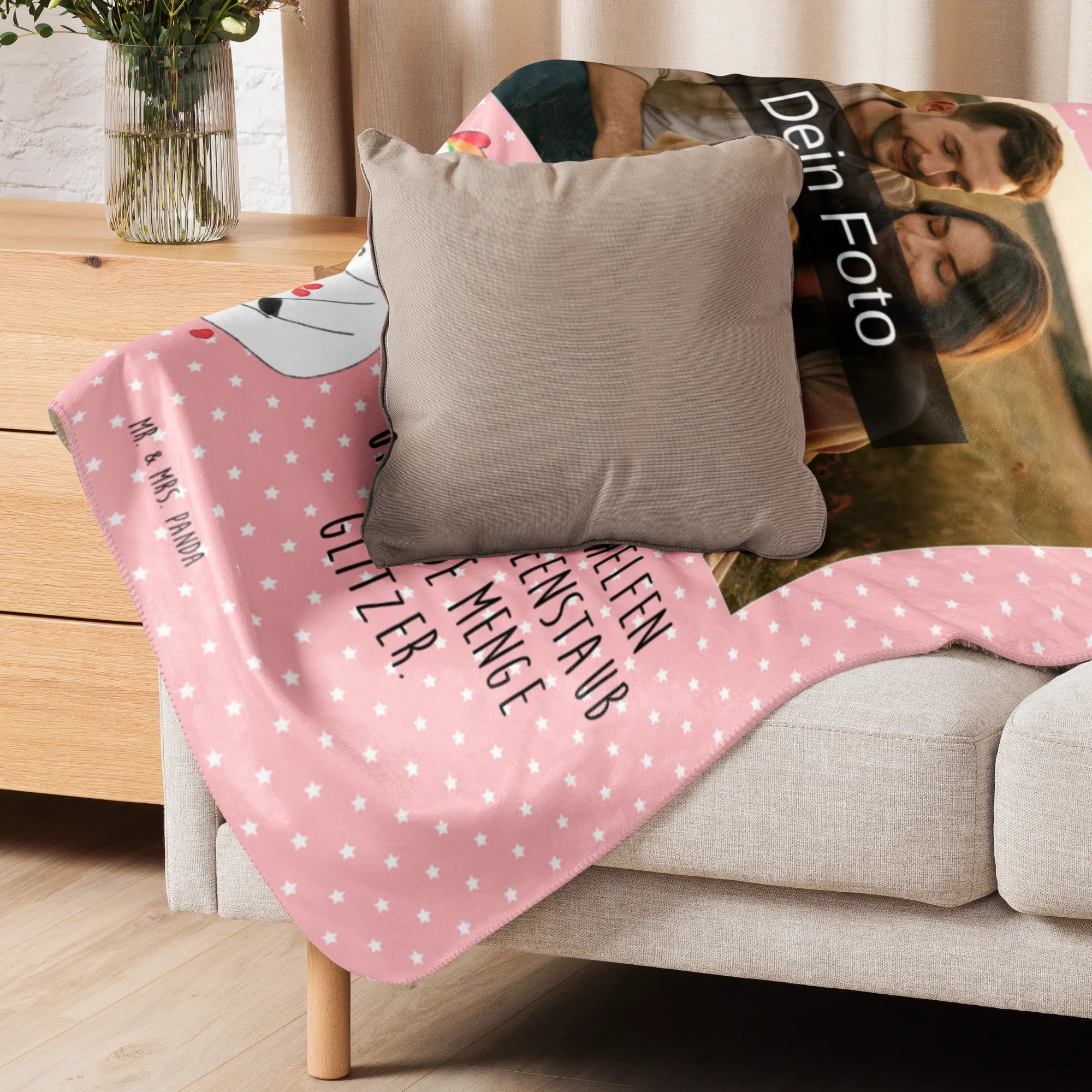 Kuschelige Momente erleben mit der Sherpa Foto Kuscheldecke von Mr. & Mrs. Panda! Mit einer Größe von 1500 mm x 1000 mm ist sie perfekt ausgestattet für gemütliche Abende oder einfach zum Dekorieren. Die Decke besteht aus 100% ultraweichen Polyesterfasern und bietet eine angenehme Haptik durch den glatten Seitenstoff und den kuscheligen Sherpa. Sie überzeugt durch leuchtende Farben, die in jedem Raum strahlen. Zusätzlich kannst du dein Wunschfoto auf der Decke drucken lassen und so ein ganz persönliches Geschenk kreieren – ideal für jeden Anlass! Bei der ersten Nutzung solltest du die Decke waschen, um die Qualität zu gewährleisten. Pflegehinweise: benutze milde Reinigungsmittel! Diese Kuscheldecke verwandelt jedes Zuhause in eine Wohlfühloase. Lass dich von Mr. & Mrs. Panda inspirieren!