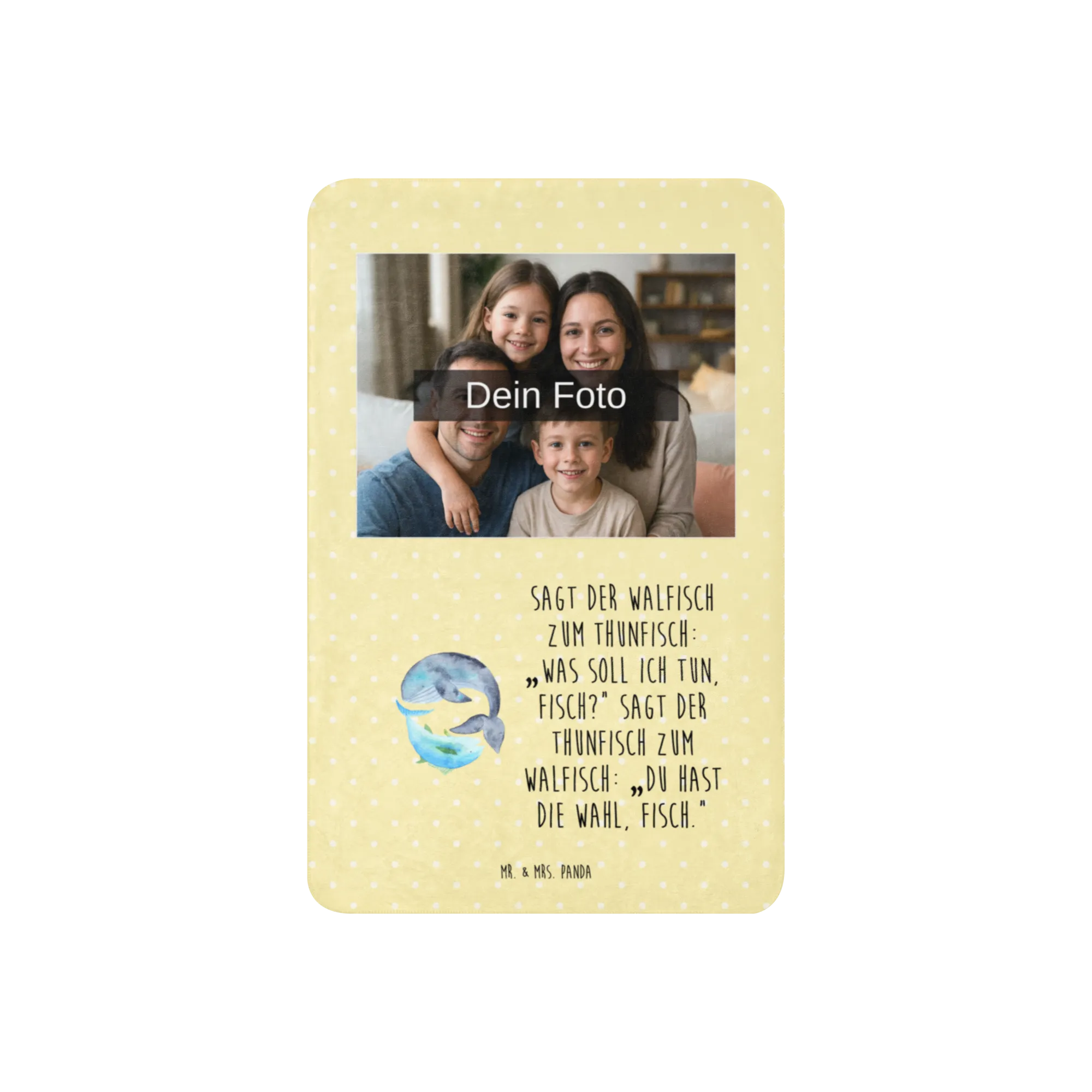 Stell dir vor, tief im blauen Ozean, weit weg von der Hektik des Alltags, gleiten ein Walfisch und ein Thunfisch Seite an Seite durch die Weiten des Wassers. Es ist ein Bild voller Harmonie und Freundschaft, das Mr. & Mrs. Panda mit viel Liebe zum Detail in ihrem neuesten Motiv festgehalten haben. Der Spruch „Sagt der Walfisch zum Thunfisch: 'Was soll ich tun, Fisch?' Sagt der Thunfisch zum Walfisch: 'Du hast die Wahl, Fisch.'“ ist nicht nur ein herrlicher Flachwitz, sondern auch ein Wortspiel, das zum Schmunzeln einlädt. Dieses Motiv greift die Leichtigkeit auf, mit der man manchmal Entscheidungen treffen darf – und erinnert uns daran, dass es immer eine Wahl gibt, auch wenn sie so simpel erscheint wie zwischen Walfisch und Thunfisch zu entscheiden. Ein wunderbares Geschenk für alle, die Humor und die Tiefe des Meeres lieben.