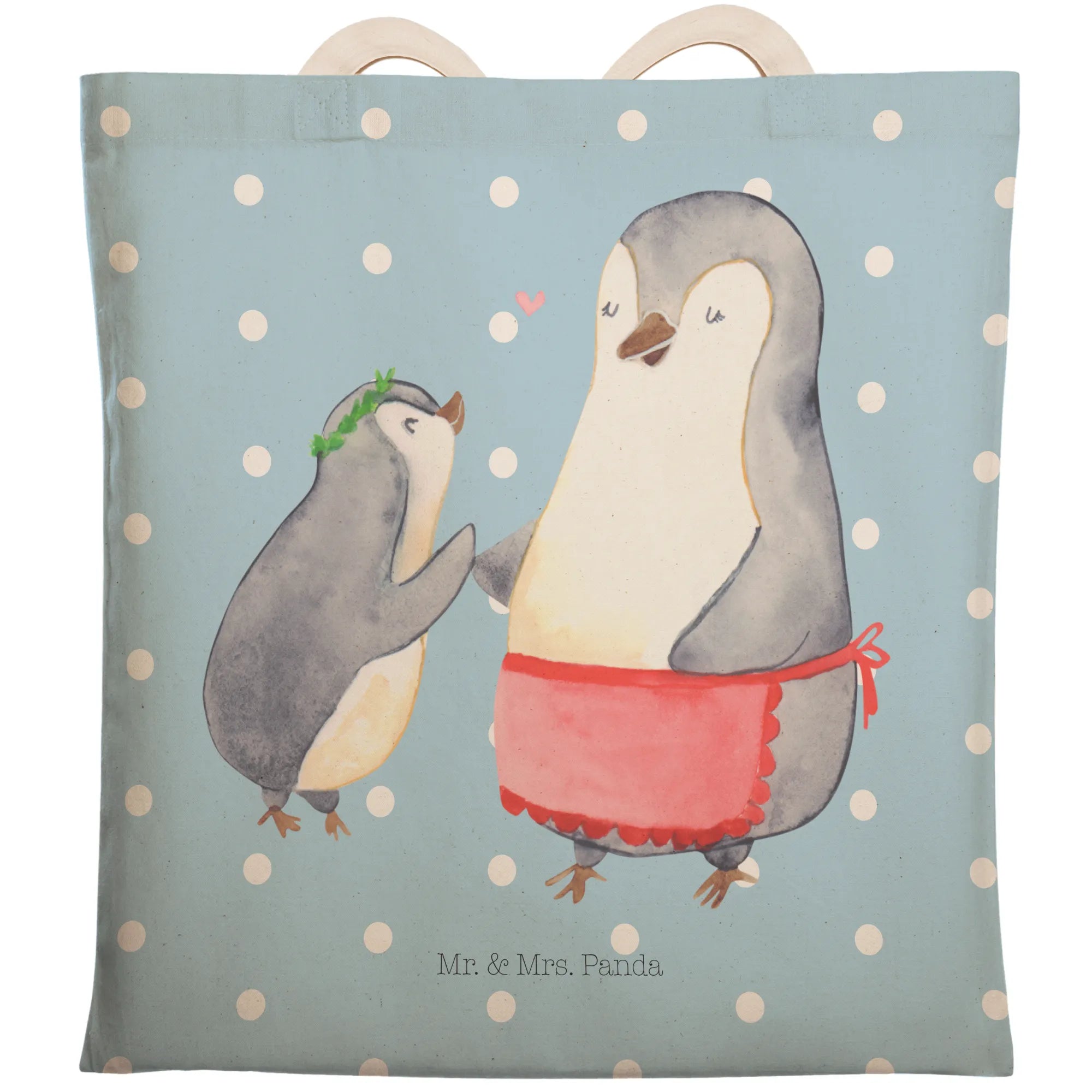 Shopping bag Penguin with child - with saying - Pastel Gray