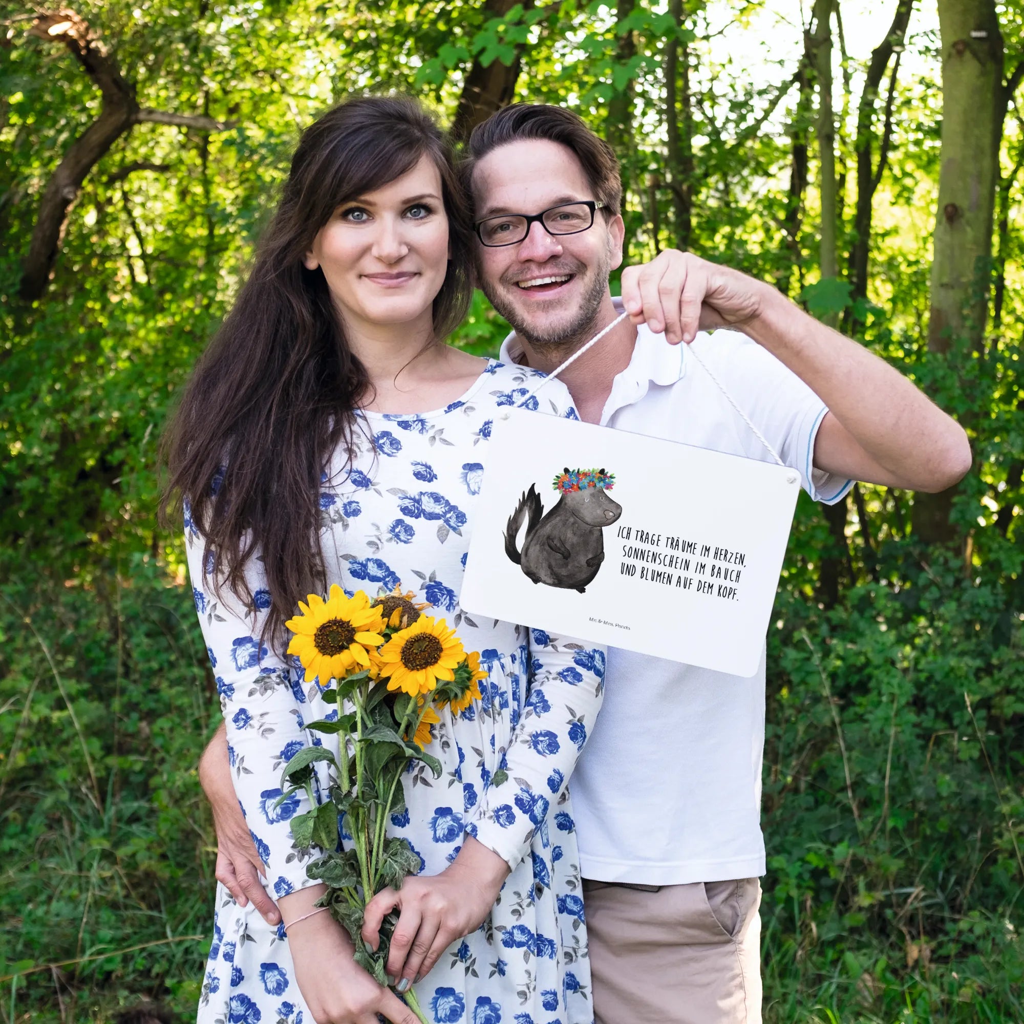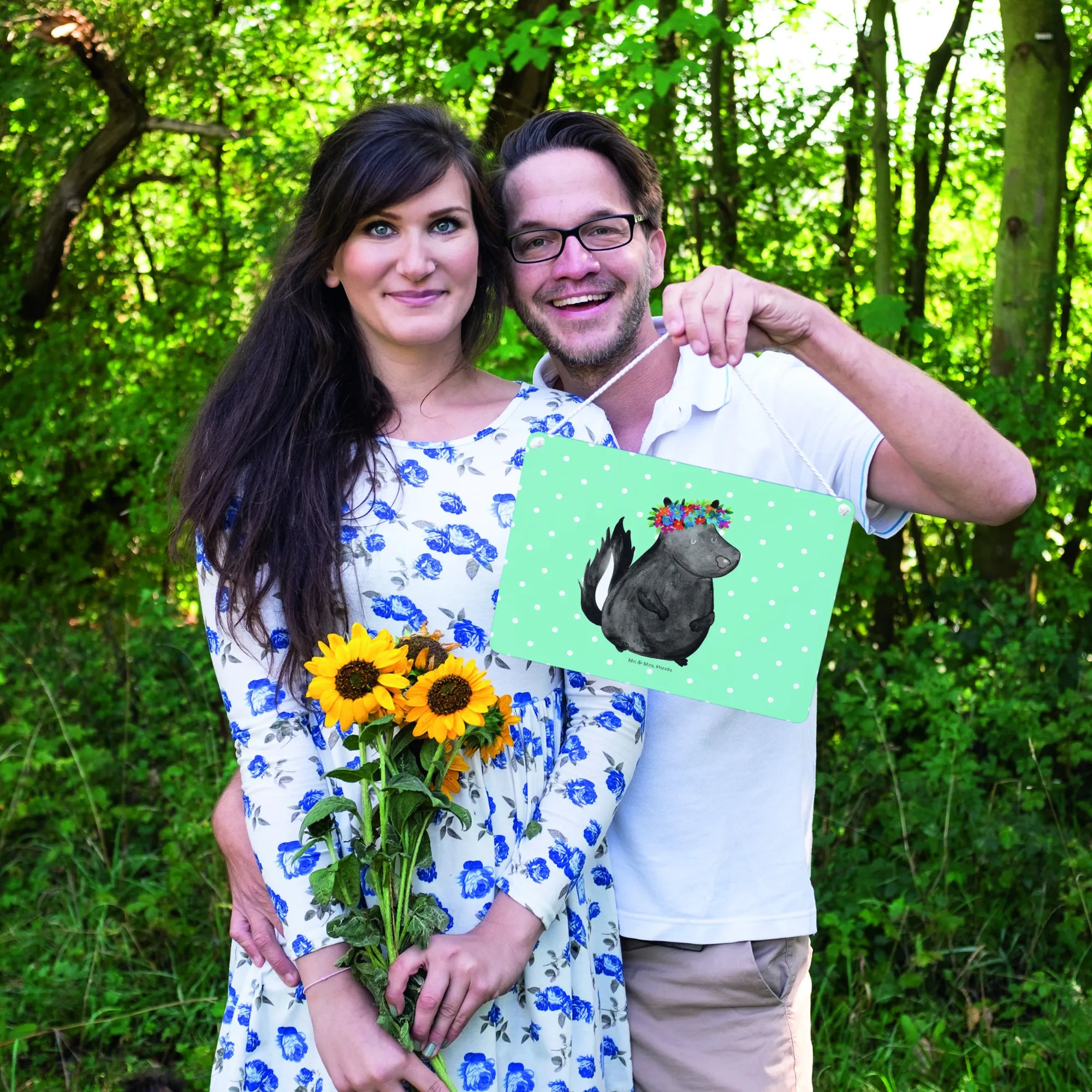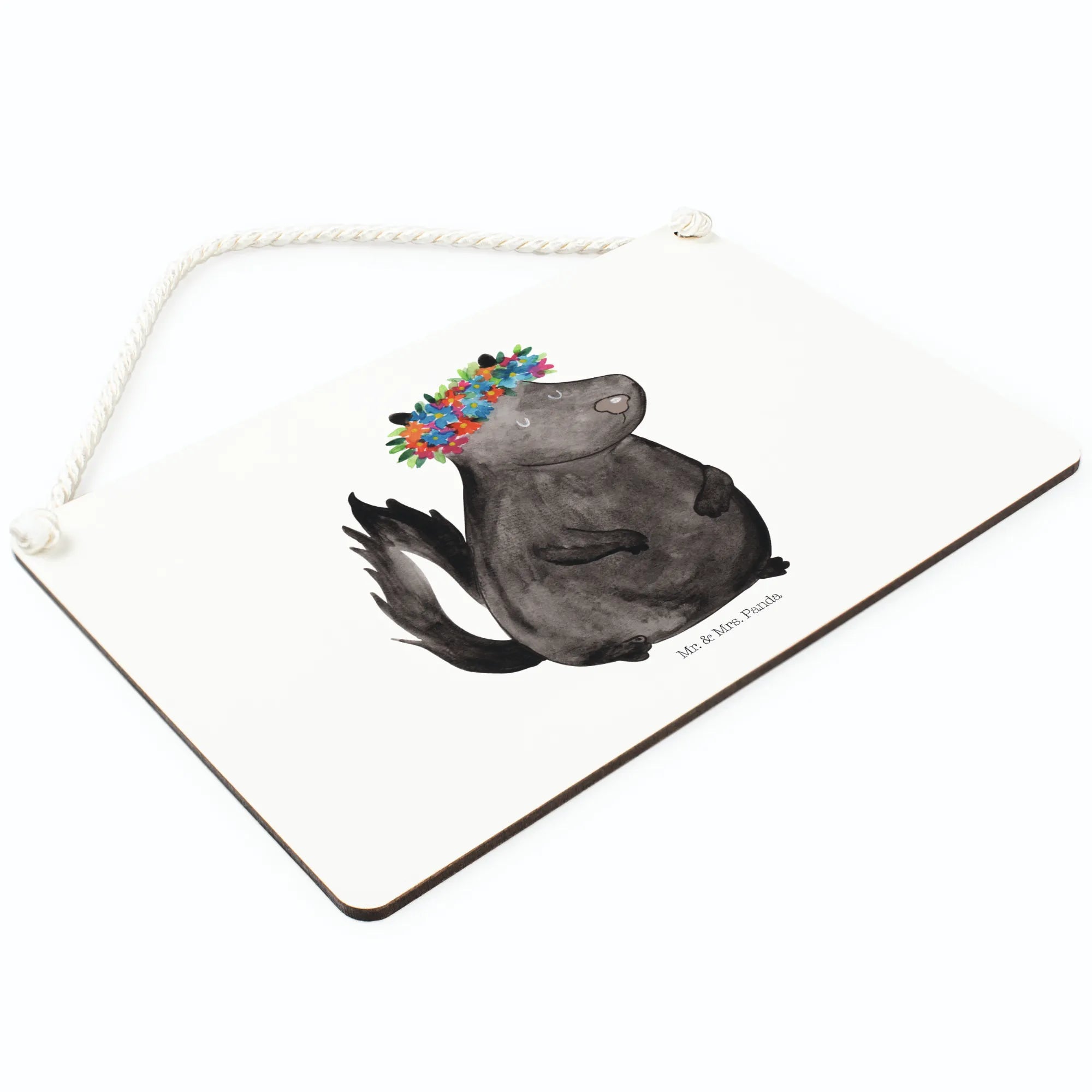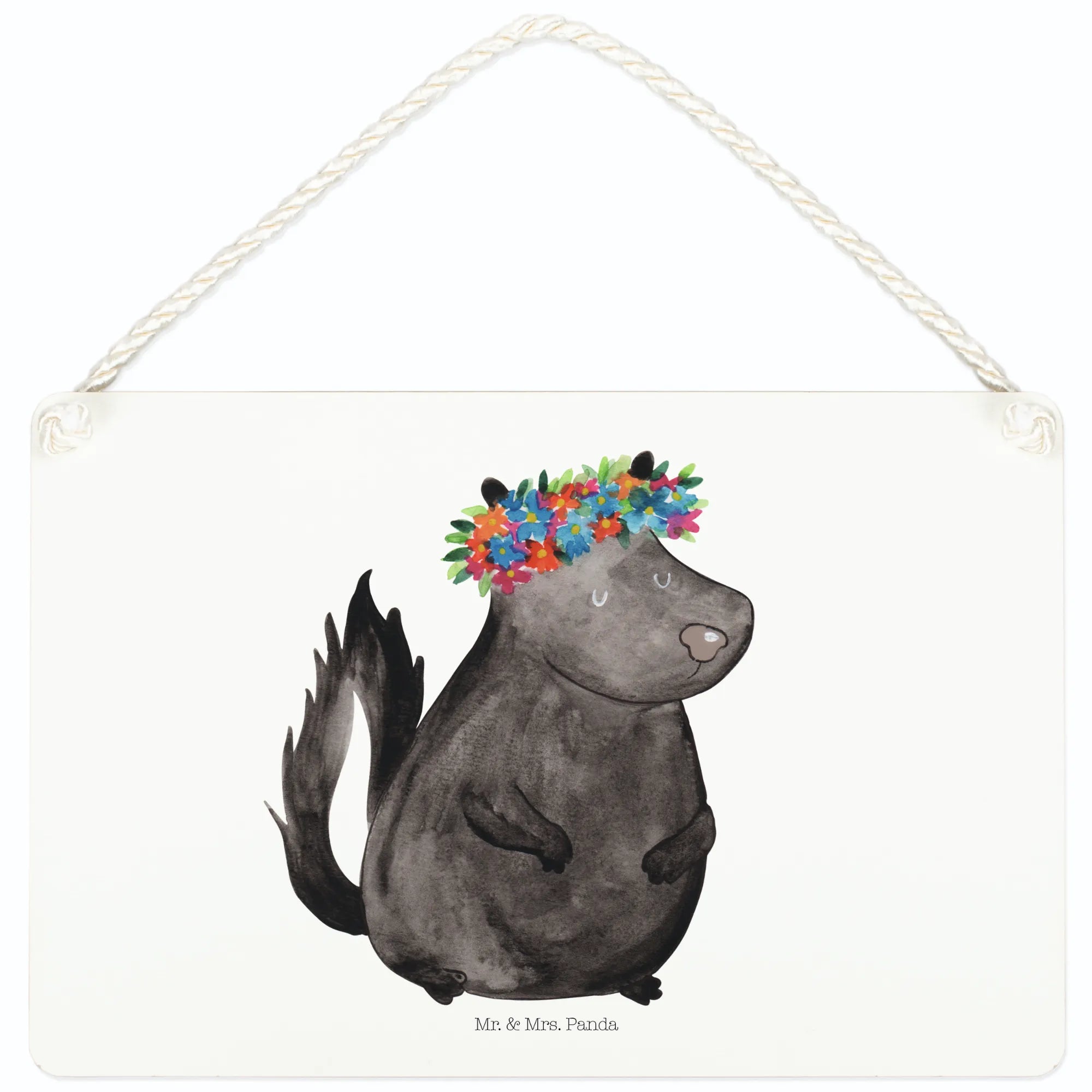 Suchst du nach einem ganz besonderen Geschenk, das Herzen erwärmt und Freude bringt? Dann ist das Deko Schild 'Stinktier Blumenmädchen' aus der Stinktier - Kollektion von Mr. & Mrs. Panda genau das Richtige für dich und deine Lieben!