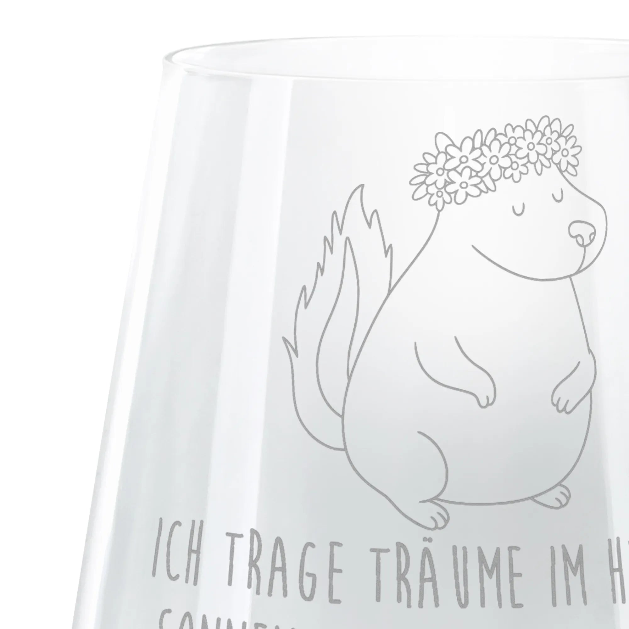 Dieses wunderschöne Stinktier Blumenmädchen ist nicht nur ein niedlicher Anblick, sondern symbolisiert auch die Fröhlichkeit und den Mut, Träume zu verwirklichen. Mit ihrem bunten Blumenkranz strahlt sie Lebensfreude aus und lädt uns ein, das Leben mit einem Lächeln zu genießen. Ihr Motto "Ich trage Träume im Herzen, Sonnenschein im Bauch und Blumen auf dem Kopf" erinnert uns daran, dass wir unsere Träume nie aus den Augen verlieren sollten. Lass dich von diesem charmanten Wildtier inspirieren, deinen eigenen Weg zu gehen und die Welt mit deiner positiven Energie zu bereichern. Perfekt für alle, die die Natur lieben und die Schönheiten des Lebens schätzen. Ob als Deko-Element oder als Geschenk für einen geliebten Menschen – dieses Motiv bringt den Frühling in jedes Zuhause.