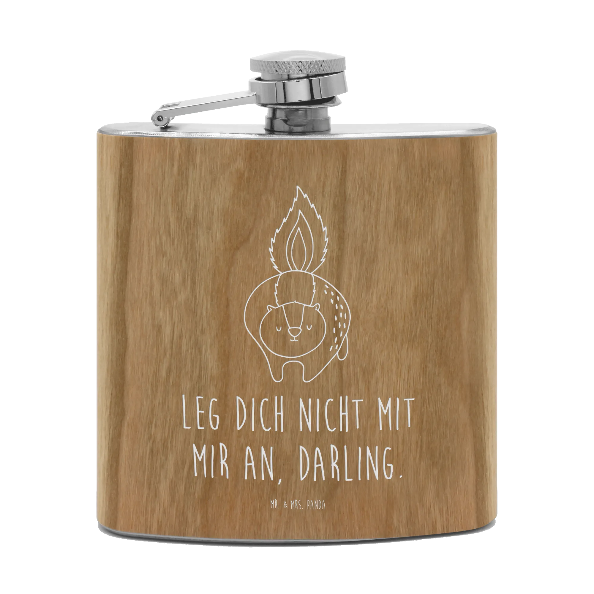 Meet the Mr. & Mrs. Panda Hipflask—your new favorite accessory for all occasions! Crafted from premium stainless steel and adorned with a chic wood laminate, this flask can hold 150 ml (5 oz) of your favorite beverage. At 109 mm (4 inch) tall, 93 mm (4 inch) wide, and 22 mm (1 inch) thick, it’s designed for convenience and ease of transport. Featuring delightful engravings of whimsical quotes and cute motifs, this flask will make a wonderful gift for friends. It's the perfect companion for a bachelor or bachelorette party, or for outdoor adventures like hiking! Light and practical, the hipflask fits nicely in your hand and is fitted with a secure screw cap. Remember, it’s not dishwasher safe, so just swish it out with hot water for a quick clean! Elevate your drink game with the stylish Mr. & Mrs. Panda Hipflask!