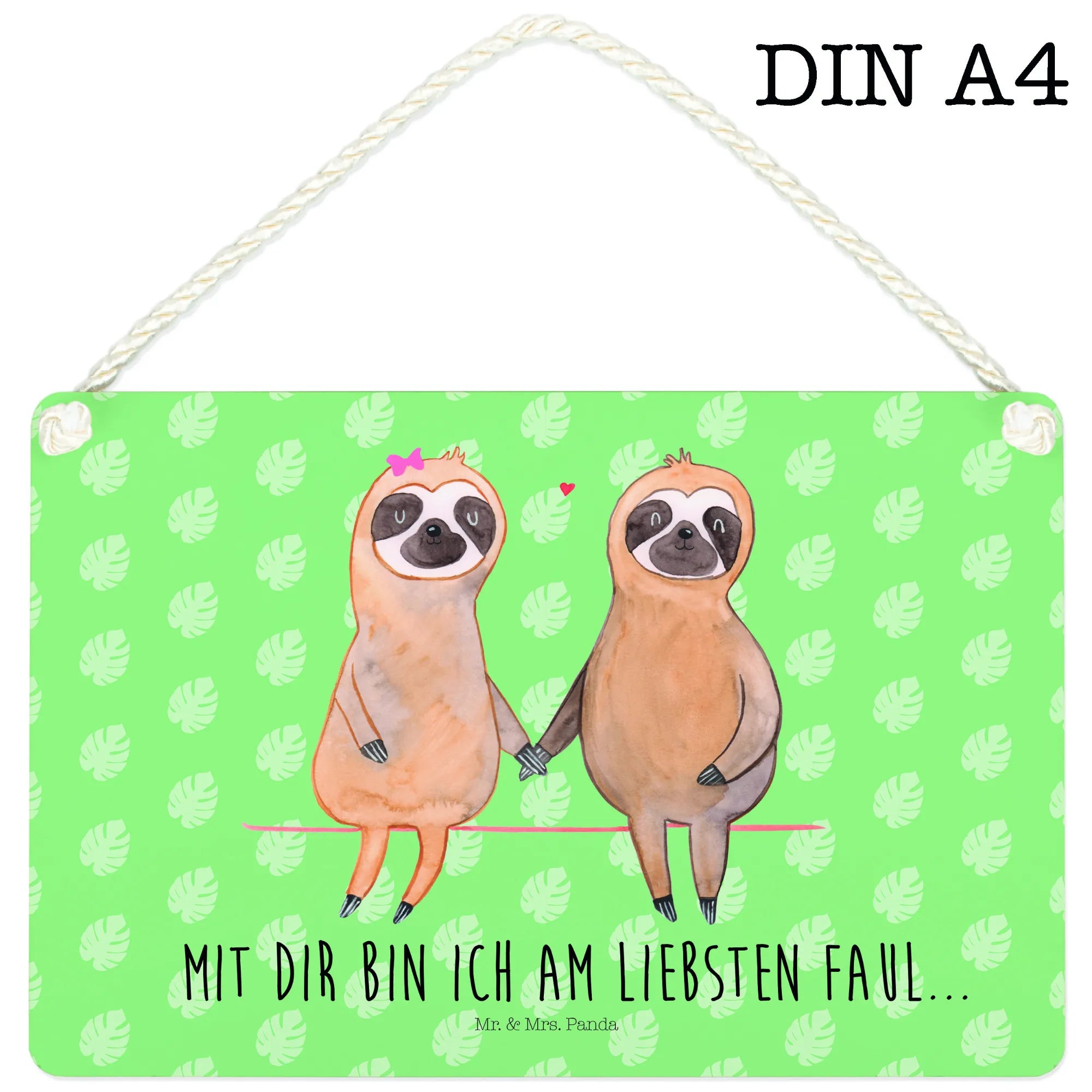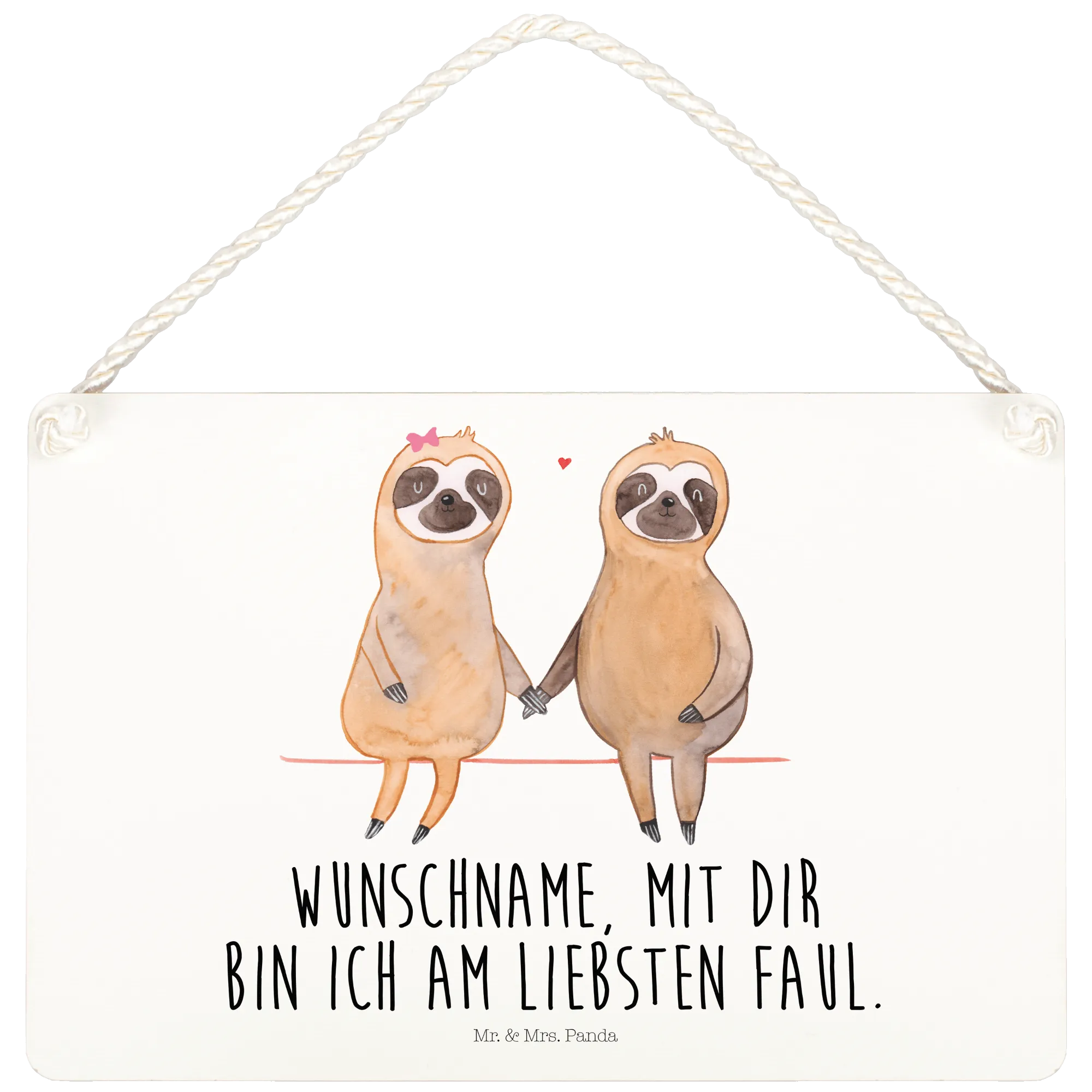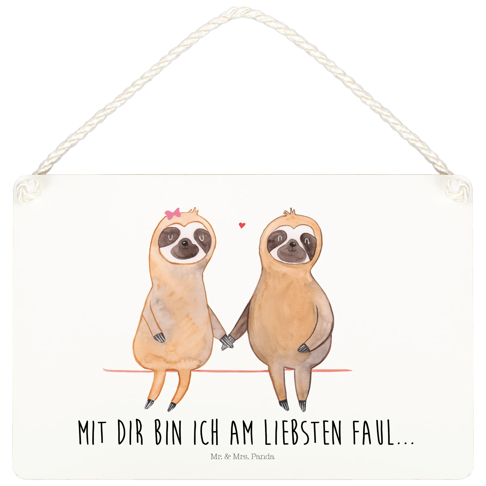 Looking for a unique and charming gift that perfectly embodies love and relaxation? Introducing the delightful Decorative Sign featuring a Sloth Couple from Mr. & Mrs. Panda’s Sloth Collection! This decorative sign is not only a piece of art but a celebration of lazy days, love, and serene moments shared together. With a unique watercolor illustration of two adorable sloths holding hands, this sign beautifully captures the essence of being lazy and enjoying life’s little moments with your favorite person.