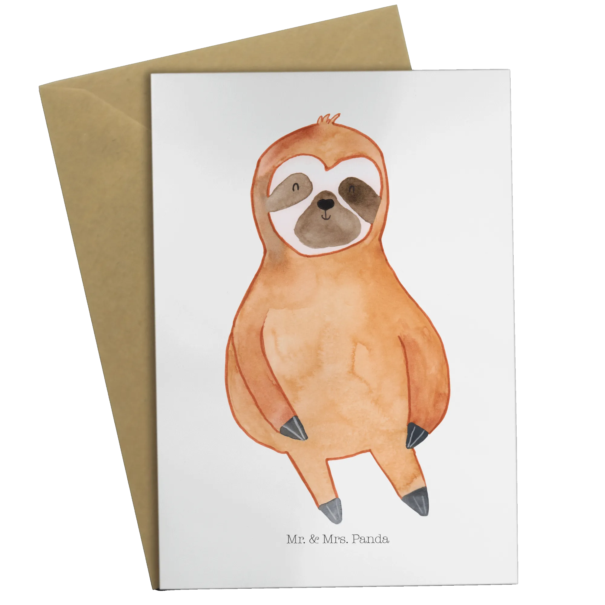 Introducing the charming Sloth Satisfied greeting card from the delightful Mr. & Mrs. Panda collection! If you or someone special in your life appreciates the lovable, lazy sloth as their favorite animal, then this card is simply a must-have!