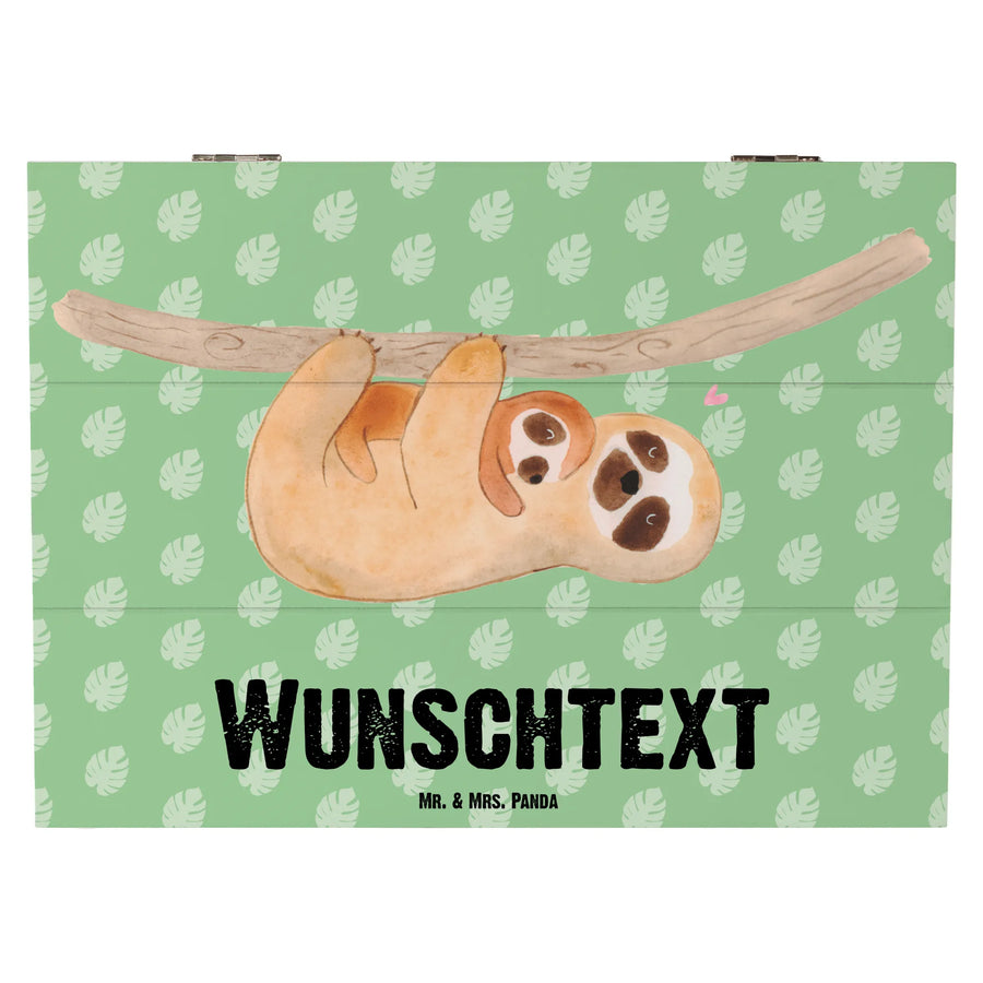 Personalised wooden chest sloth child - 25 x 18 cm - Tropengrün