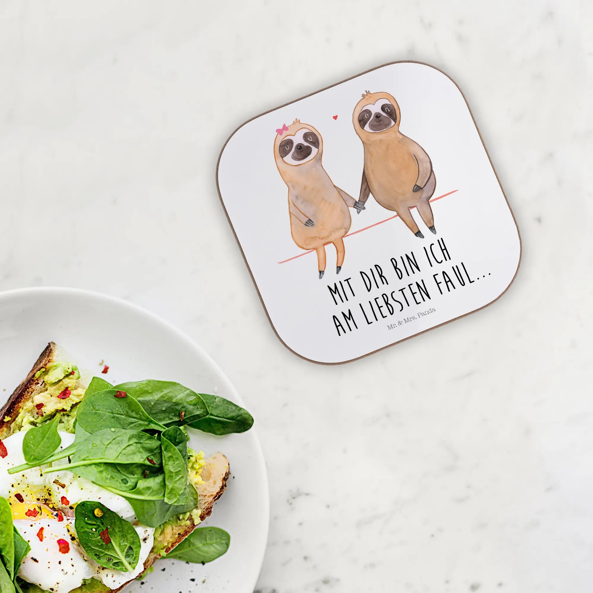 Introducing the Mr. & Mrs. Panda Square Coaster featuring an adorable Sloth couple, perfect for all sloth lovers out there! You know that warm, fuzzy feeling you get when you see your favorite animal? Now, you can bring that joy into your home every day. These coasters are not just practical; they also add a unique charm to your dining and coffee tables. Measuring 4 inches by 4 inches (100mm x 100mm), our coasters are made from high-quality hardboard, which means they’re sturdy and reliable. No need to worry about those pesky cup rings – they’ll protect your surfaces from scratches, moisture, and extreme temperatures.