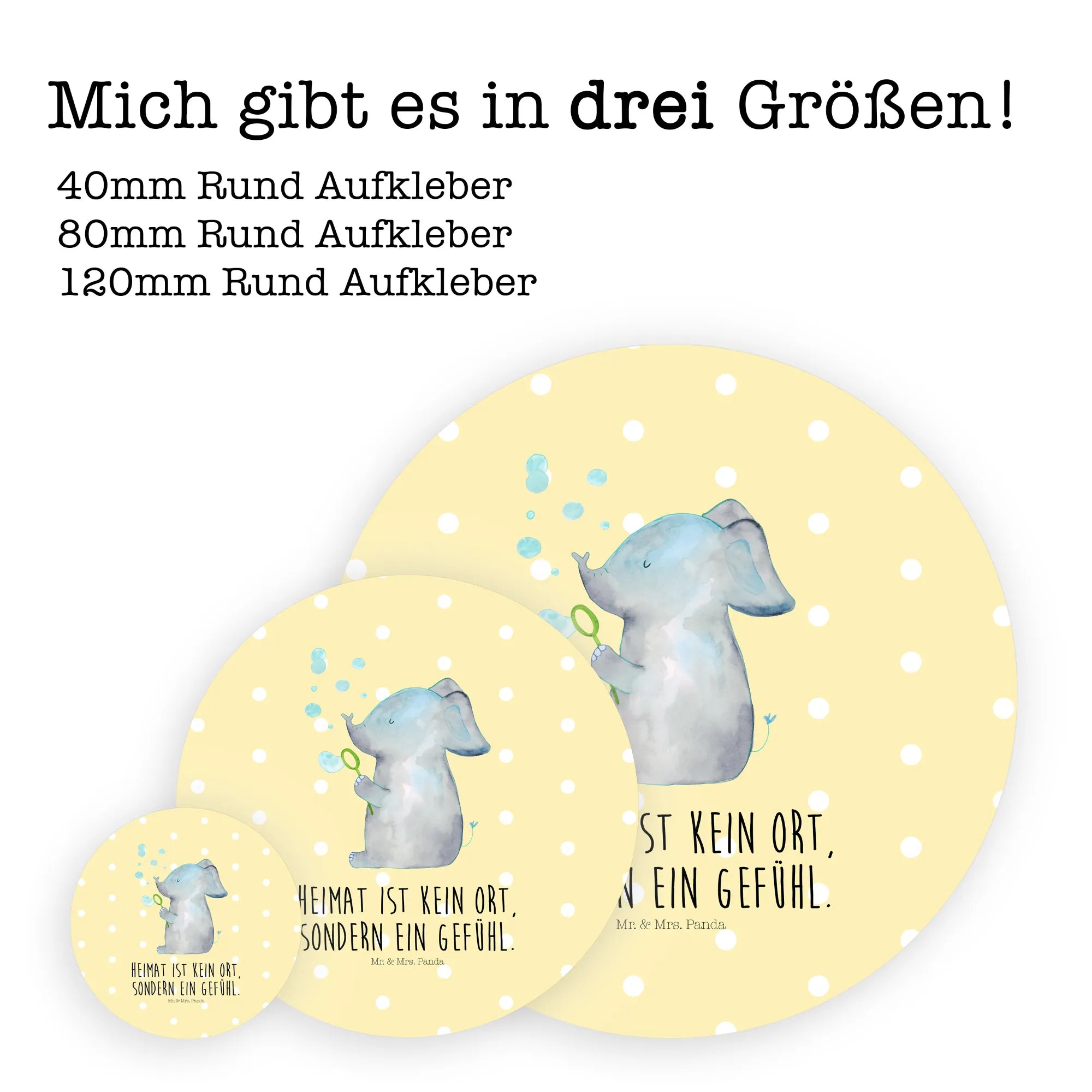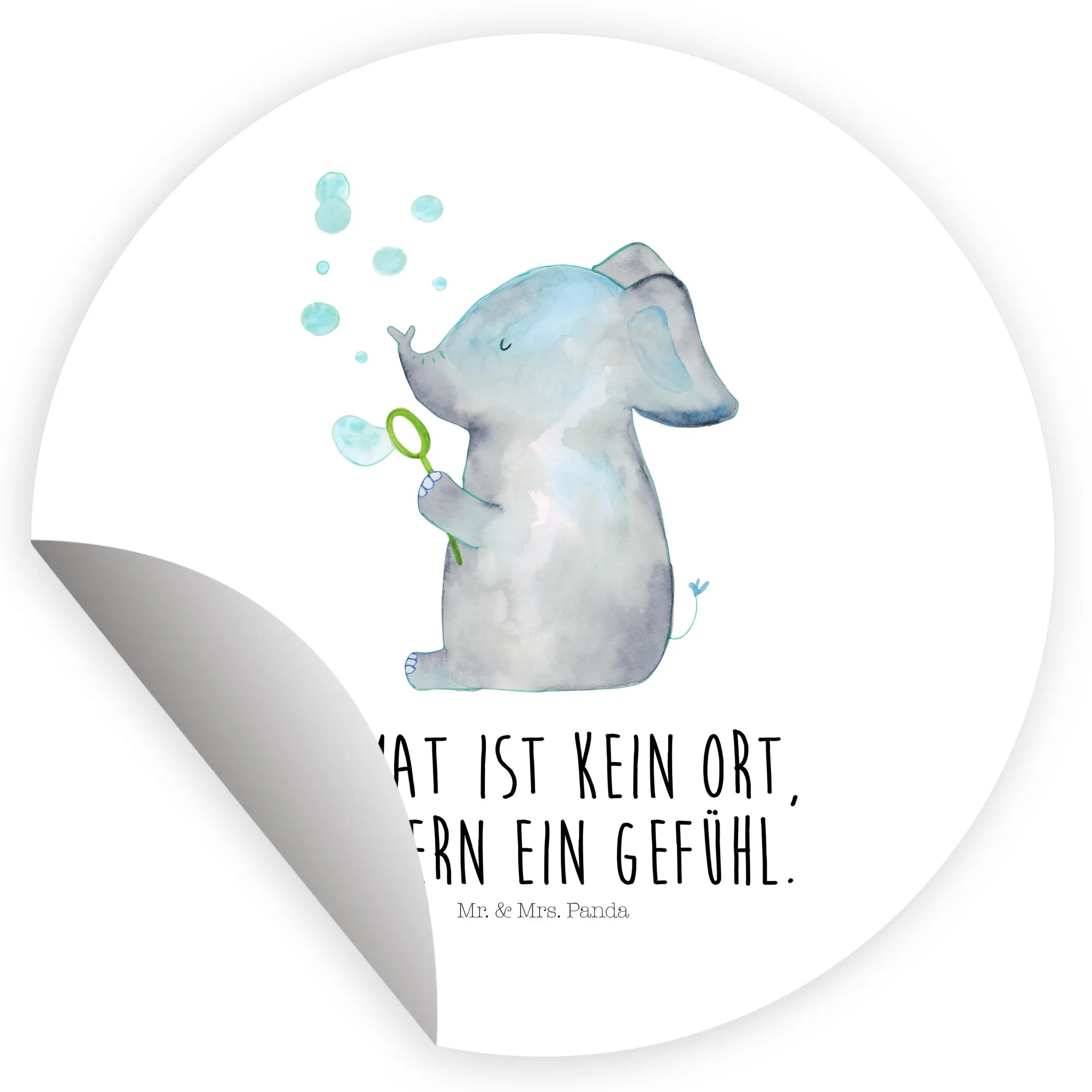 Round sticker elephant soap bubbles - 80mm Rund Aufkleber - with saying - White