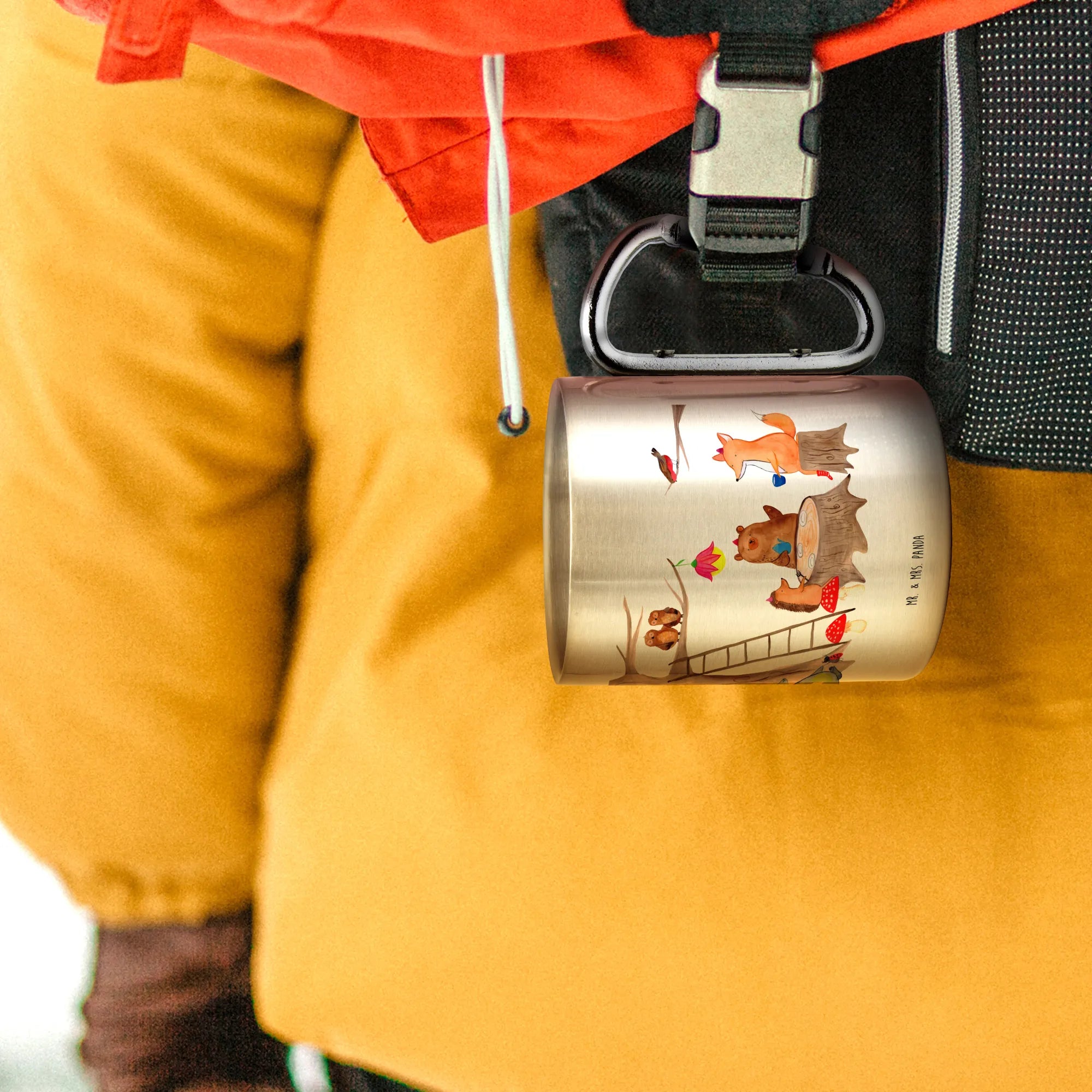 Enjoy life with the Mr. & Mrs. Panda Stainless Steel Mug, crafted for adventurers and daily coffee lovers alike! This beautiful stainless steel mug stands 90 mm tall and has an 80 mm diameter, boasting a capacity of 330 ml (11 oz). It's lightweight at only 145 g (5 oz) – ideal for outdoor activities like camping and hiking. Its unique design, featuring quotes and illustrations from Mr. & Mrs. Panda, brings a smile to your face, no matter where you are. This mug features superior insulation, ensuring your drinks stay hot or cold for longer. With a convenient carabiner hook, you can latch it to your bag or belt for effortless transport. Please remember that it’s not dishwasher safe, so hand wash only for maintenance. Also, avoid placing the mug underwater to keep its quality intact. Make every drink memorable with Mr. & Mrs. Panda!