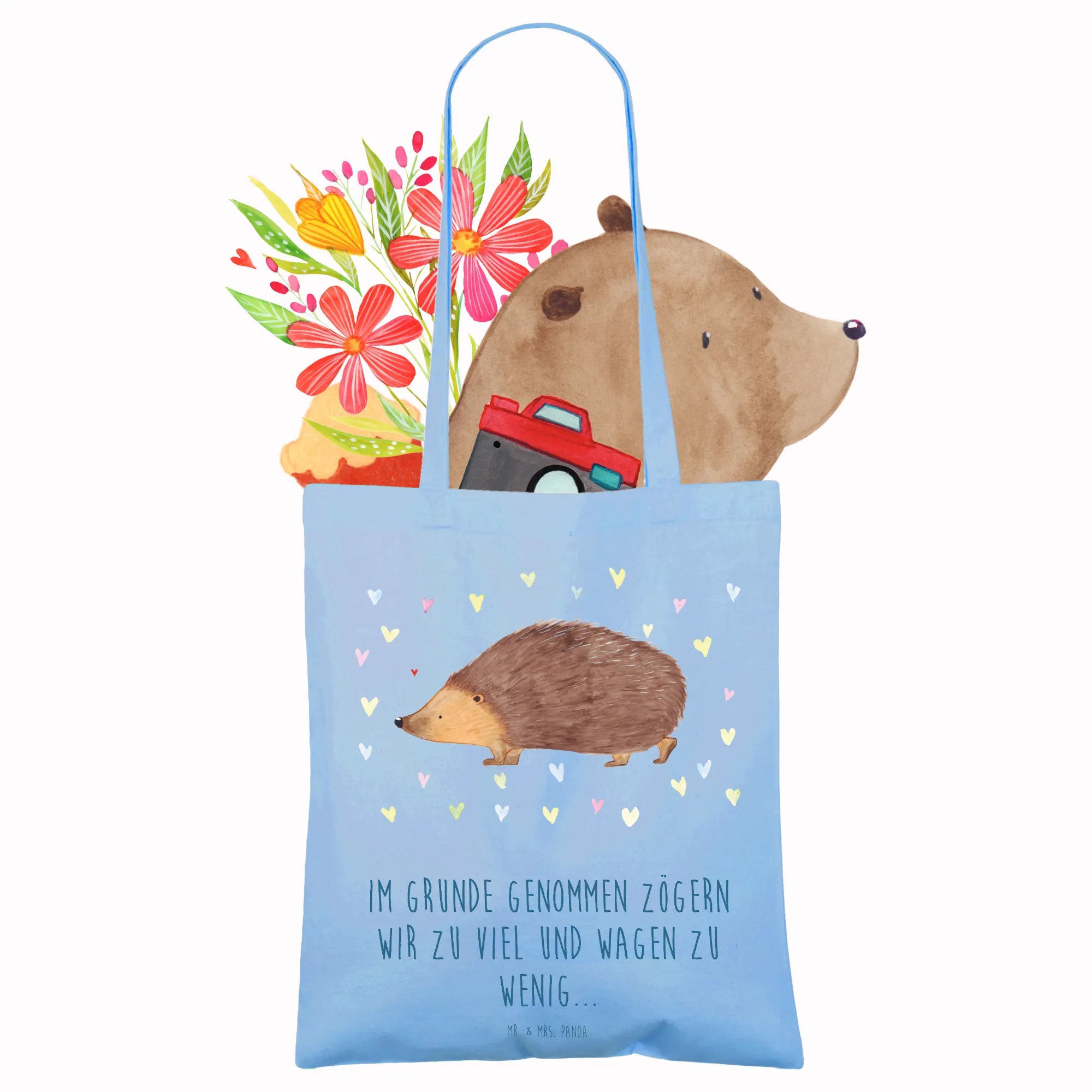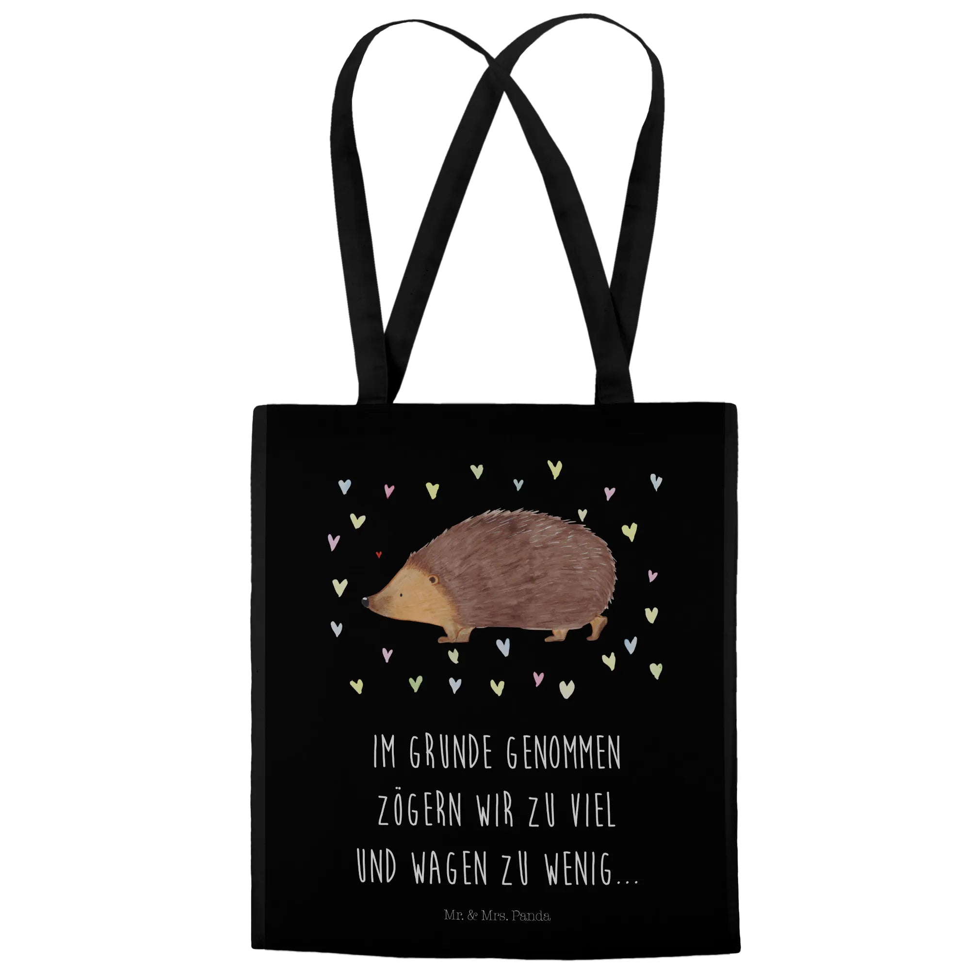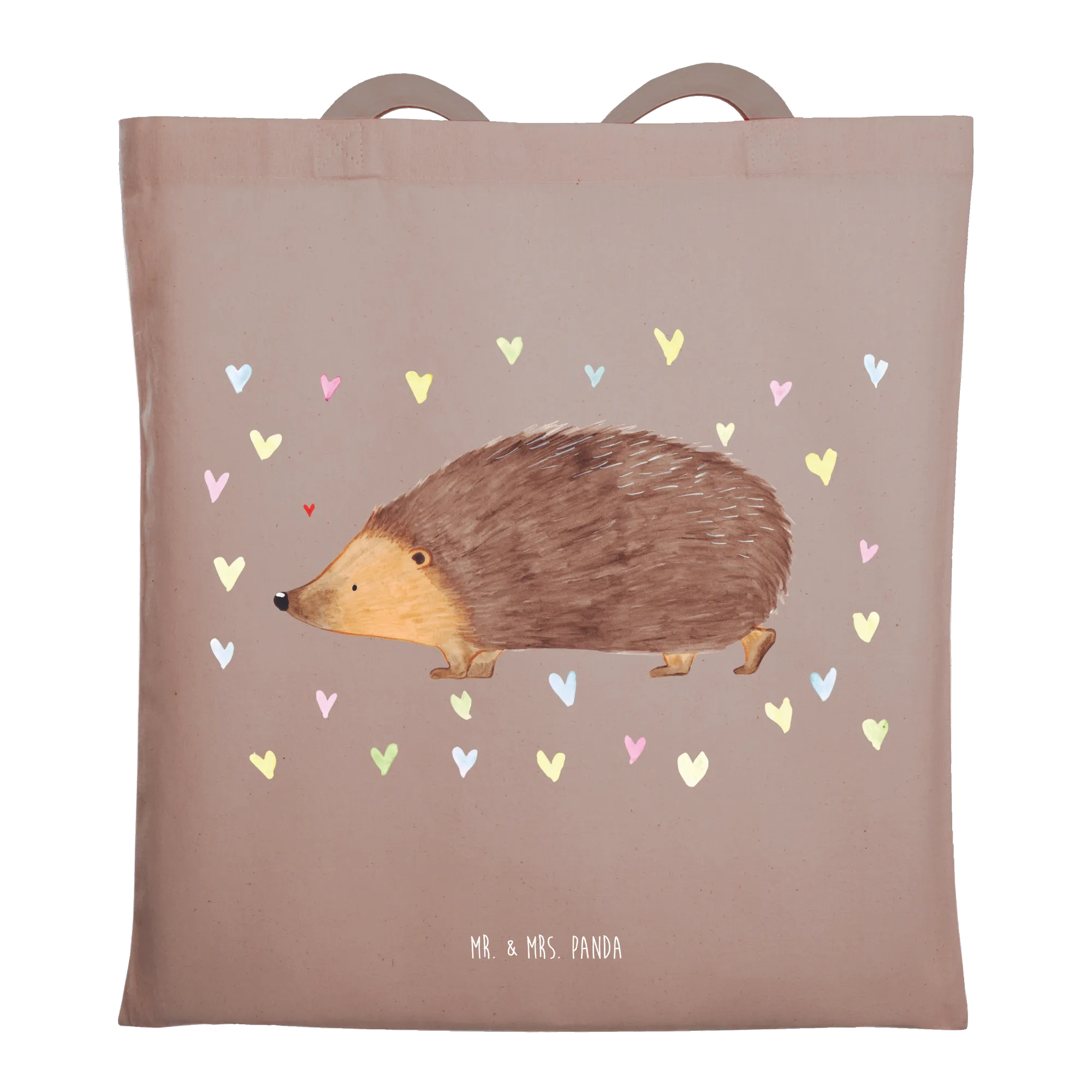 Introducing the enchanting Tote Bag featuring a delightful hedgehog surrounded by cheerful hearts, part of the beloved Small World collection by Mr. & Mrs. Panda! This beautifully designed carrier bag is the perfect gift for those who cherish cute animal motifs and funny, heartwarming art.