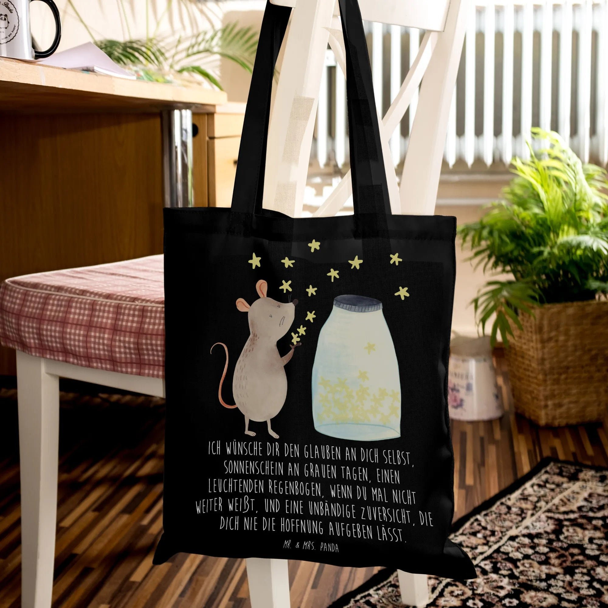 Crafted from 100% cotton, this tote bag, measuring 420 mm x 380 mm, is both lightweight and durable, making it perfect for carrying all your essentials. The design showcases an enchanting scene—a playful mouse sitting before a jar filled with sparkling stars, ready to guide you on a magical journey through the universe. It’s a design that captures the imagination of children and adults alike, sparking joy and inspiration in every use.
