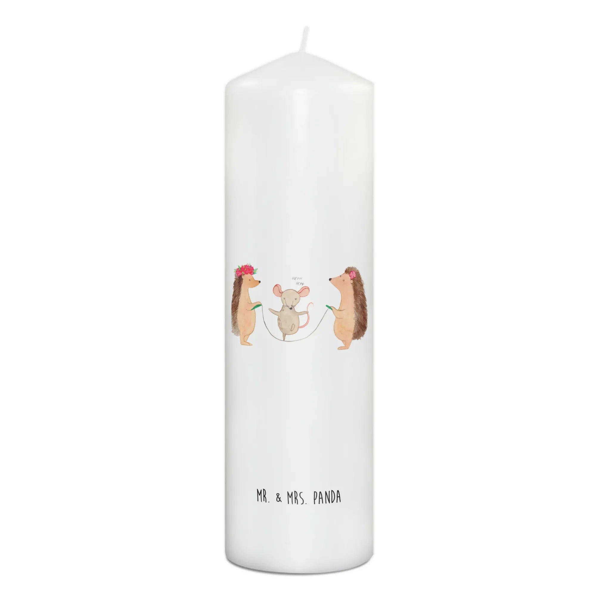 This candle, measuring 190mm x 80mm and weighing 250g, is made from high-quality paraffin wax, ensuring a long burn time that adds a lovely glow to any room. The whimsical design of our hedgehogs gleefully skipping rope is hand-drawn with love by Mrs. Panda, making it a truly unique addition to your home. Whether you are looking for a birthday gift, a special baptism candle, or a charming decoration for a communion celebration, this candle is the perfect choice!