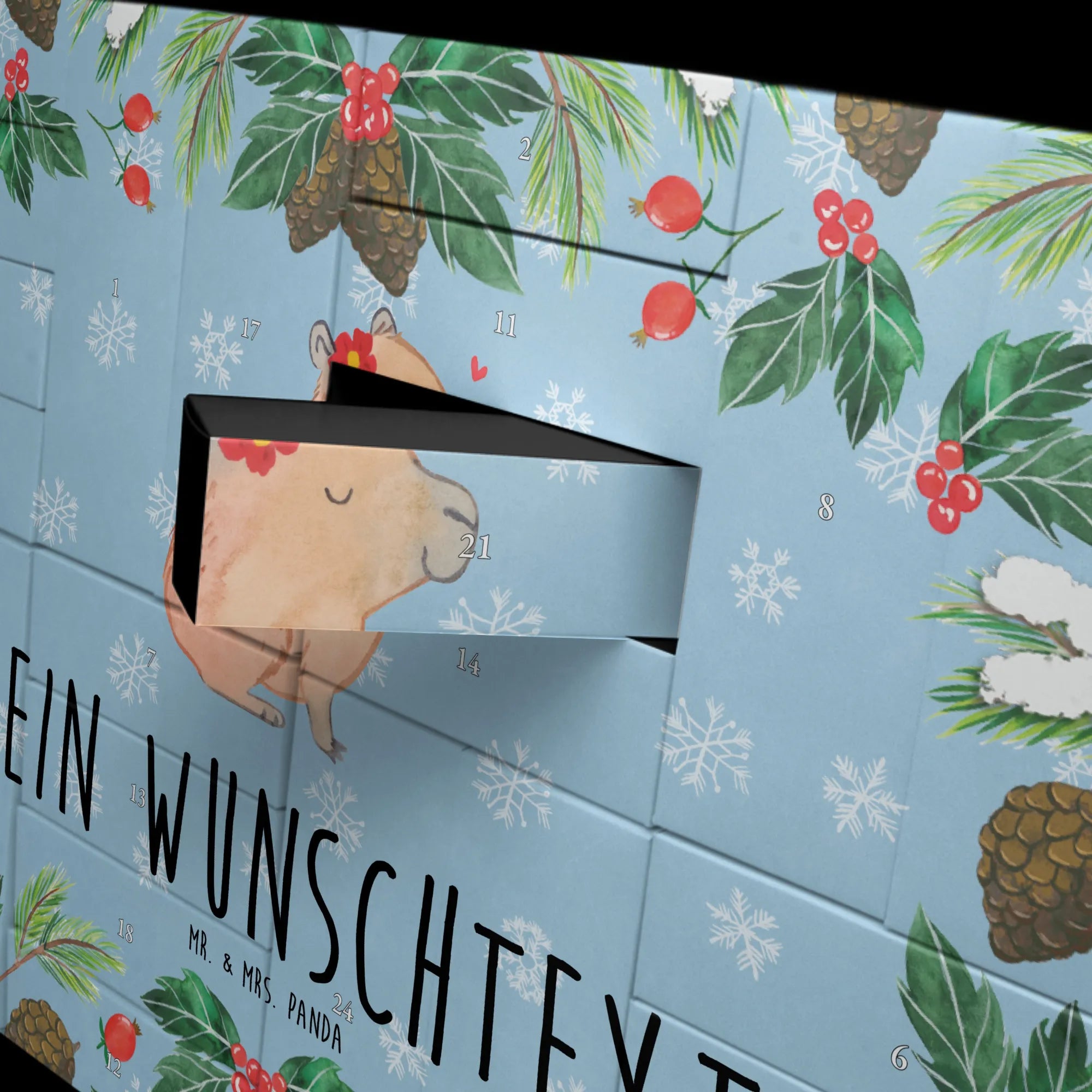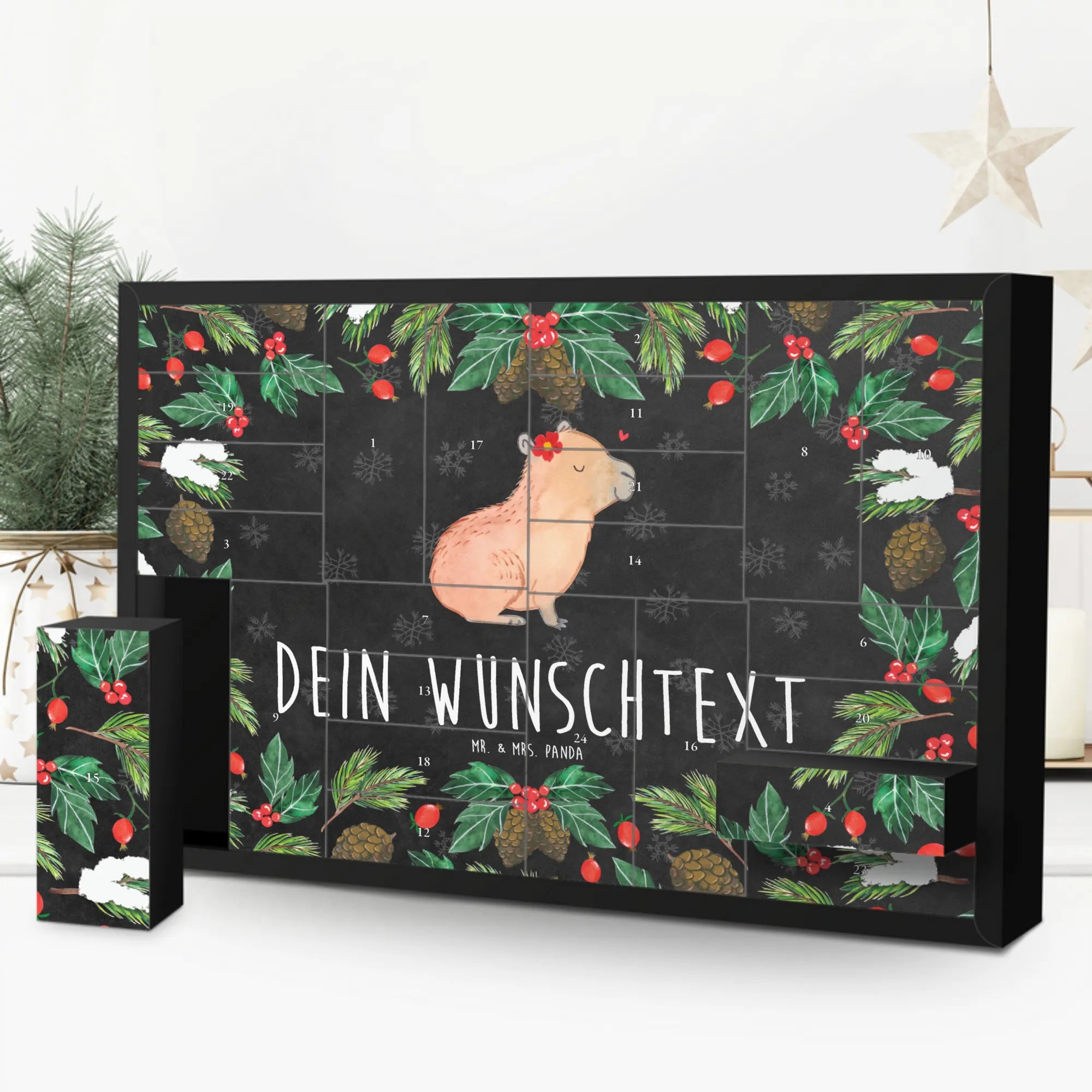 Discover the magic of the Advent season with Mr. & Mrs. Panda's personalized fillable Advent calendar. With the option to fill it with your own favorite surprises, this calendar becomes a heartwarming centerpiece of your holiday preparations. Each of the 24 boxes is ready to be uniquely filled by you, bringing daily joy to your loved ones or yourself. The heartfelt drawings and sayings, combined with the ability to personalize the calendar with a name or message of your choice, make it an incomparable and special gift that makes the Christmas season even more magical.