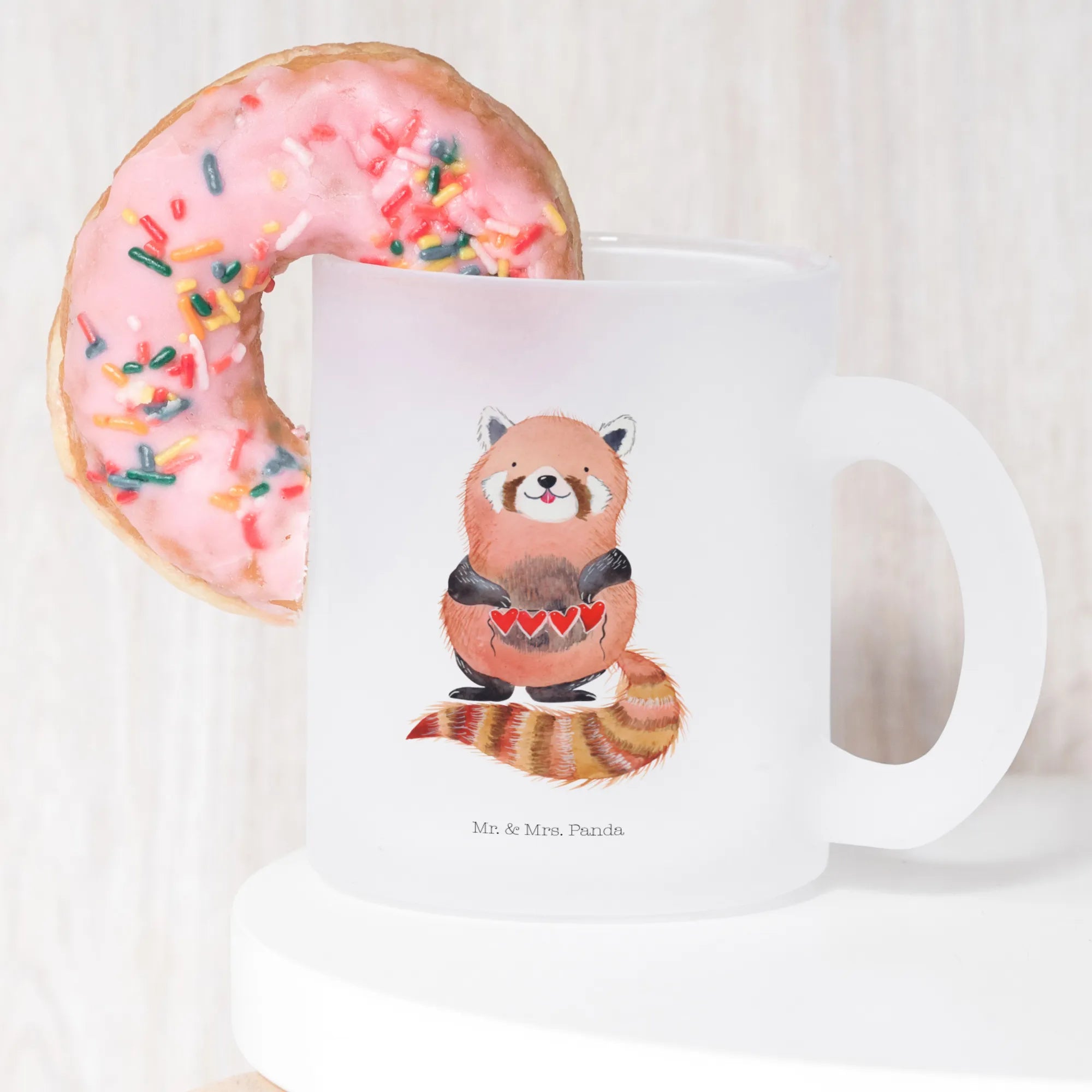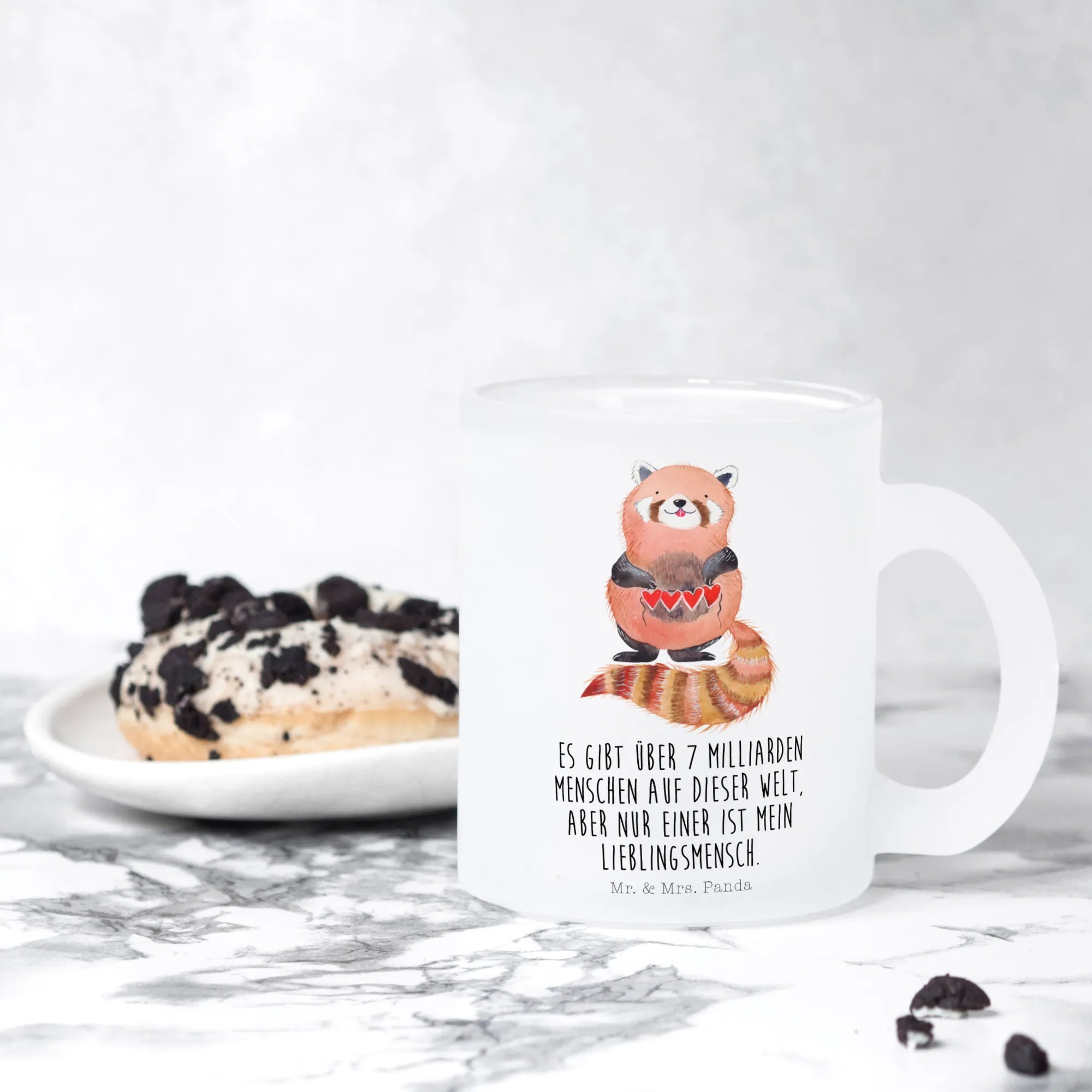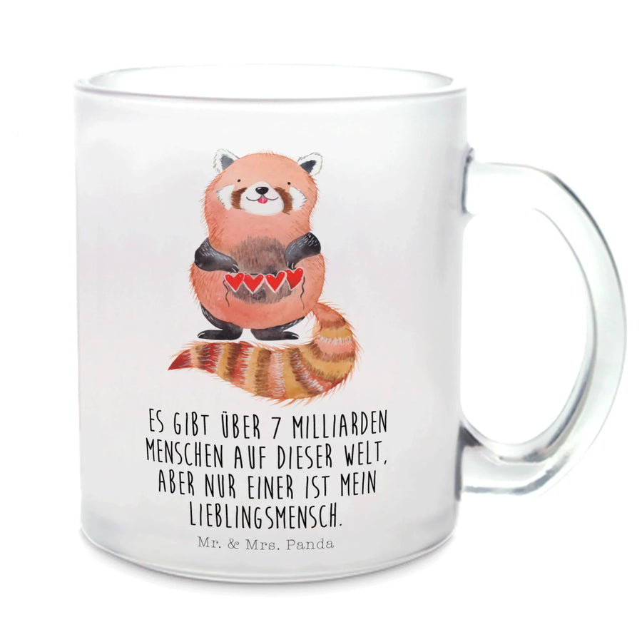 Glass tea cup red panda - with a saying