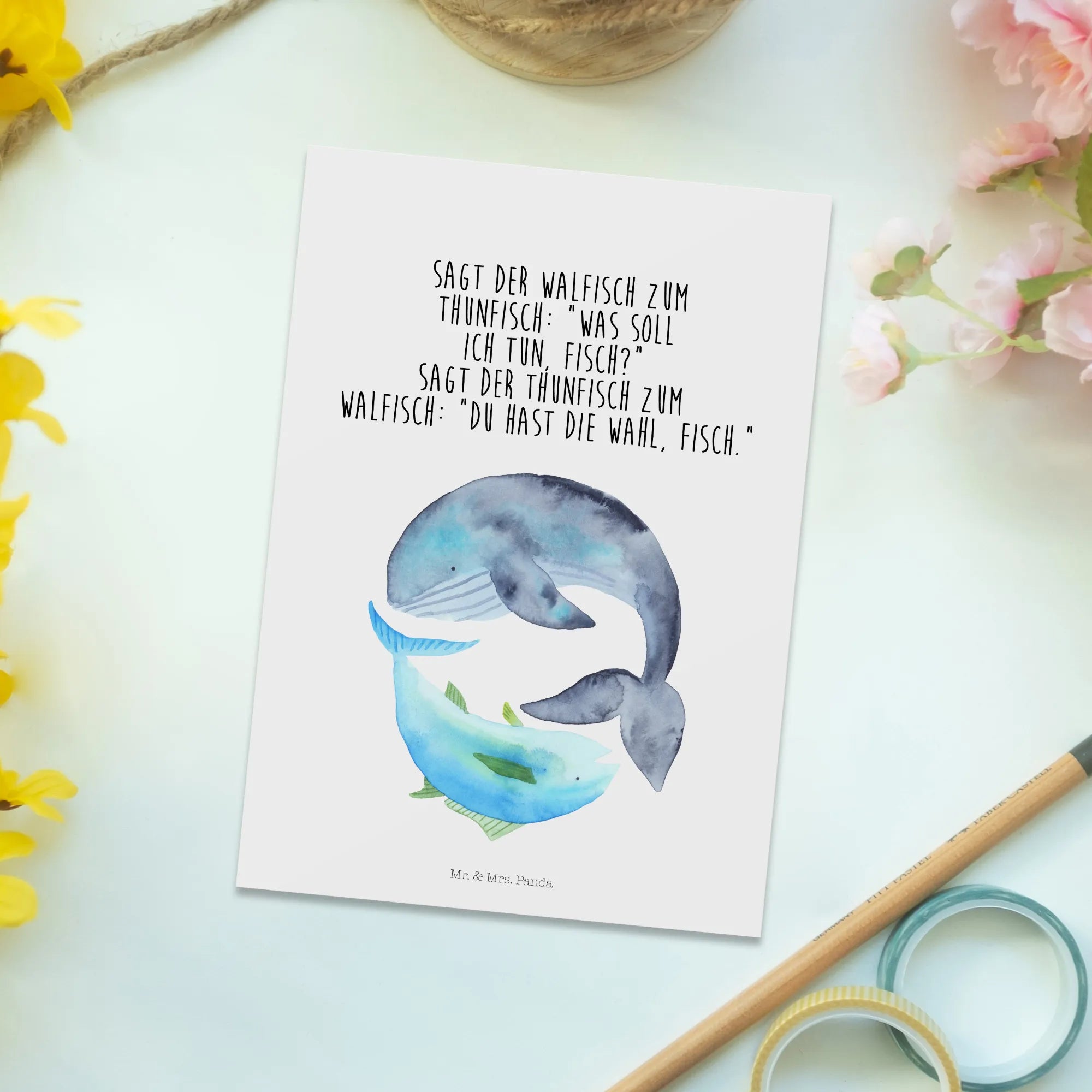 With its endearing imagery and light-hearted humor, it’s an ideal choice for any occasion, be it a birthday, a wedding invitation, or even just a surprise note to brighten someone’s day. The witty saying, 'What shall I do, fish?' as shared from the whale to the tuna, and 'You have the choice, fish.' adds a playful touch that is sure to make the recipient chuckle!