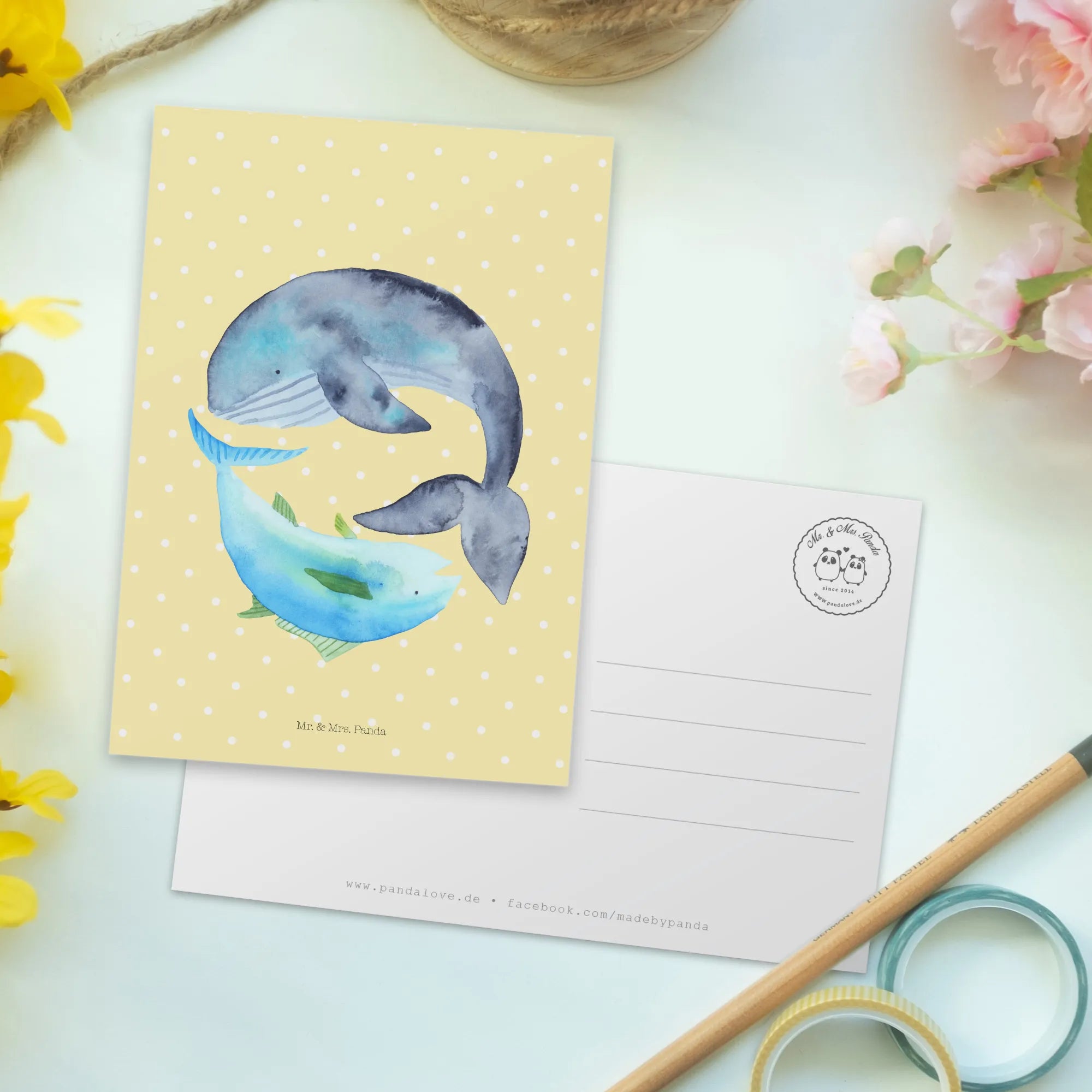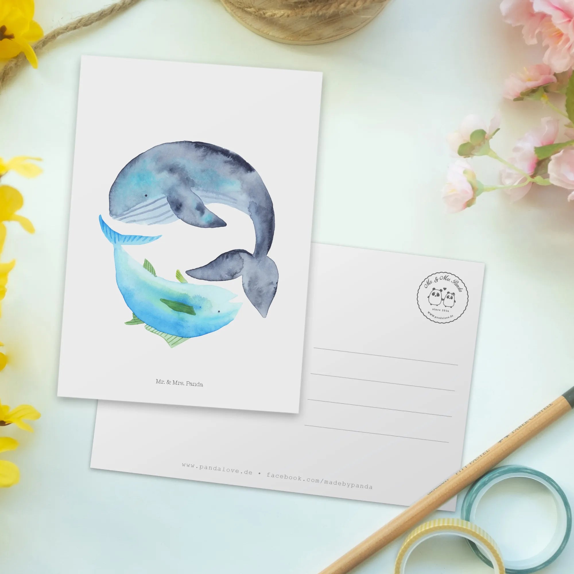 This delightful postcard brings together two charming ocean friends: a whale and a tuna, swimming joyfully through their aquatic home. Perfect for any animal lover, this card is a wonderful way to spread smiles and share good vibes with your loved ones.