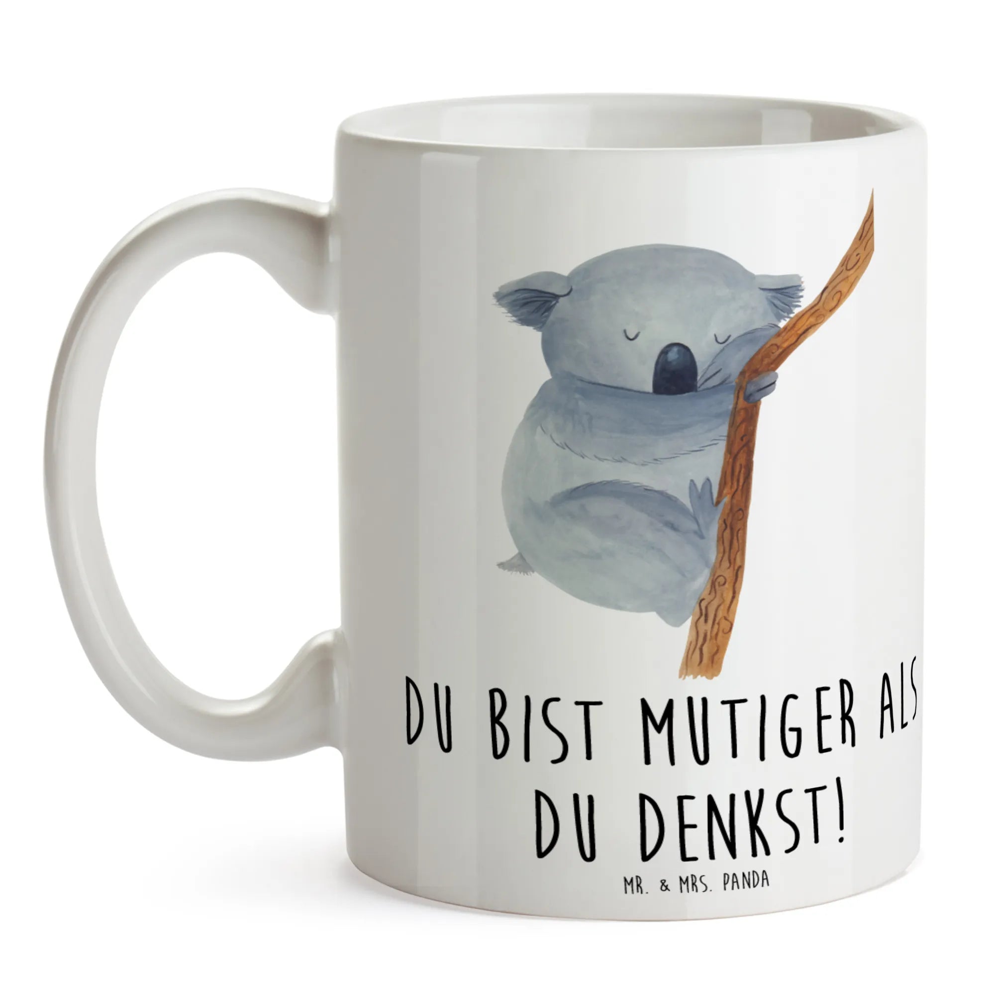 Verschenke Mut und Zuversicht mit dieser liebevoll gestalteten Keramiktasse von Mr. & Mrs. Panda. Sie erinnert täglich daran: Du bist mutiger als du denkst!