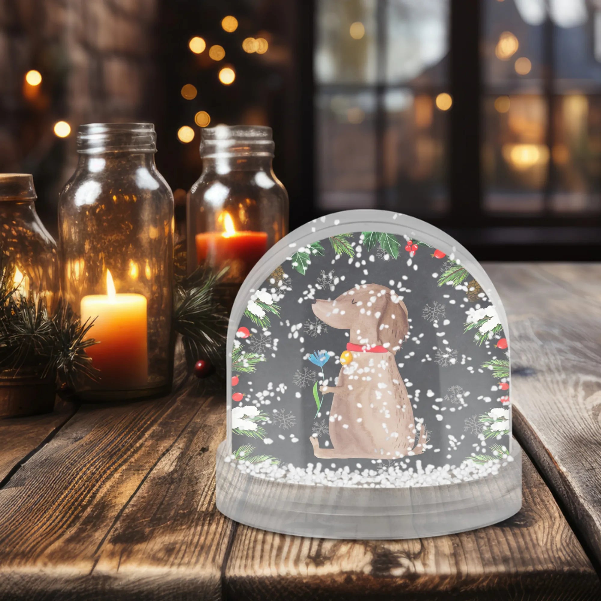 Snow globe Dog flower - natural paper