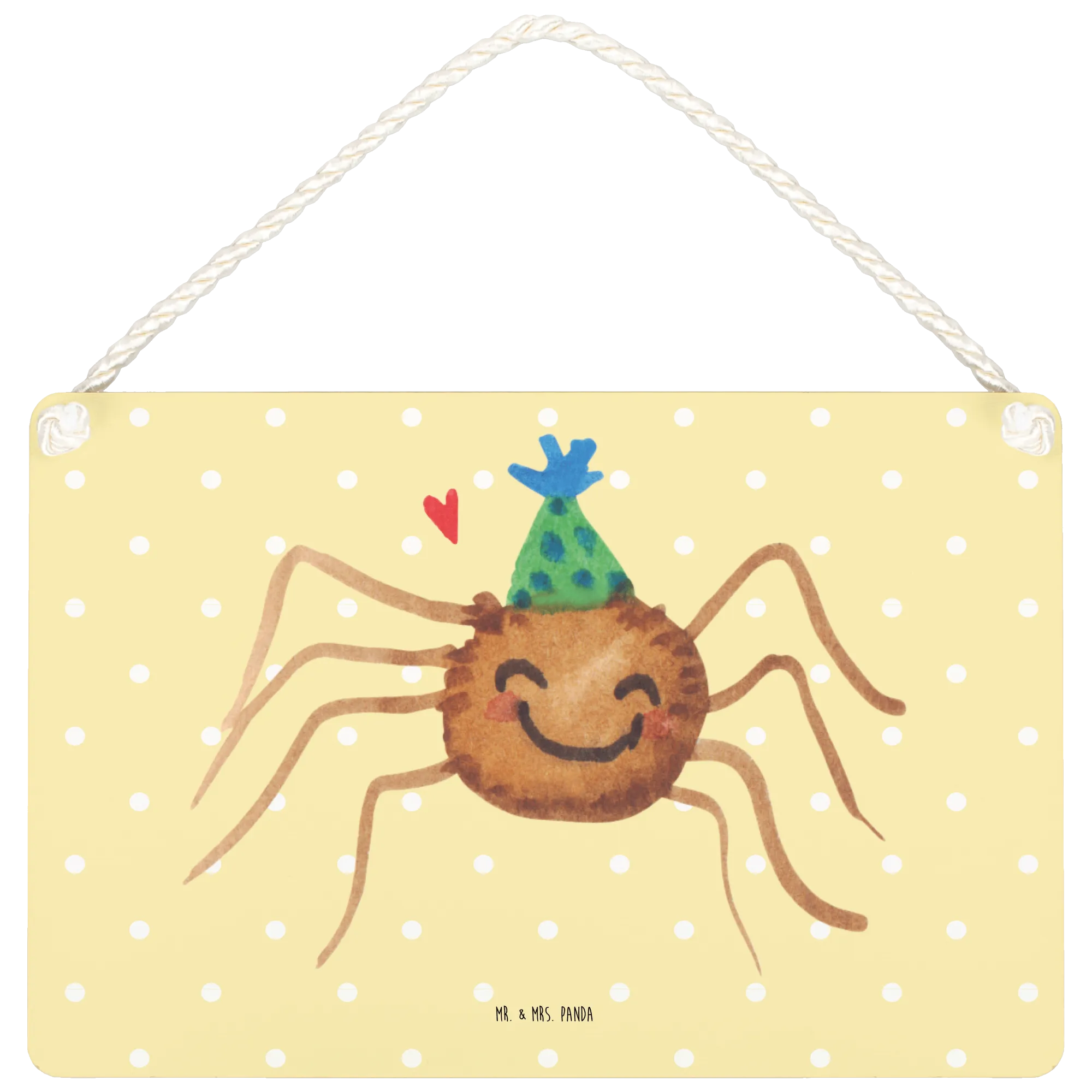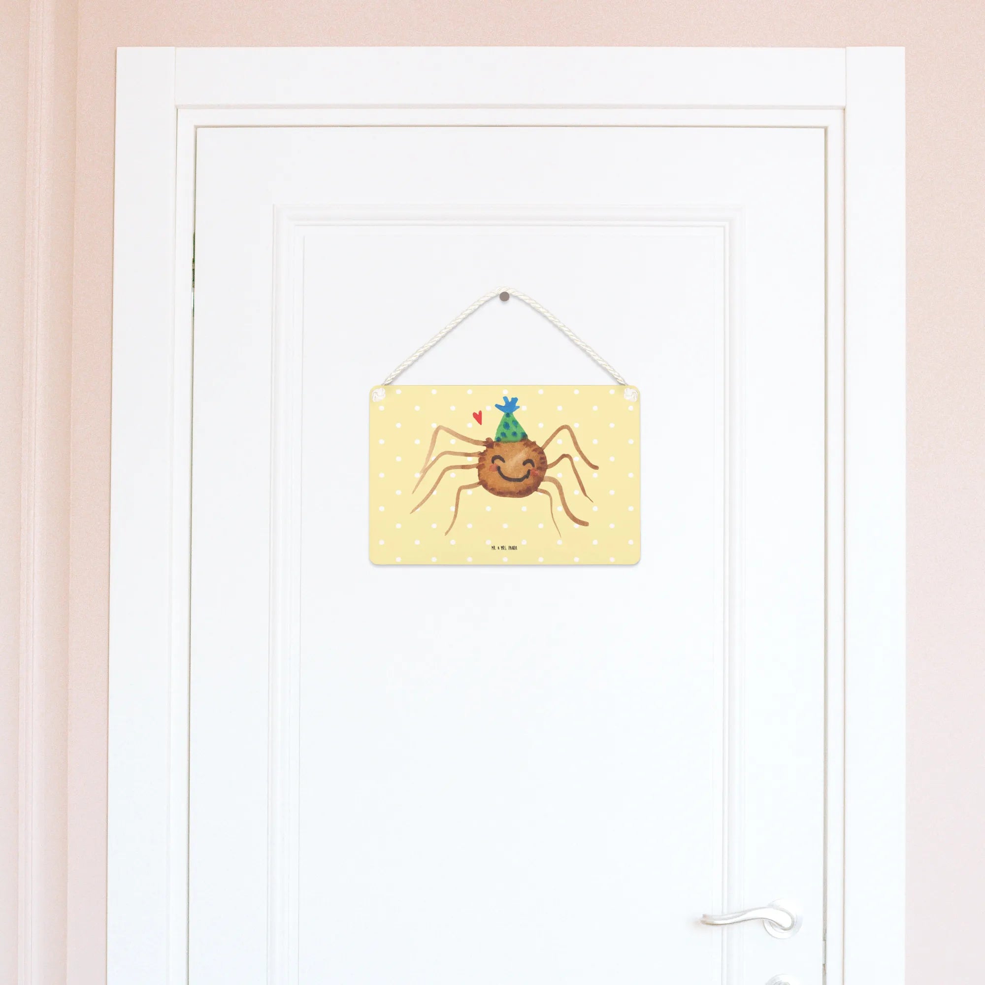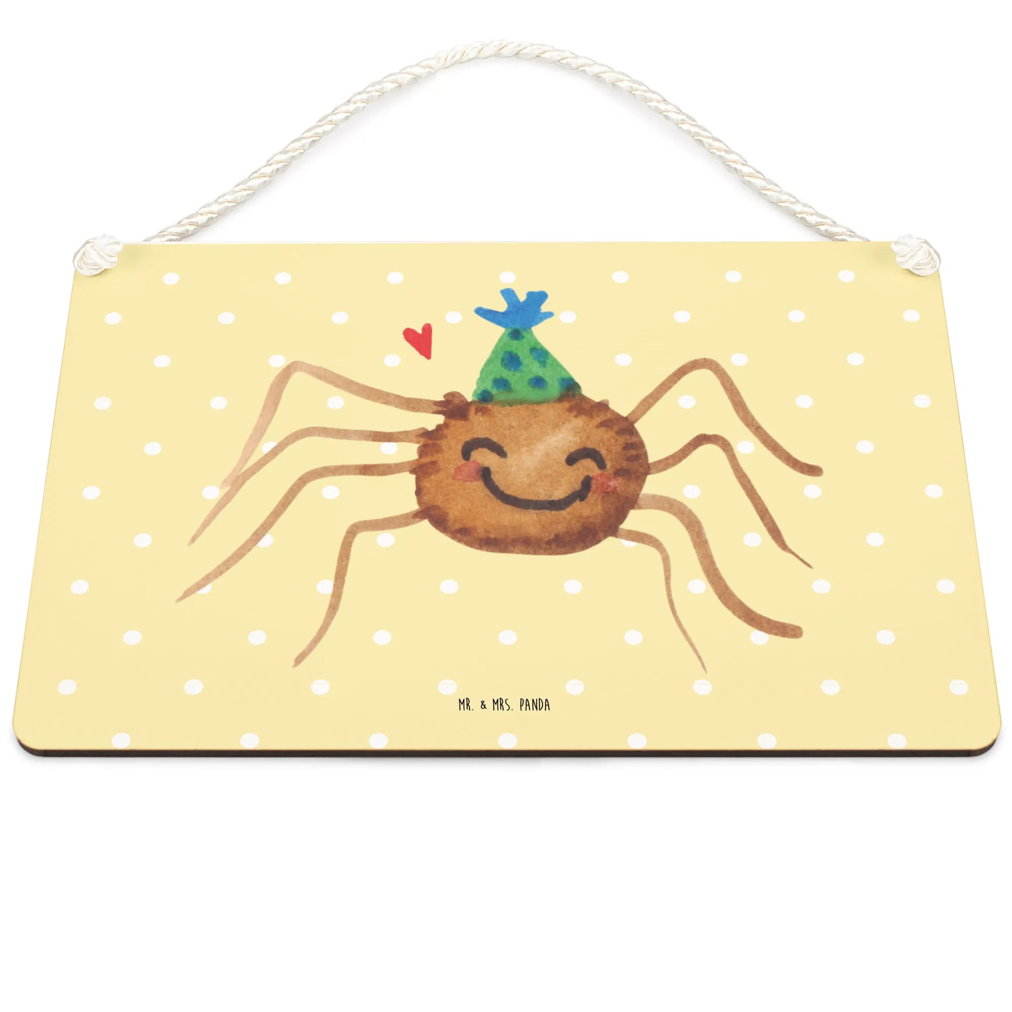 Crafted with care and love, our beautiful sign is made from high-quality MDF, ensuring durability and a long-lasting finish that you can cherish for years to come. Its cheerful yellow pastel background and the endearing illustration of Spider Agatha, adorned in a playful party hat, make it an eye-catching addition to any room. This sign is perfect for hanging on doors, adorning walls, or even as a motivational piece in your workspace.