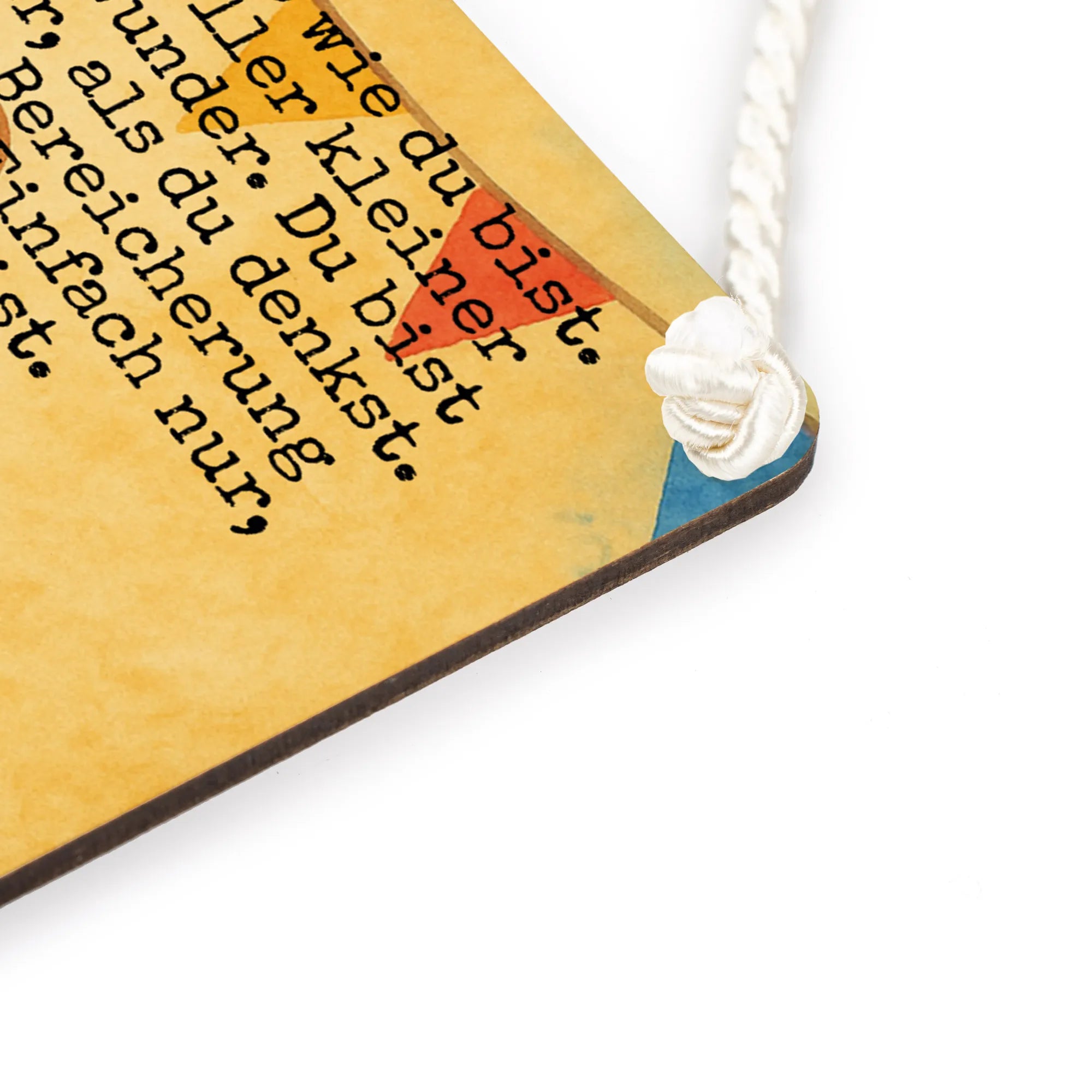 Ein charmantes Deko Schild von Mr. & Mrs. Panda ist die perfekte Ergänzung für dein Zuhause. Dieses Schild begeistert mit seinen fröhlichen Motiven und inspirierenden Sprüchen. Mit den Maßen von 148 mm x 105 mm ist es ideal für die Anbringung an Wänden oder Türen. Gefertigt aus beschichteter Holzfaser, bietet es Langlebigkeit und erhält die strahlenden Farben über lange Zeit hinweg. Der hochwertige Druck verleiht dem Schild eine edle Optik. Ob als Küchenschild, Badschild oder einfach alswillkommen Schild – die Einsatzmöglichkeiten sind grenzenlos! Auch die zarte Kordel zur Aufhängung ist ein echter Hingucker. Mach dein Zuhause mit diesem vielseitigen Deko Schild zu einem Ort voller Freude und Gemütlichkeit!