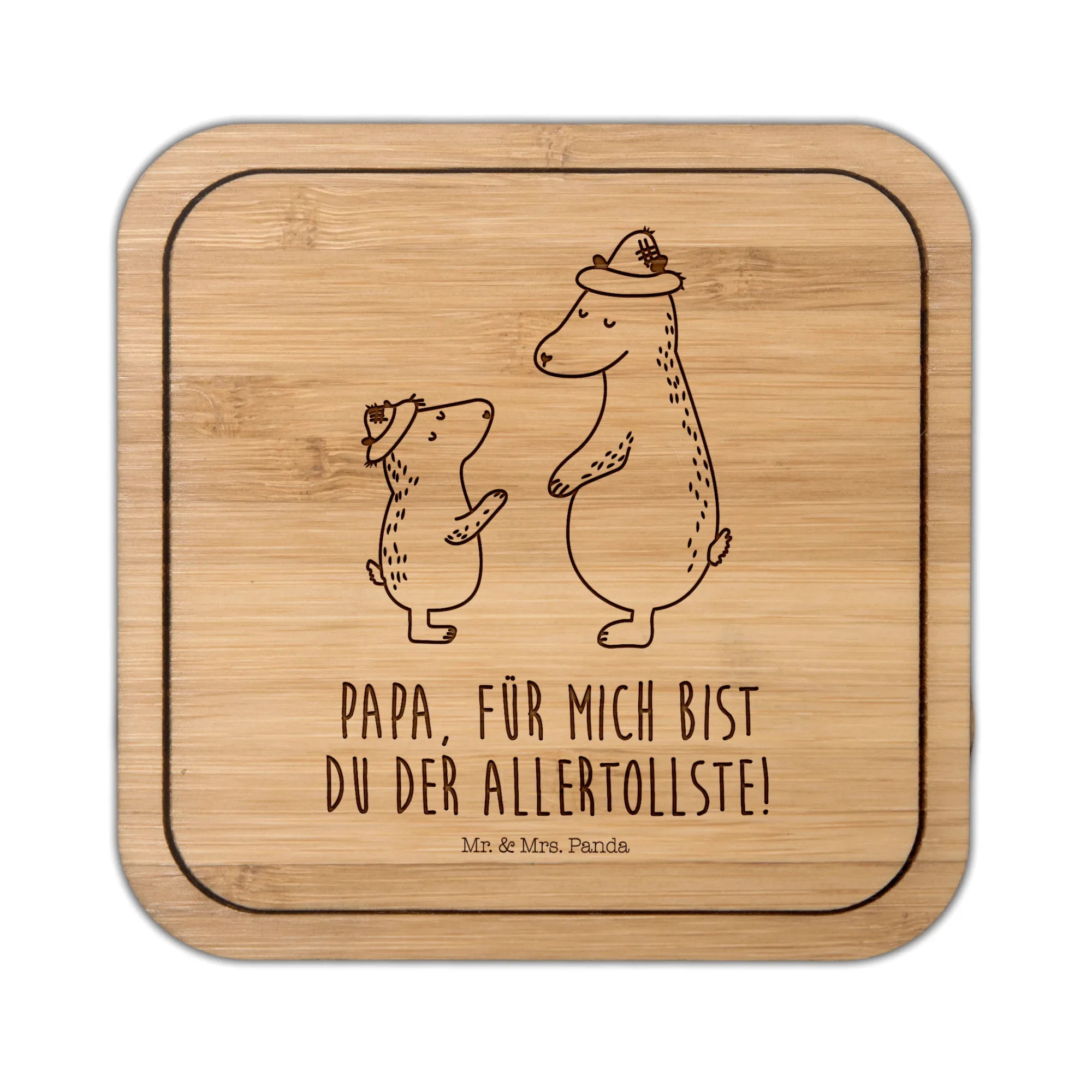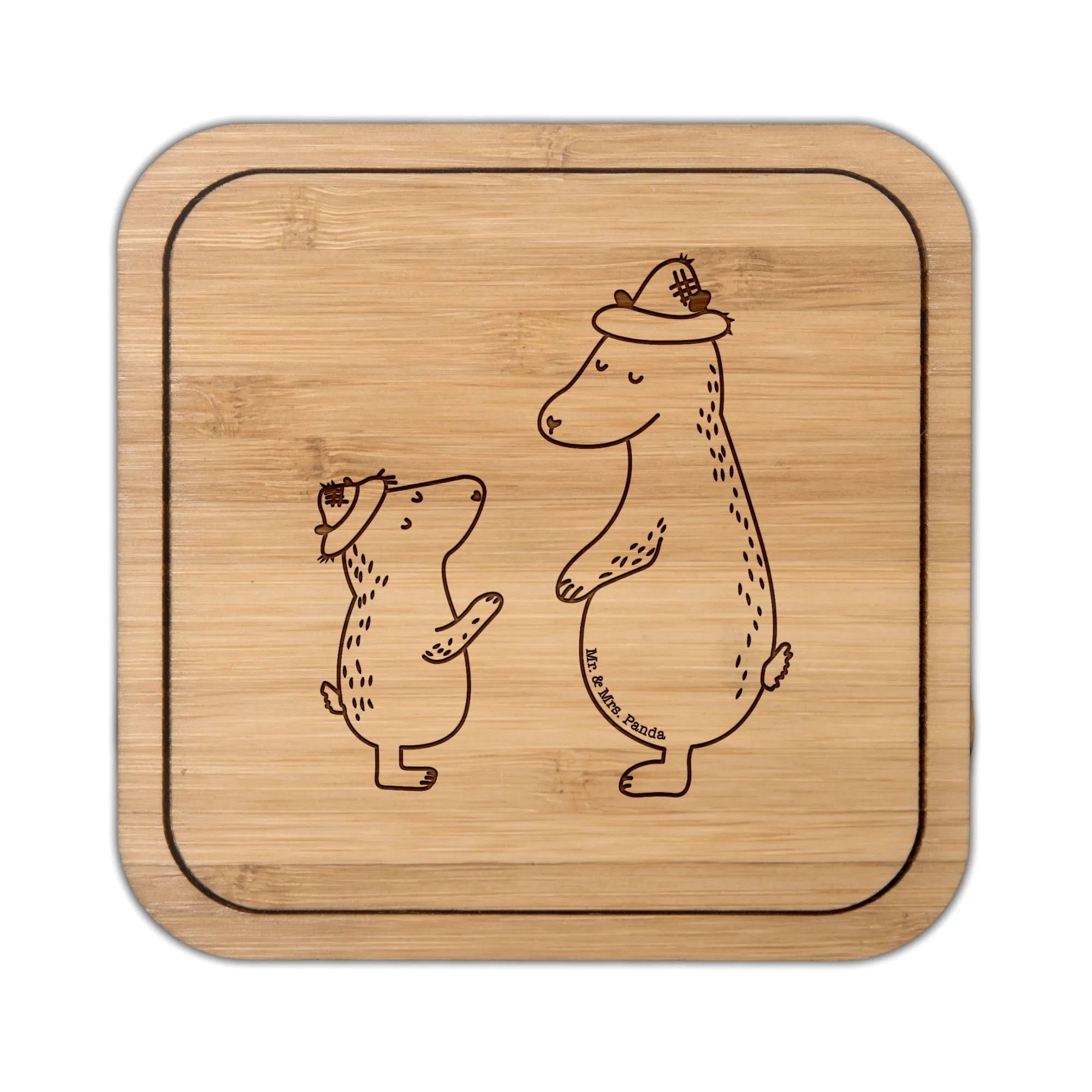 Ein wunderschöner Untersetzer quadratisch von Mr. & Mrs. Panda mit dem zauberhaften Motiv "Bären mit Hut" aus unserer Kollektion Familie. Die beiden liebevoll gezeichneten Bären strahlen Wärme, Nähe und Geborgenheit aus – perfekt für alle, die Geschenke mit Herz suchen.
