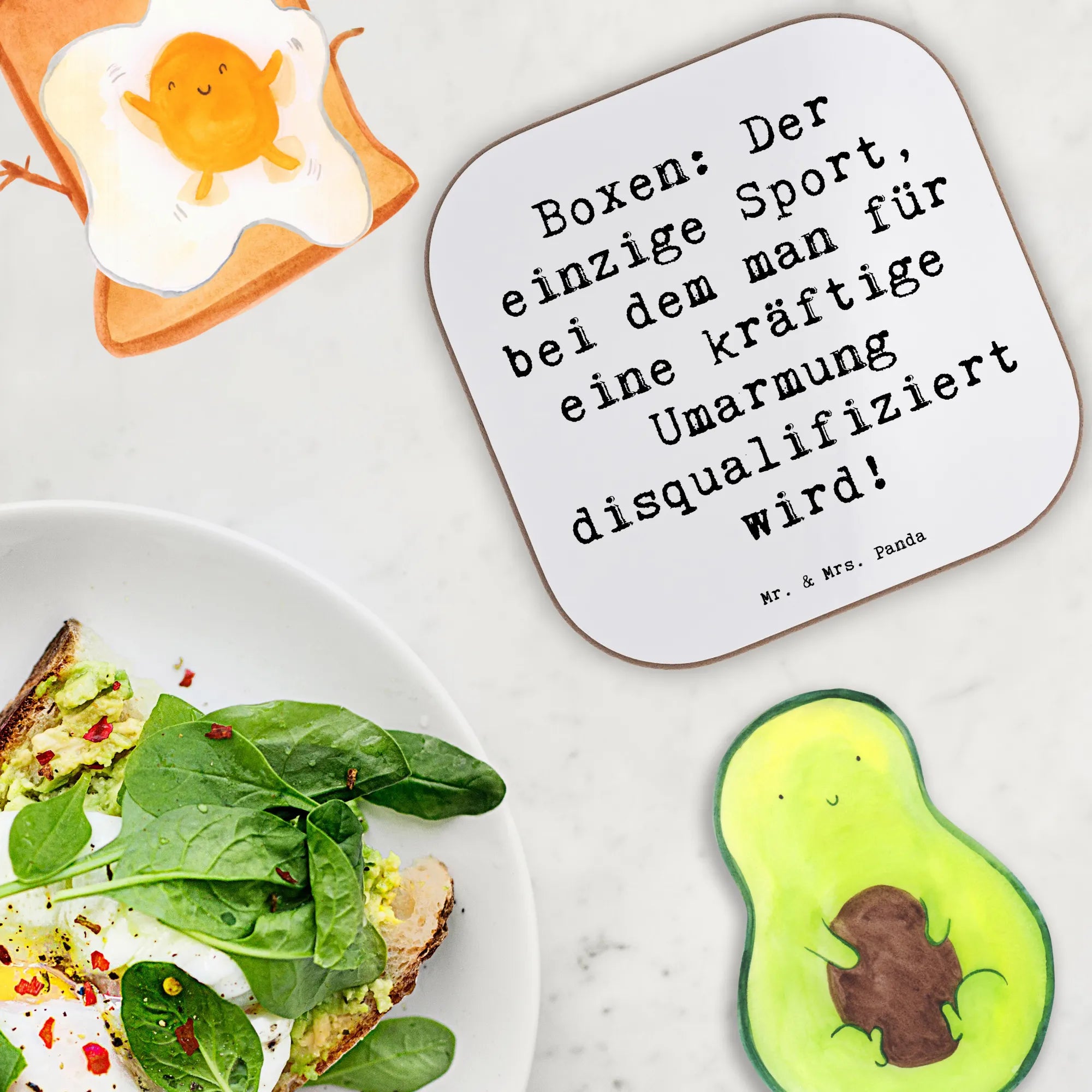 Square coaster Saying Boxen: Der einzige Sport, bei dem man für eine kräftige Umarmung disqualifiziert wird! - Sea Breeze