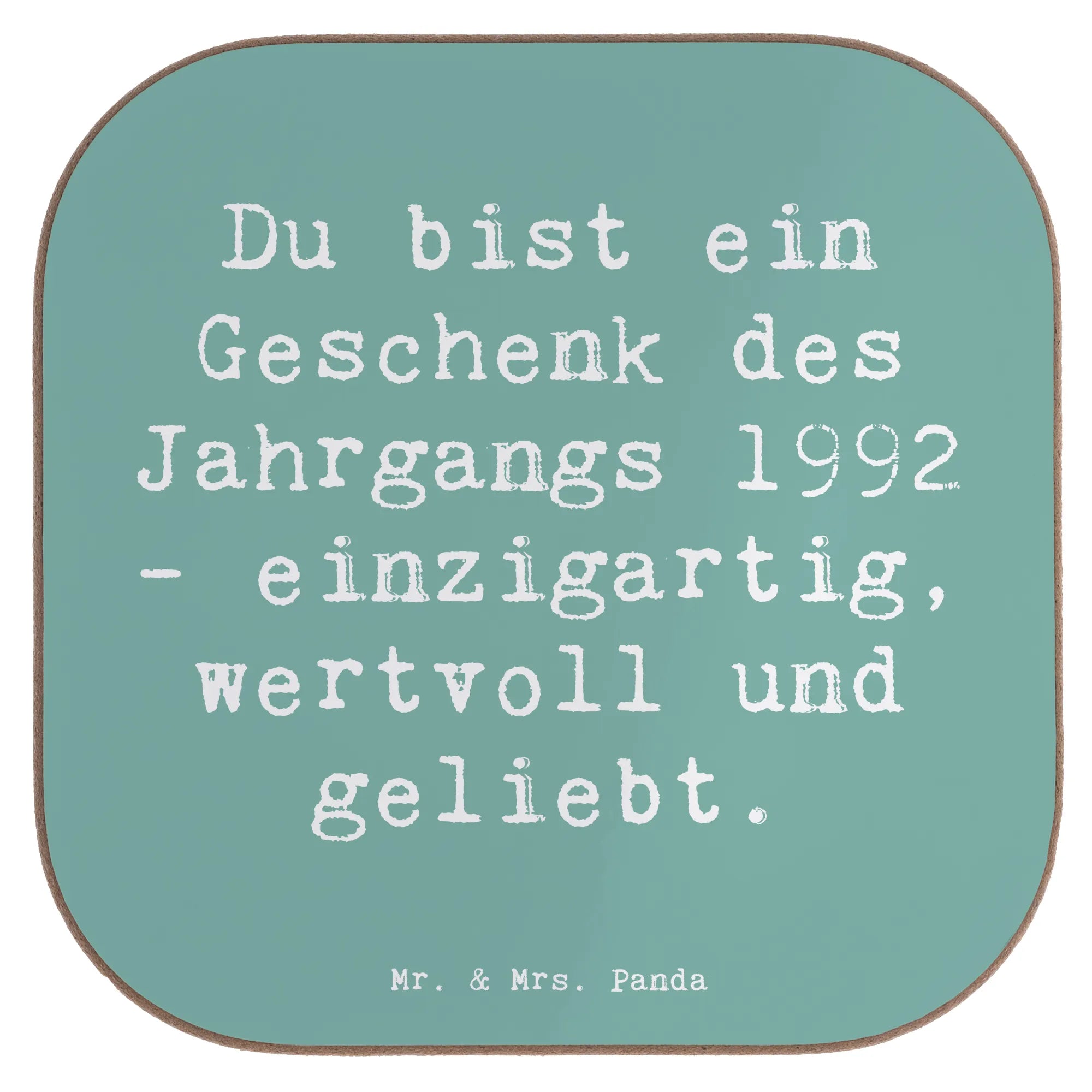 Square coaster Saying Du bist ein Geschenk des Jahrgangs 1992 - einzigartig, wertvoll und geliebt. - Sea Breeze