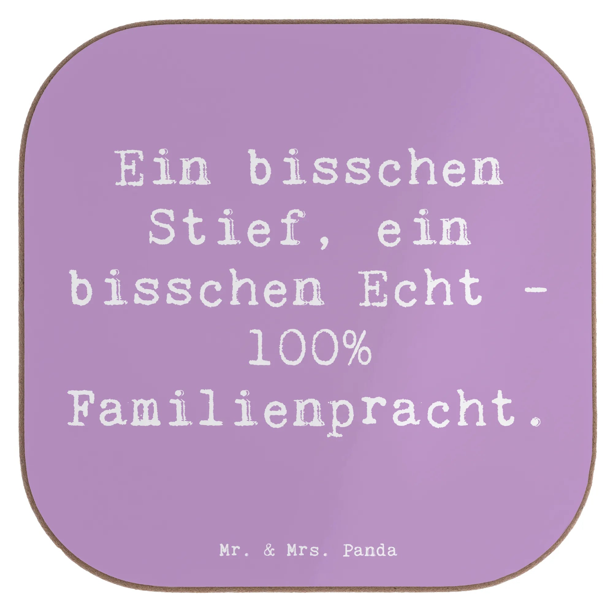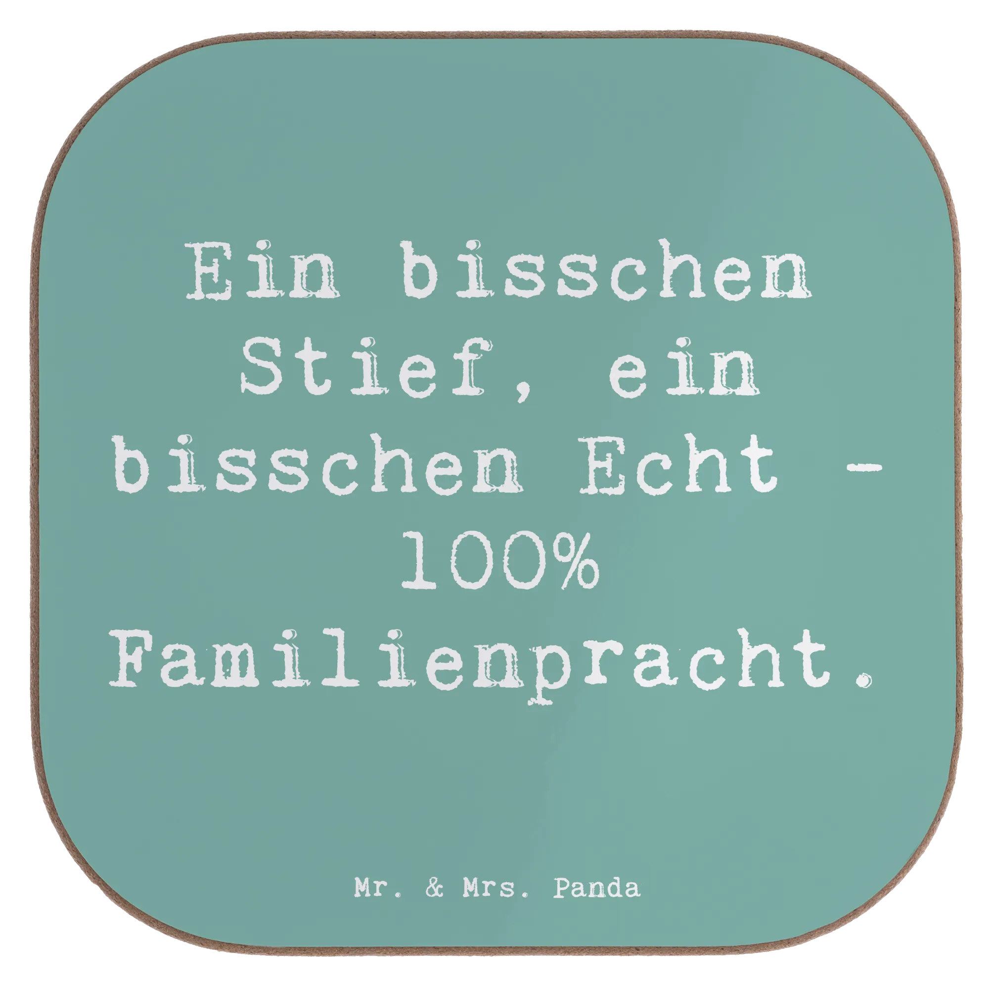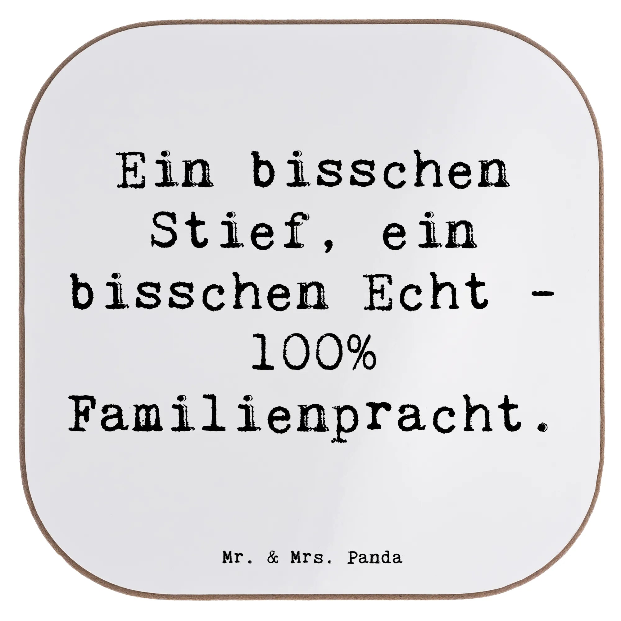 Square coaster Saying Ein bisschen Stief, ein bisschen Echt - 100% Familienpracht.