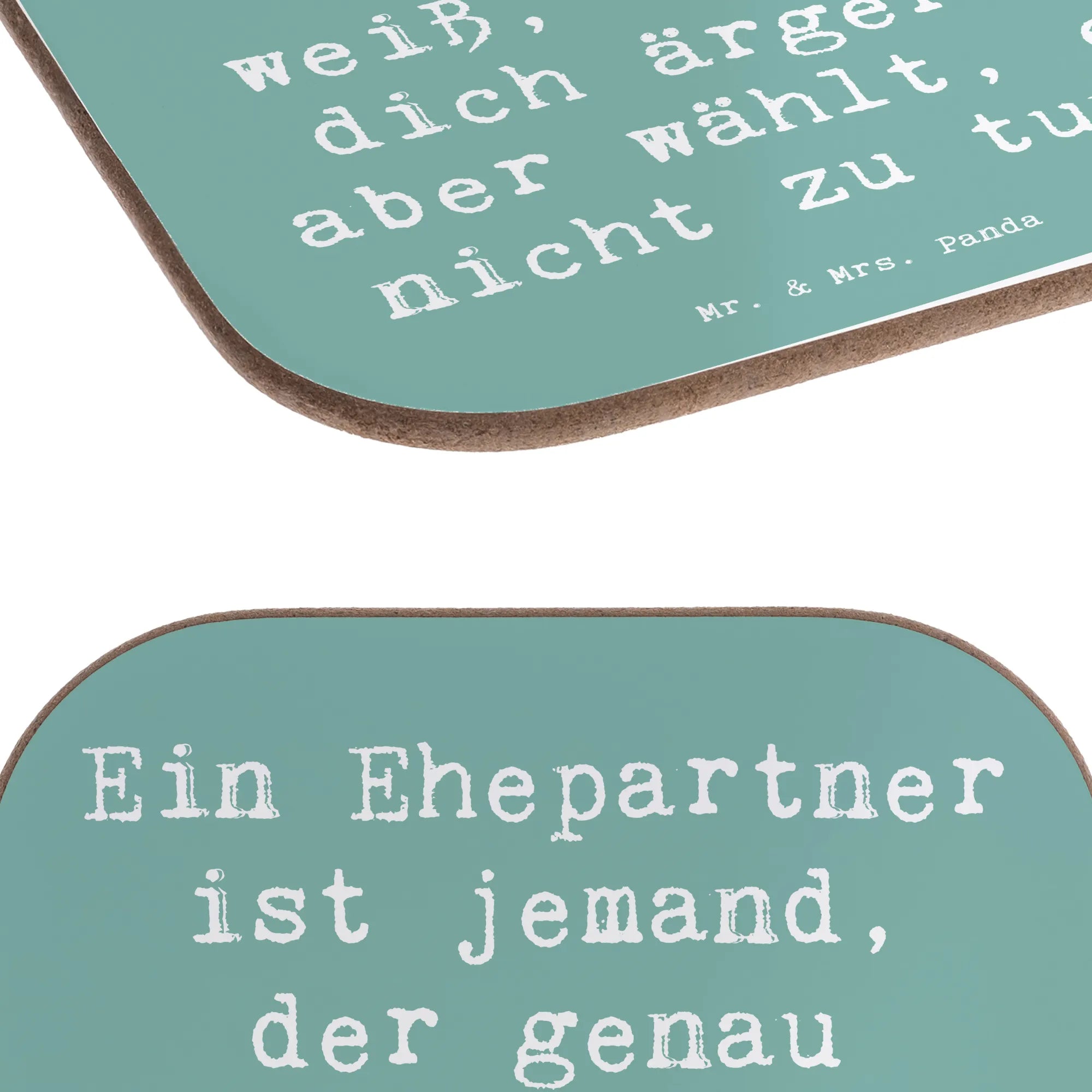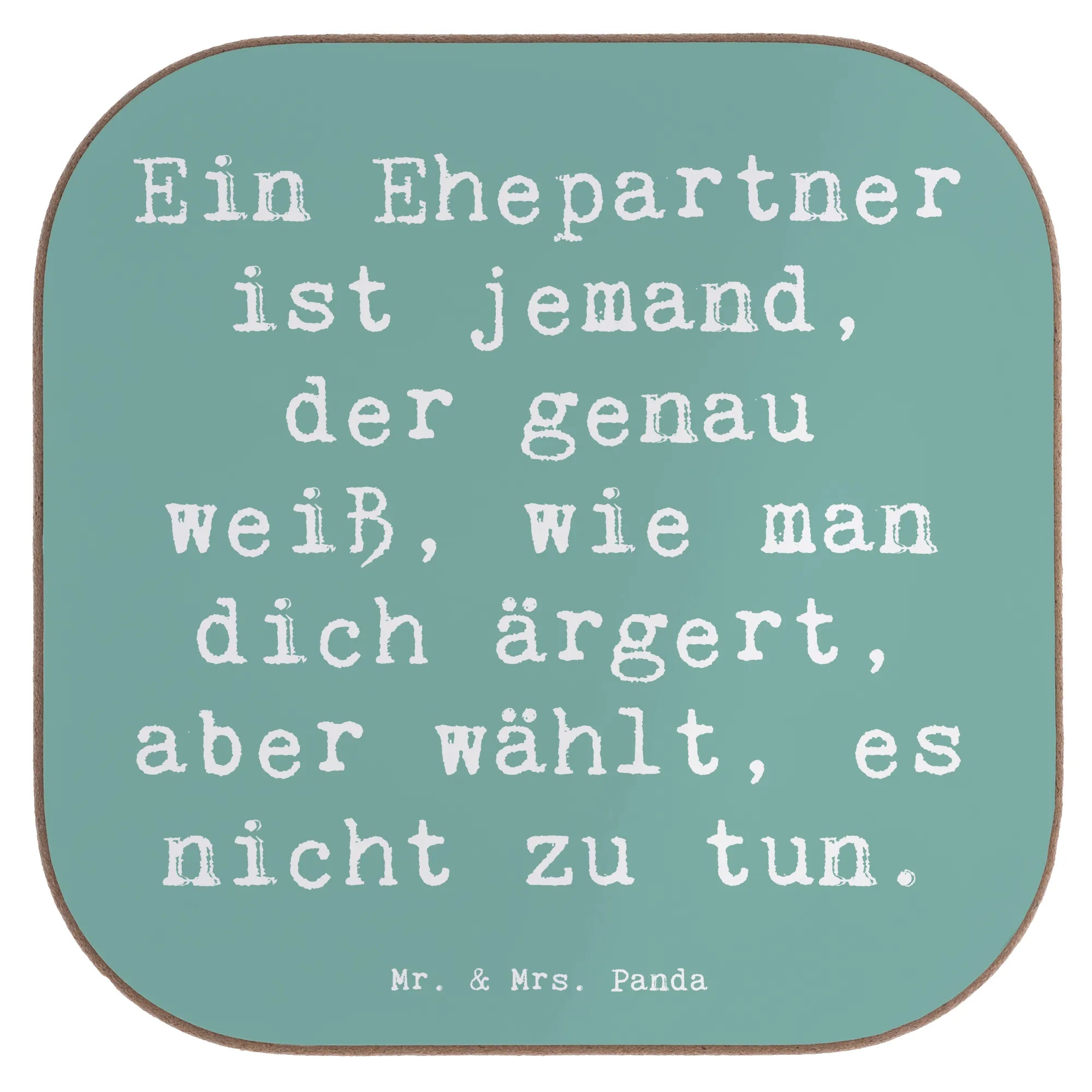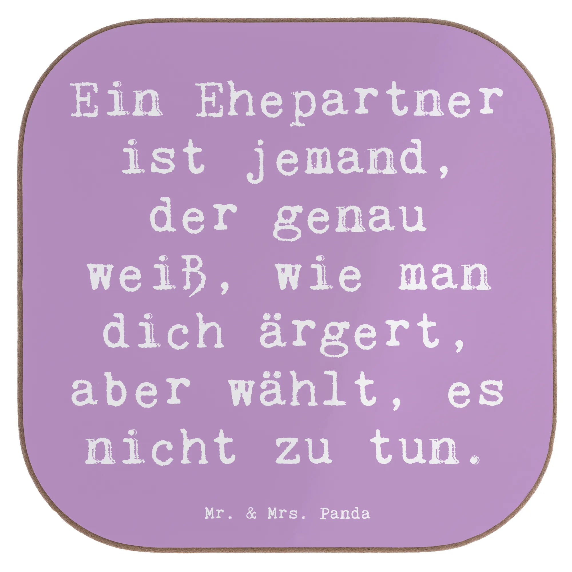 Square coaster Saying Ein Ehepartner ist jemand, der genau weiß, wie man dich ärgert, aber wählt, es nicht zu tun.