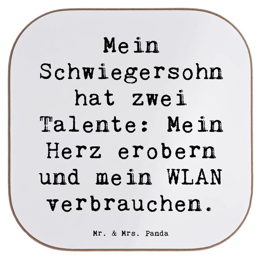 Square coaster Saying Mein Schwiegersohn hat zwei Talente: Mein Herz erobern und mein WLAN verbrauchen.