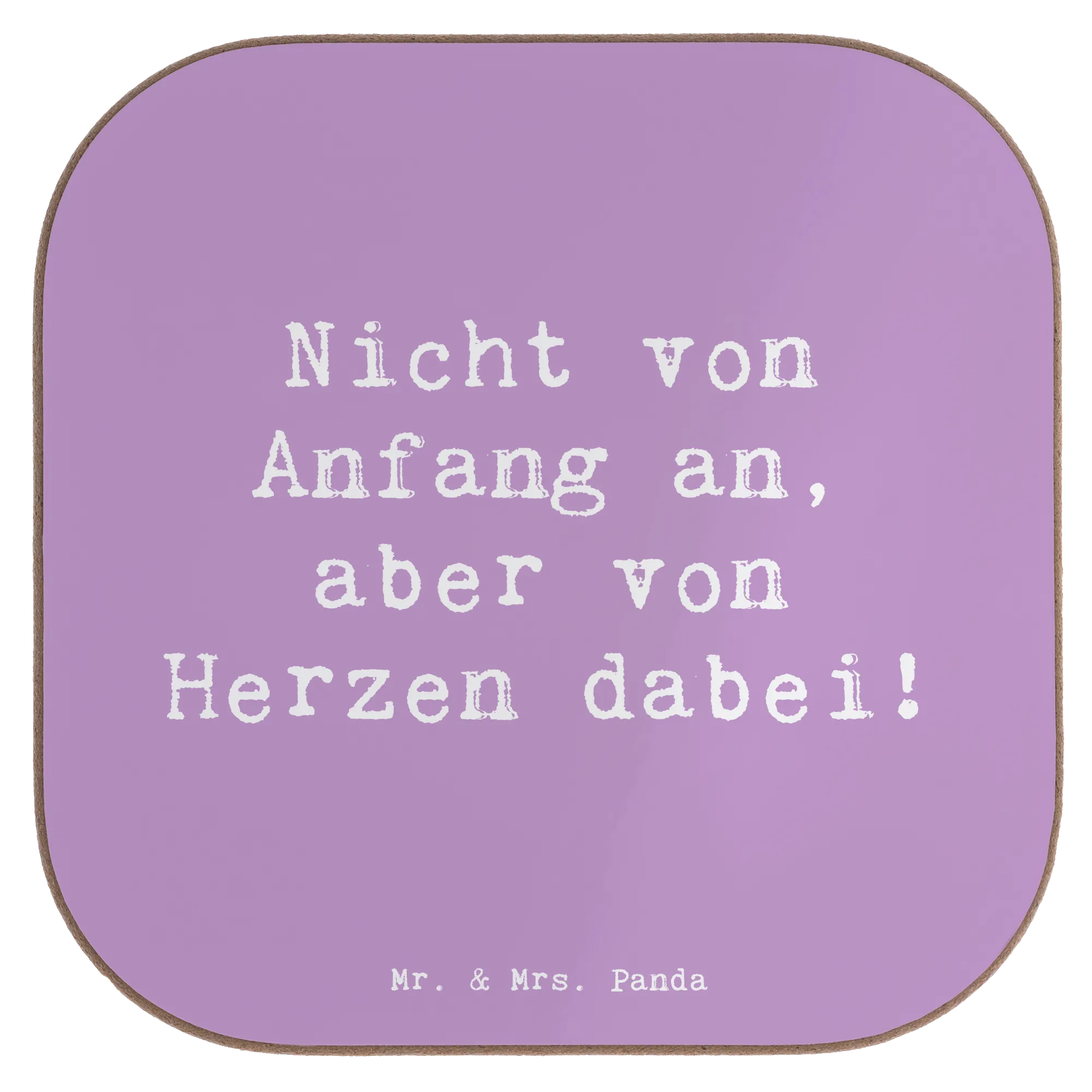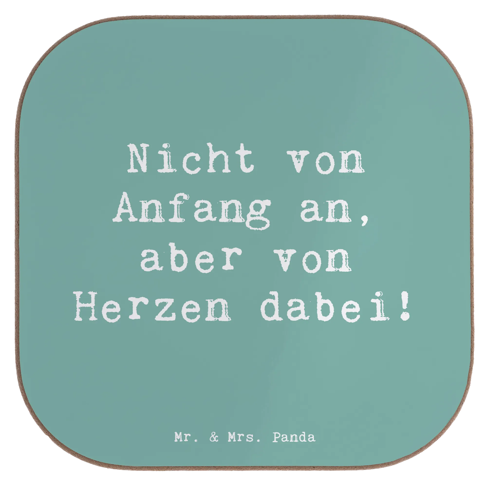 Square coaster Saying Nicht von Anfang an, aber von Herzen dabei!