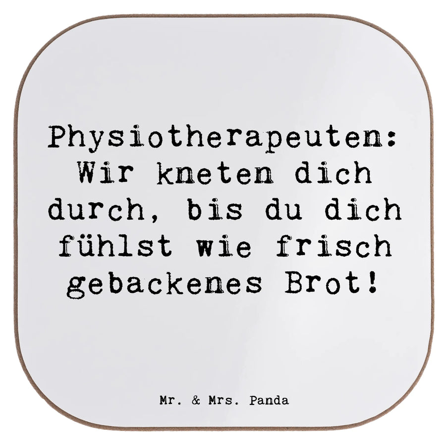 Square coaster Saying Physiotherapeuten: Wir kneten dich durch, bis du dich fühlst wie frisch gebackenes Brot! - hardboard - White