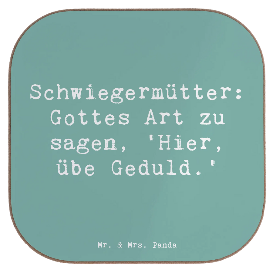 Square coaster Saying Schwiegermütter: Gottes Art zu sagen, 'Hier, übe Geduld.' - Sea Breeze