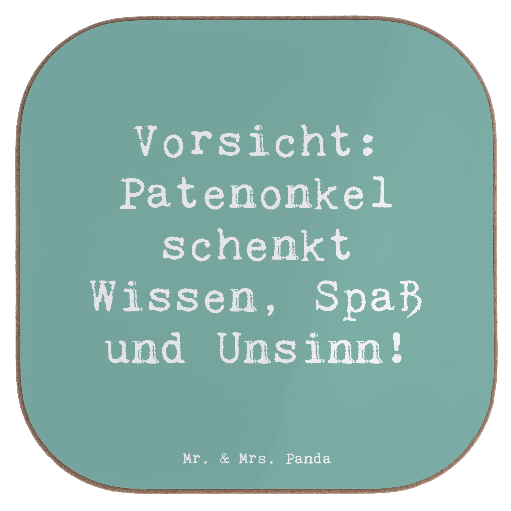 Square coaster Saying Vorsicht: Patenonkel schenkt Wissen, Spaß und Unsinn!