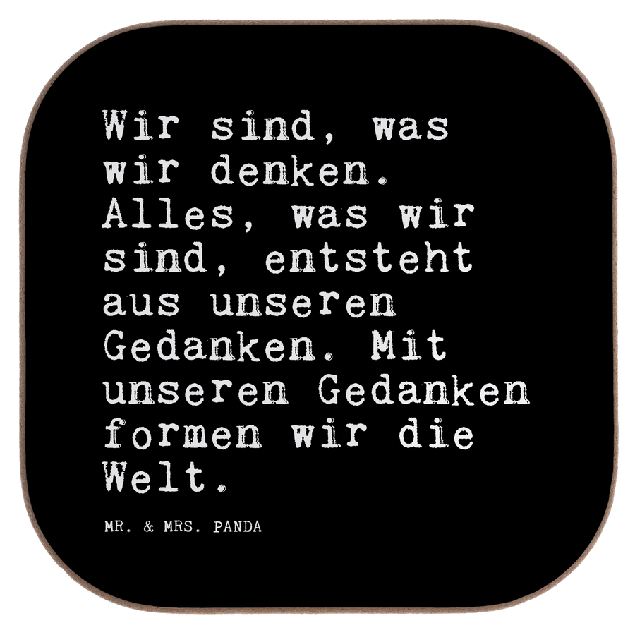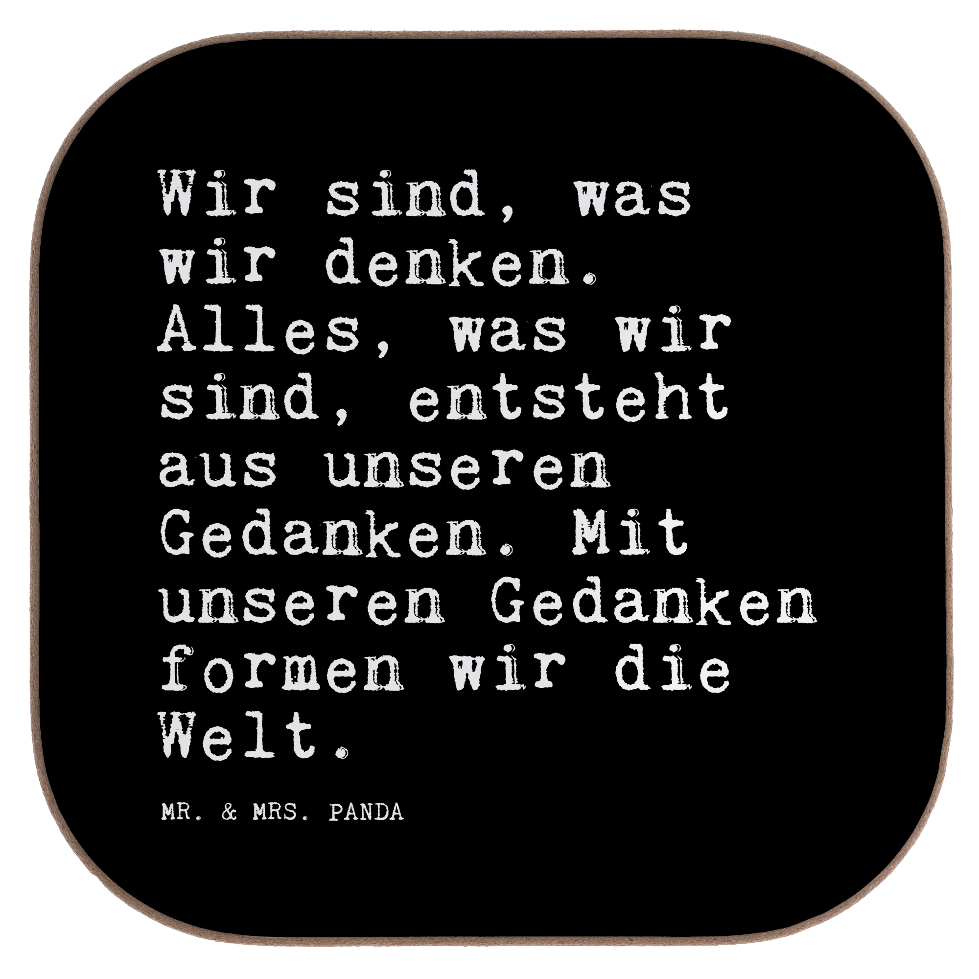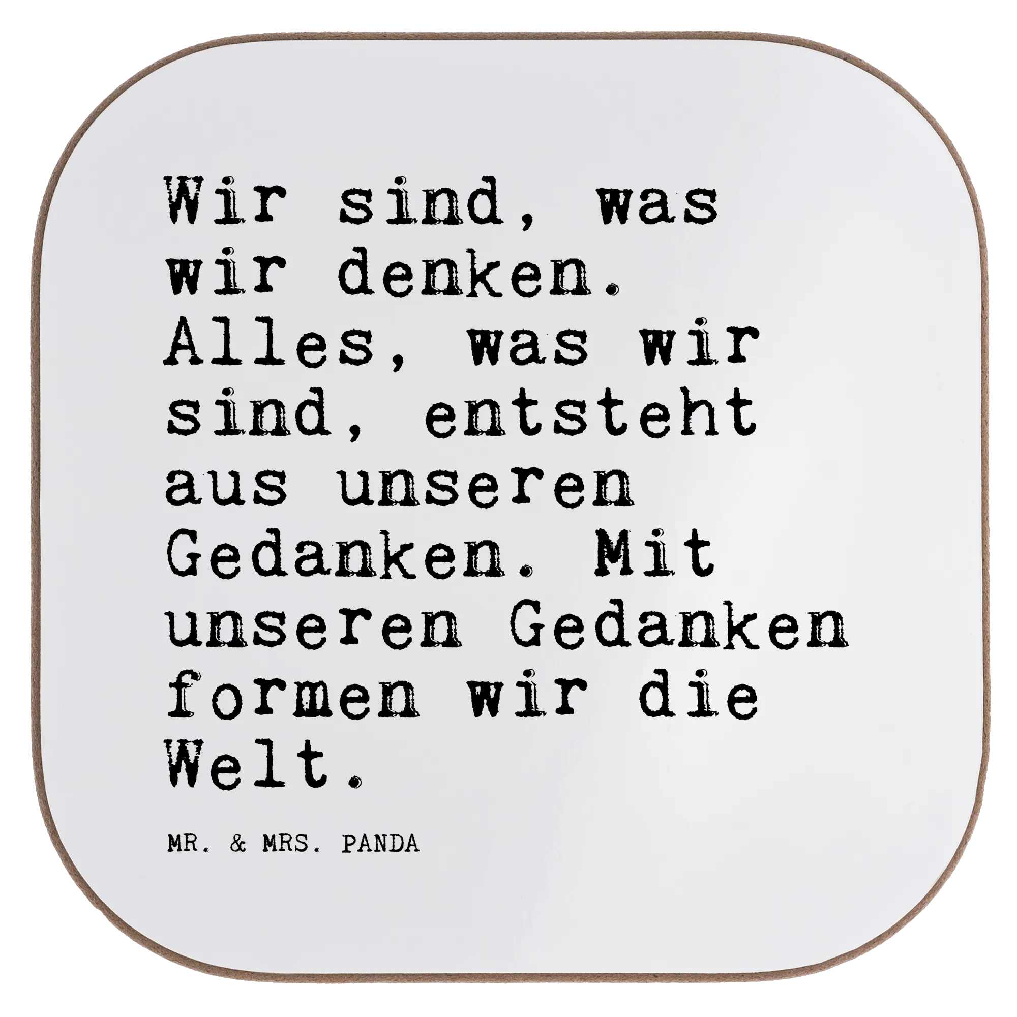Ein wunderschöner quadratischer Untersetzer von Mr. & Mrs. Panda – praktisch, schön und voller Sinn. Gedruckt mit dem Spruch: „Wir sind, was wir denken. Alles, was wir sind, entsteht aus unseren Gedanken. Mit unseren Gedanken formen wir die Welt.“ Dieser Design Untersetzer ist ideal als Untersetzer Glas, Untersetzer Tasse oder Becheruntersetzer und bringt Achtsamkeit in deinen Alltag.