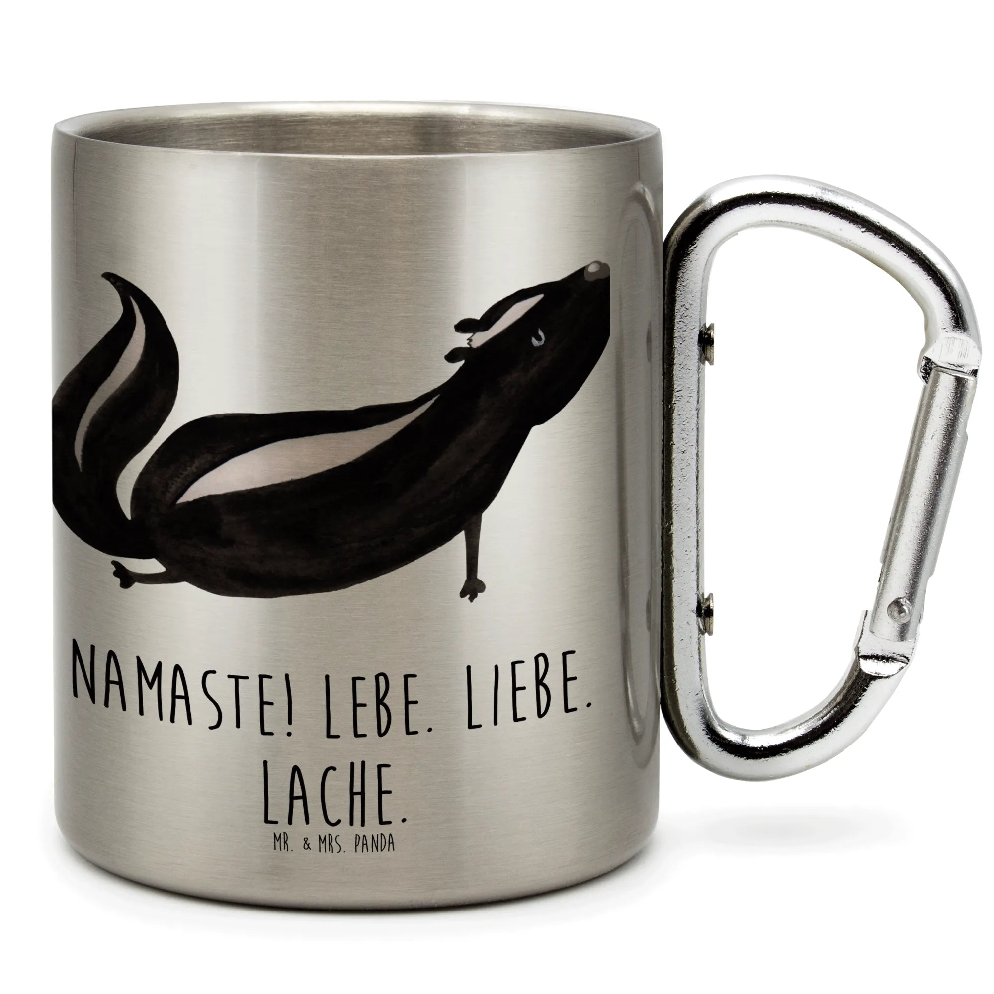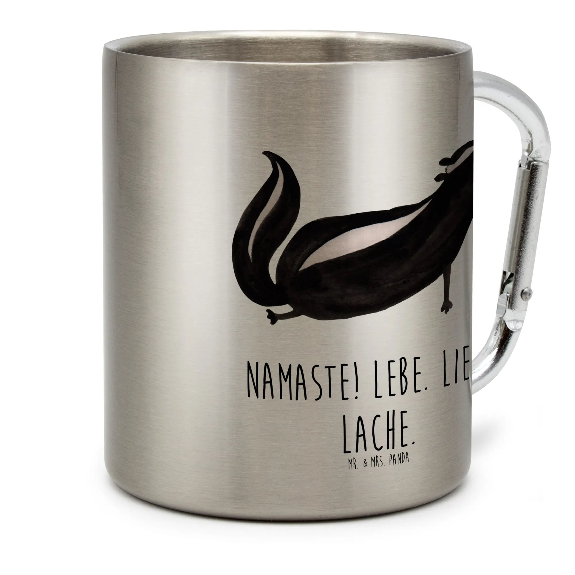 Introducing the delightful Mr. & Mrs. Panda Stainless Steel Mug featuring our charming Skunk yoga design from the Skunk Collection! This beautiful and sturdy stainless steel mug is perfect for anyone who enjoys the great outdoors. Whether you're an avid camper, a hiking enthusiast, or simply love sipping your favorite beverage while relaxing at home, this mug is your perfect match.