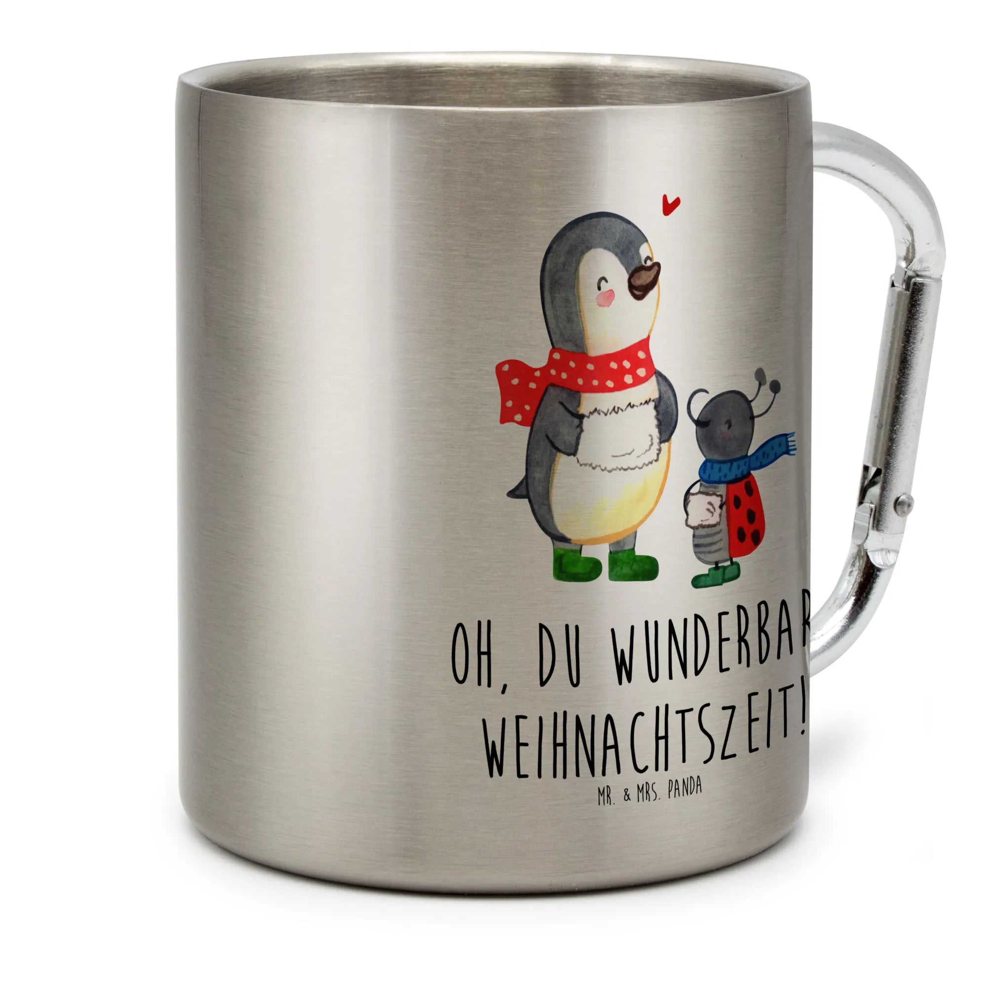 Mit seiner Füllmenge von 330 ml hält er deine Getränke dank des isolierenden Edelstahlmaterials lange warm oder kalt. Das liebevolle Design dieses Bechers zeigt zwei niedliche Charaktere: einen fröhlichen Pinguin und den kleinen "Smörle"-Marienkäfer, die zusammen in einem winterlichen Motiv posieren. In dieser besonderen Zeit des Jahres entfalten sie die Freude und Wärme, die Weihnachten mit sich bringt. Der Slogan "Oh, du wunderbare Weihnachtszeit!" vermittelt nicht nur Weihnachtsgrüße, sondern auch die liebevolle Botschaft von Freundschaft und Glück.