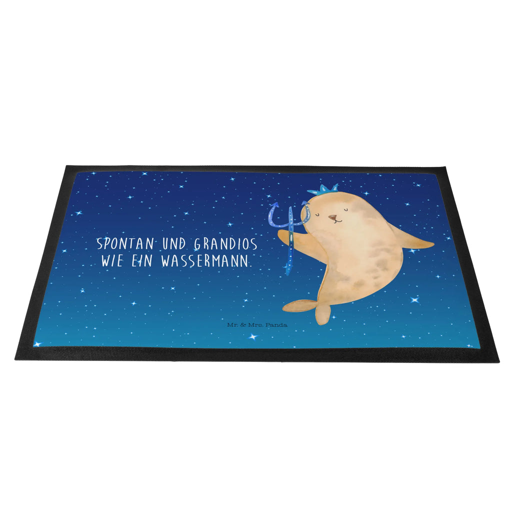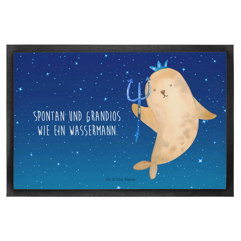 Introducing the Mr. & Mrs. Panda Doormat with the charming motif of the star sign Aquarius! This delightful doormat is not just a footstep-comforting accessory for your home, but also a perfect gift for your astrology-loving friends and family. With dimensions of 40 x 60 cm (16 x 24 inches), it fits seamlessly at any entryway, making it an inviting touch for both indoor and outdoor use. The design features a whimsical illustration of a merman holding a trident—representing the spontaneous and grandiose spirit of Aquarius—and is sure to bring a smile to anyone who sees it.