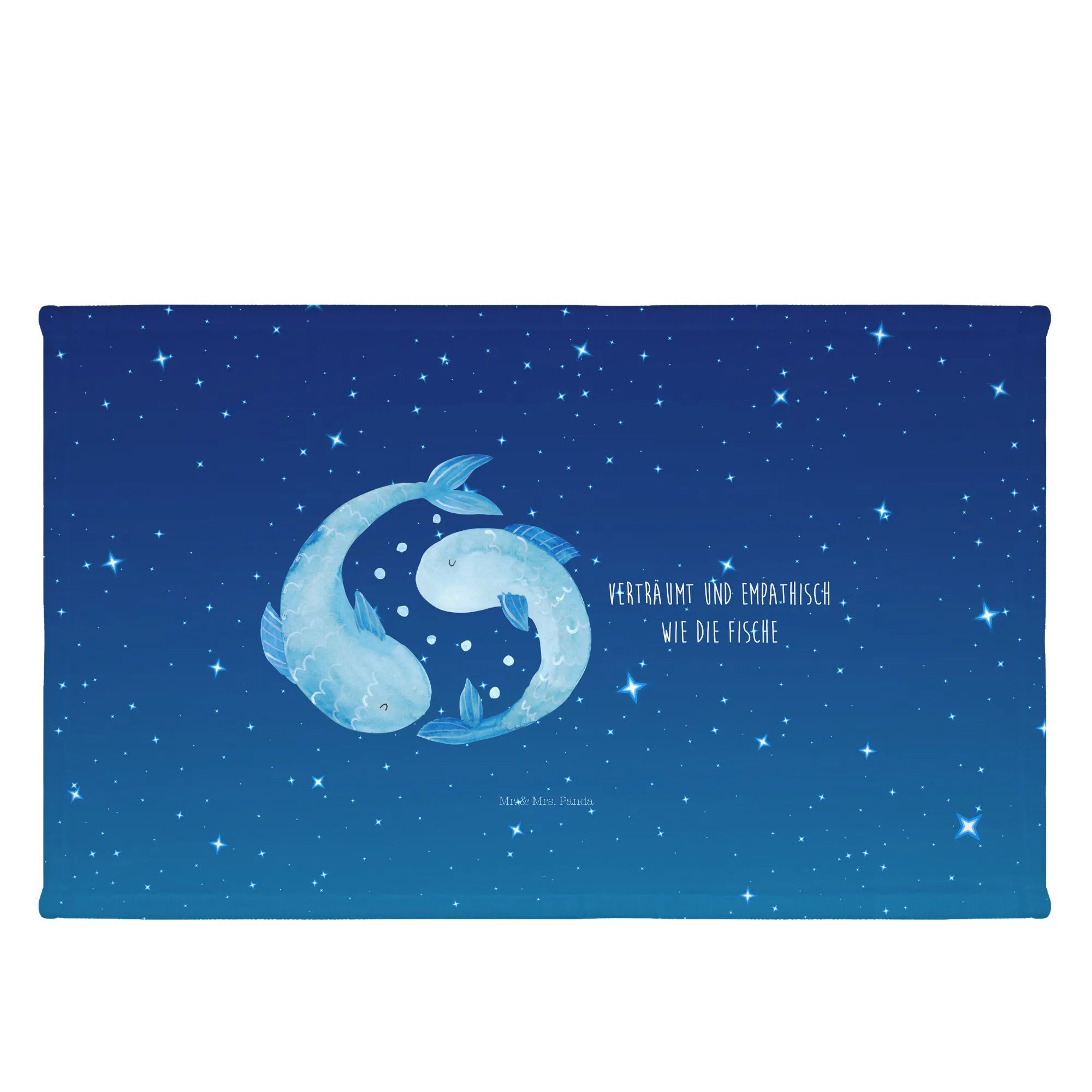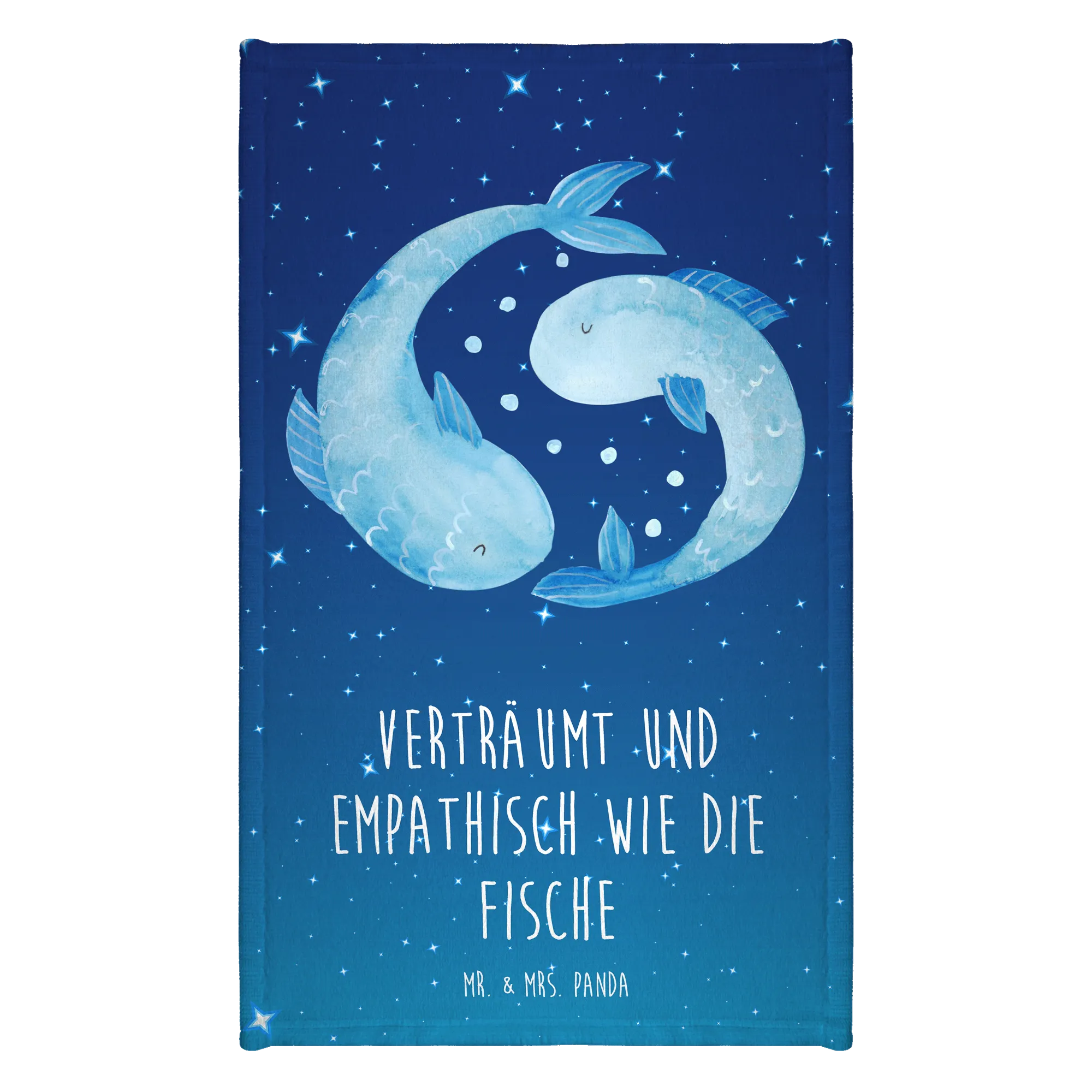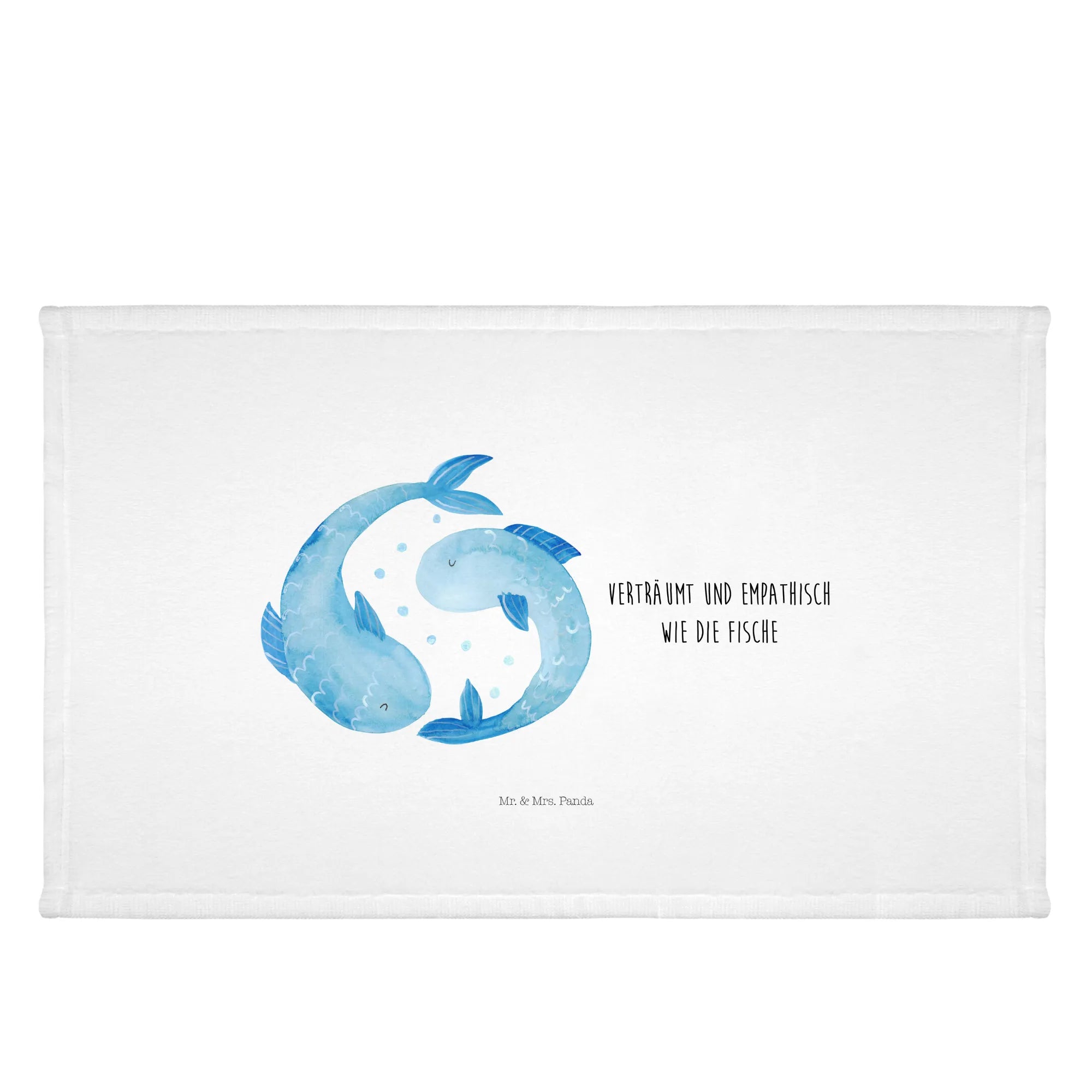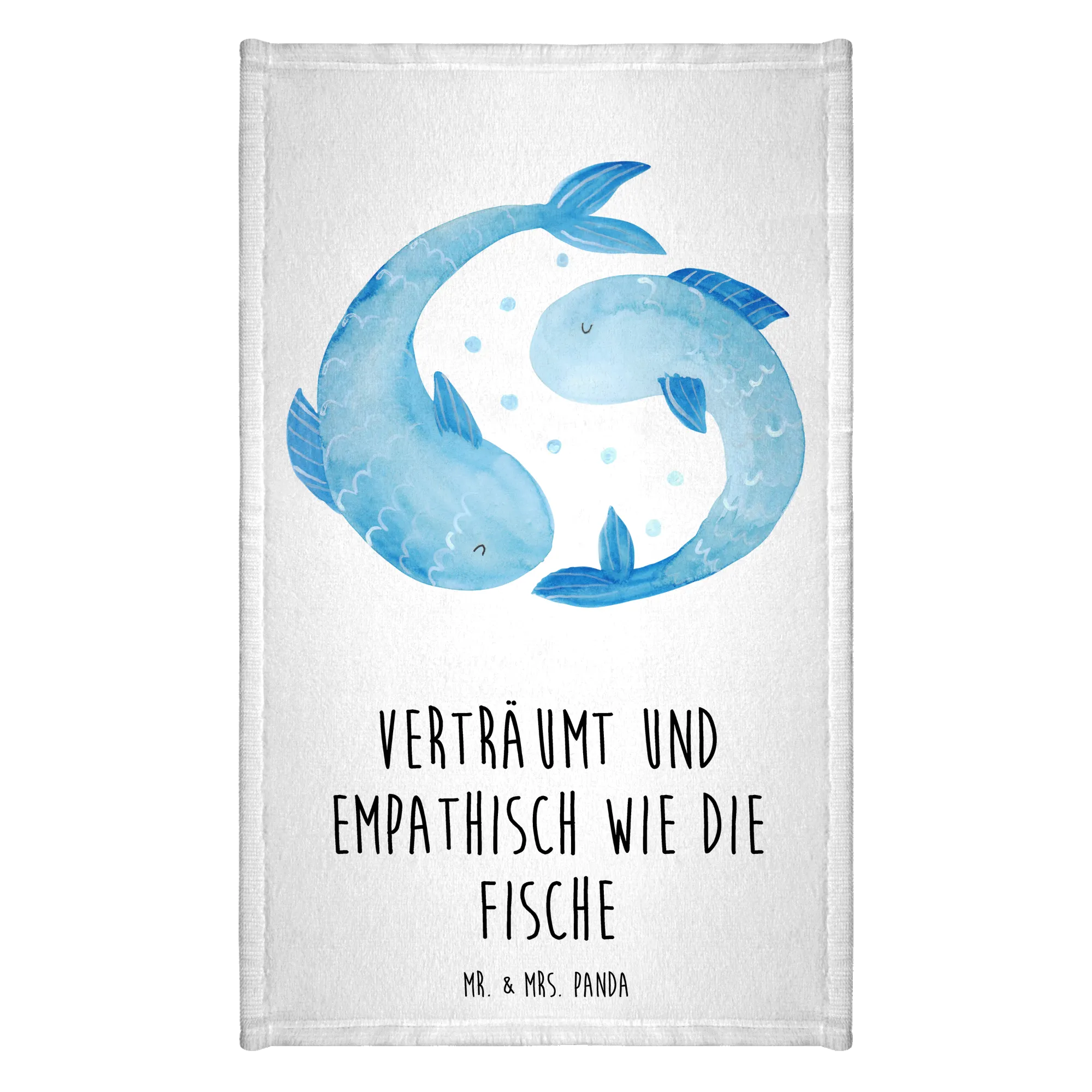 This charming towel isn’t just about utility; it's a fun way to celebrate the characteristics of the Piscean personality. The design portrays two fish swimming in circles. The slogan 'Verträumt und empathisch wie die Fische' beautifully captures the essence of those born under this star sign, emphasizing their imaginative and understanding nature.