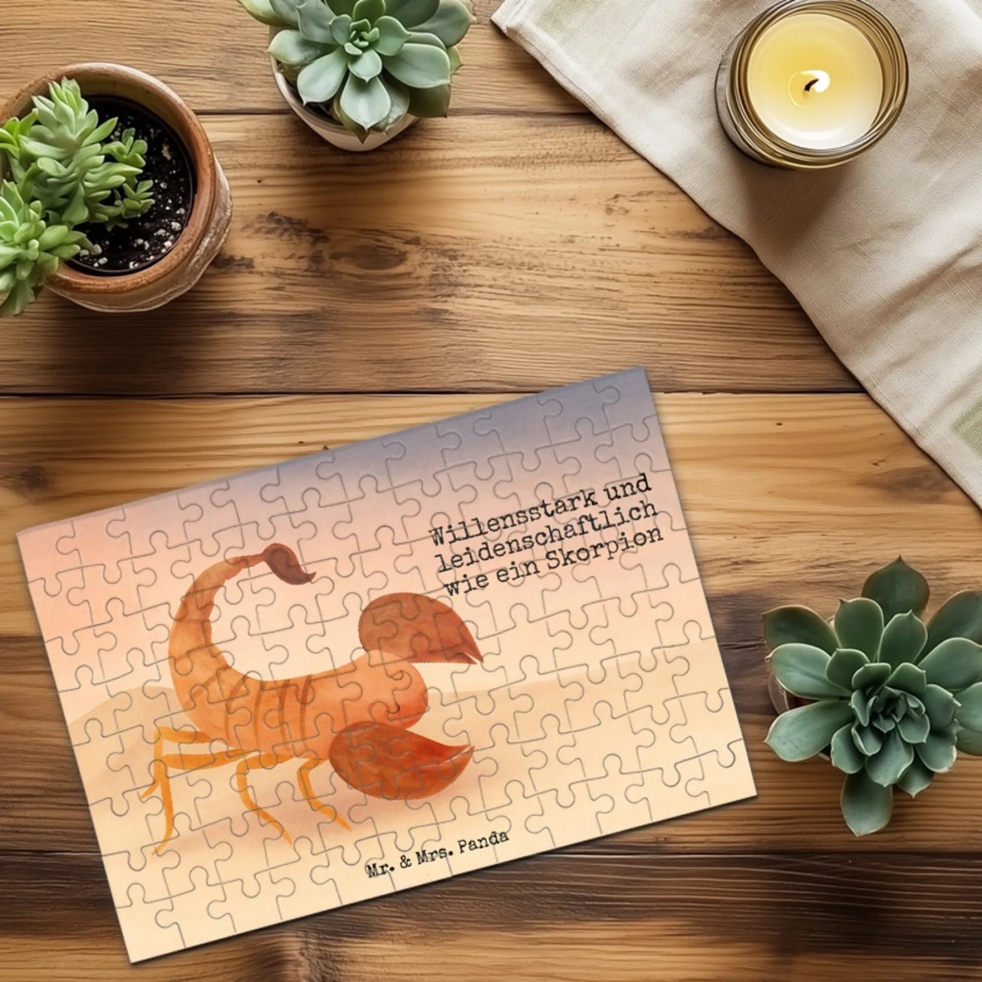 Suchst du ein liebevolles Skorpion Geschenk? Unser Puzzle Sternzeichen Skorpion von Mr. & Mrs. Panda vereint niedliche Illustration, Astrologie-Charme und ein persönliches Motto: Willensstark und leidenschaftlich wie ein Skorpion. Perfekt als Geschenk Oktober oder Geschenk November und ein hübsches Geburtstagsgeschenk für alle Skorpione.