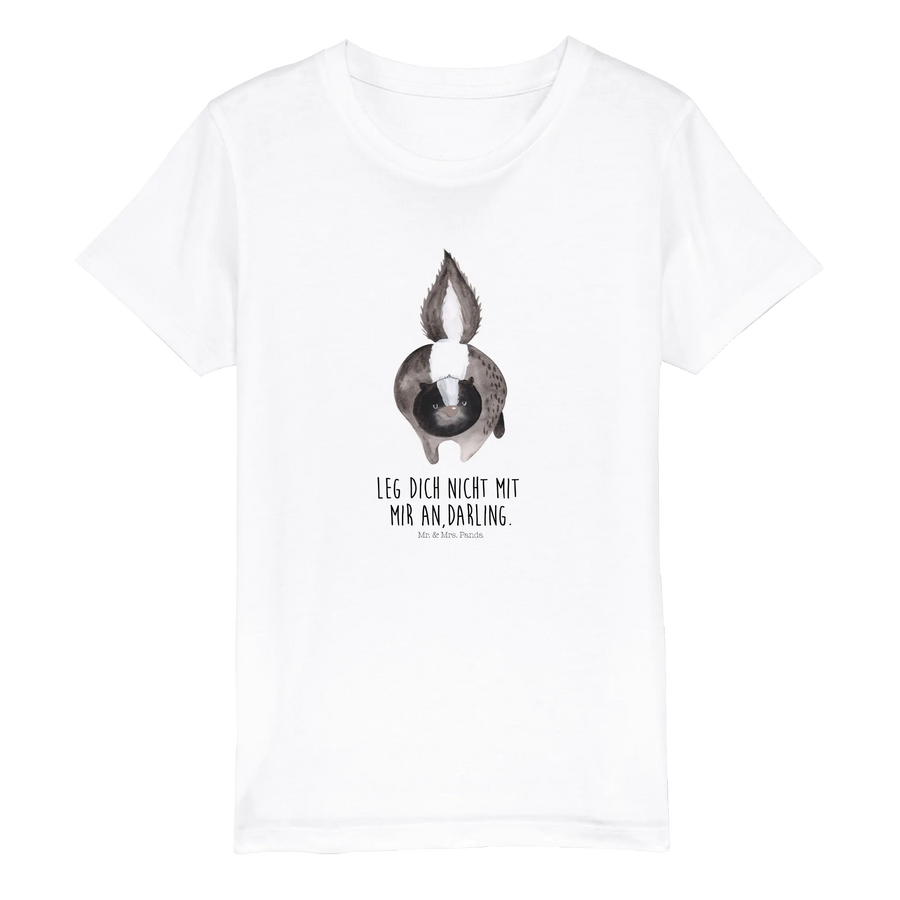 Gift-giving occasions abound, from birthdays to holidays, and even just as a surprise treat for being awesome! Imagine their delight when they unwrap this unique gift, featuring the "Leg dich nicht mit mir an, Darling" slogan that embodies a spirit of playful confidence. It's not just a T-shirt; it's a piece of art that tells a story inspired by Mr. Flower, Mrs. Panda's beloved skunk companion, making it a heartfelt gift that children will cherish.