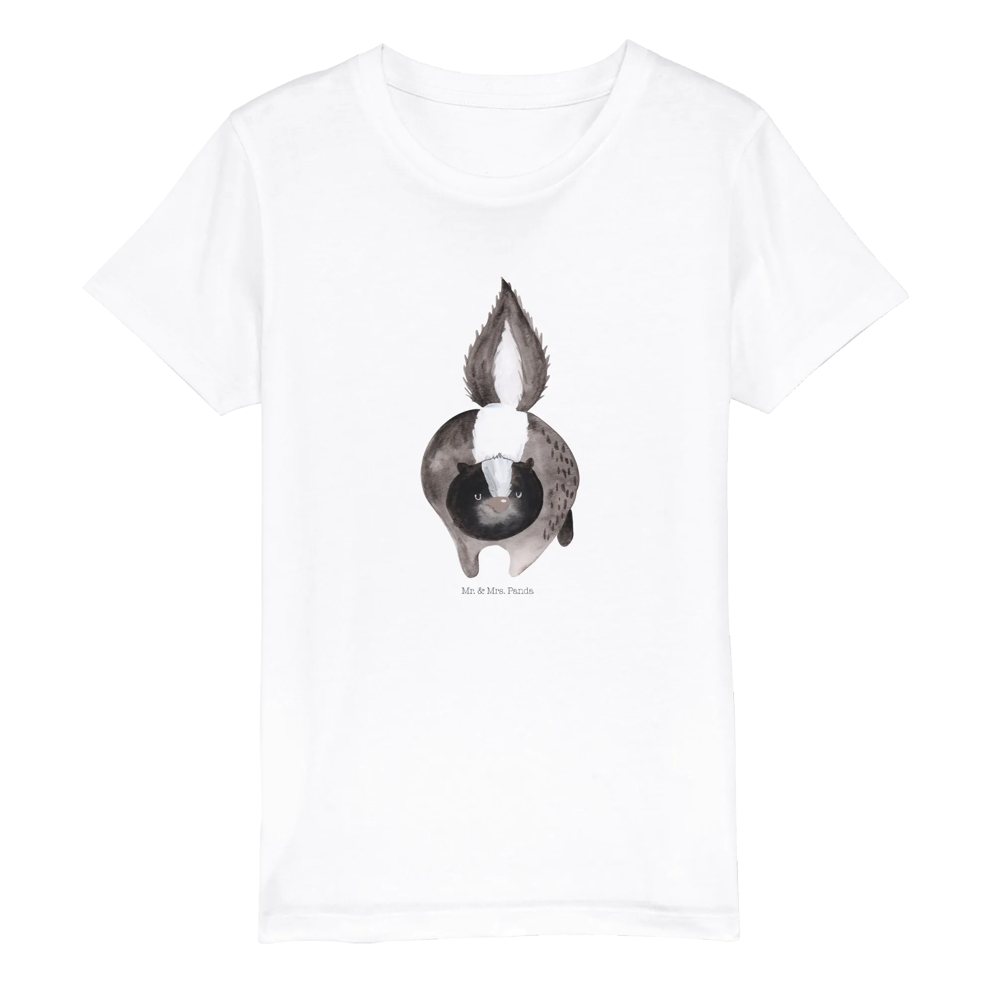 Can you imagine your child stepping out in this adorable T-shirt adorned with a cheeky skunk ready for an imaginary adventure? The design showcases a cute skunk depicted in a dynamic pose, with its fluffy tail held high, exuding confidence and charm. The watercolor effect used in the print brings life and vibrancy to the motif, making it truly special. Whether your child wears it to a birthday party, family gathering, or just during playtime, they are sure to be the center of attention!